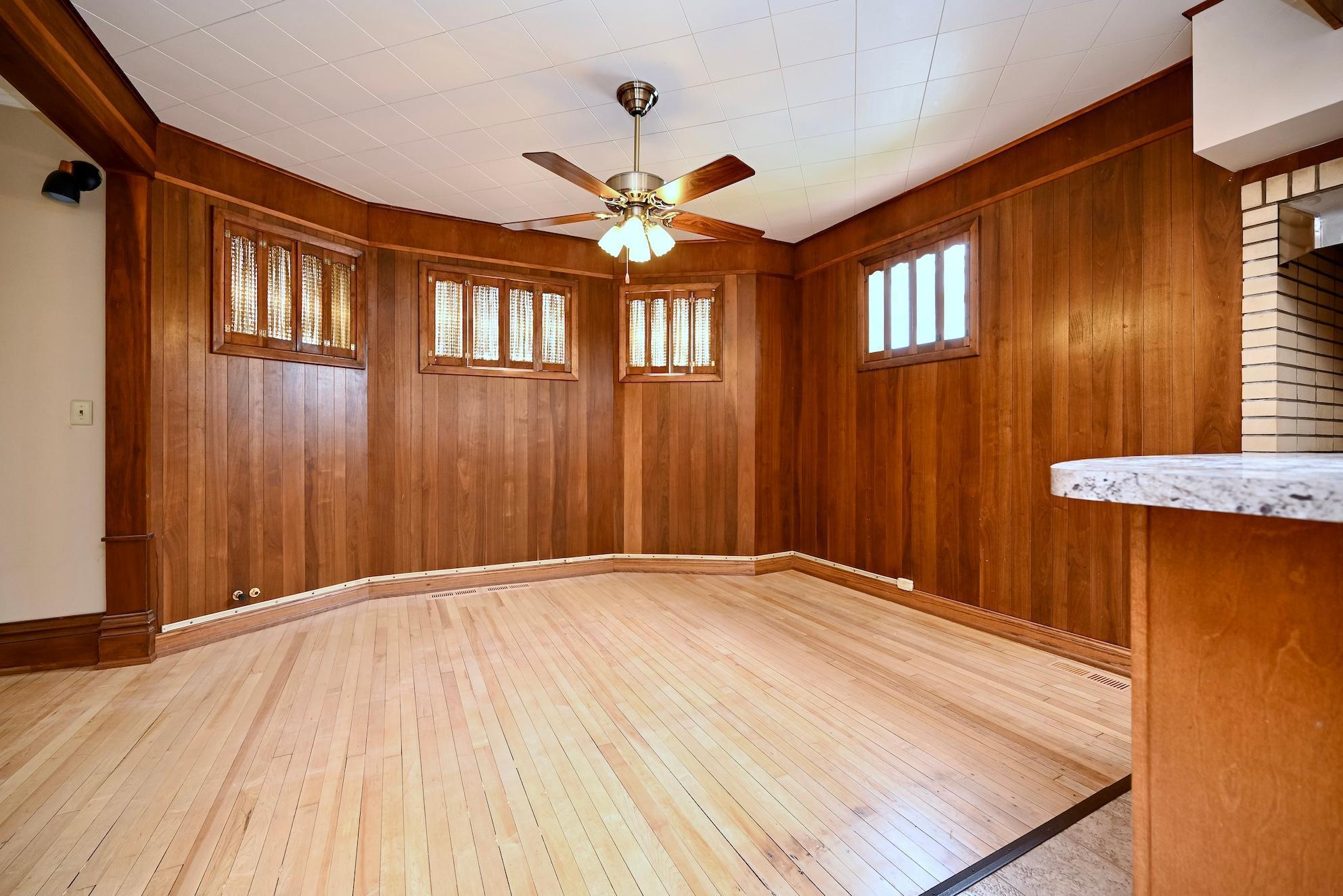 Gorgeous woodwork throughout, along with hardwood floors, 4 bedrooms, 1.5 baths, spacious rooms with high ceilings, very open main floor, some open space to the rear of the house, oversized one car garage, along with a carport. A lot of house for the money.