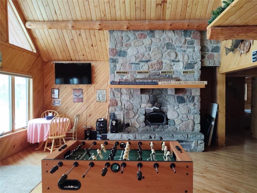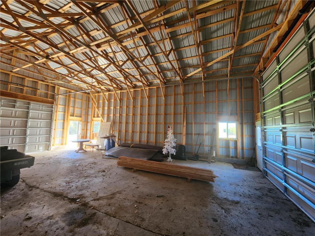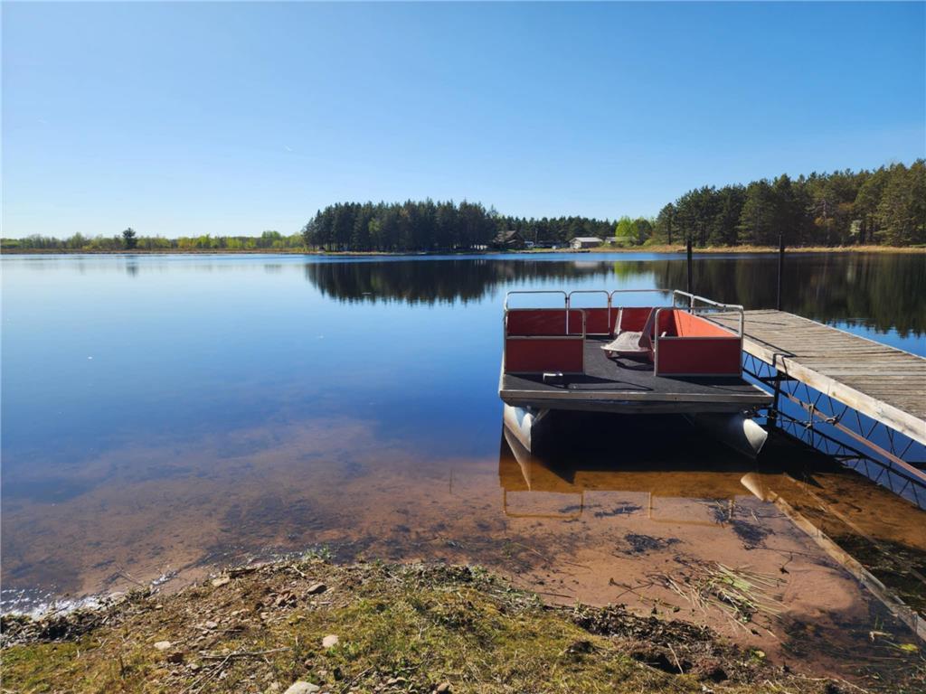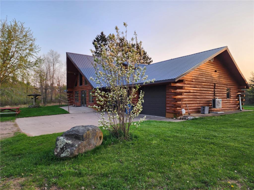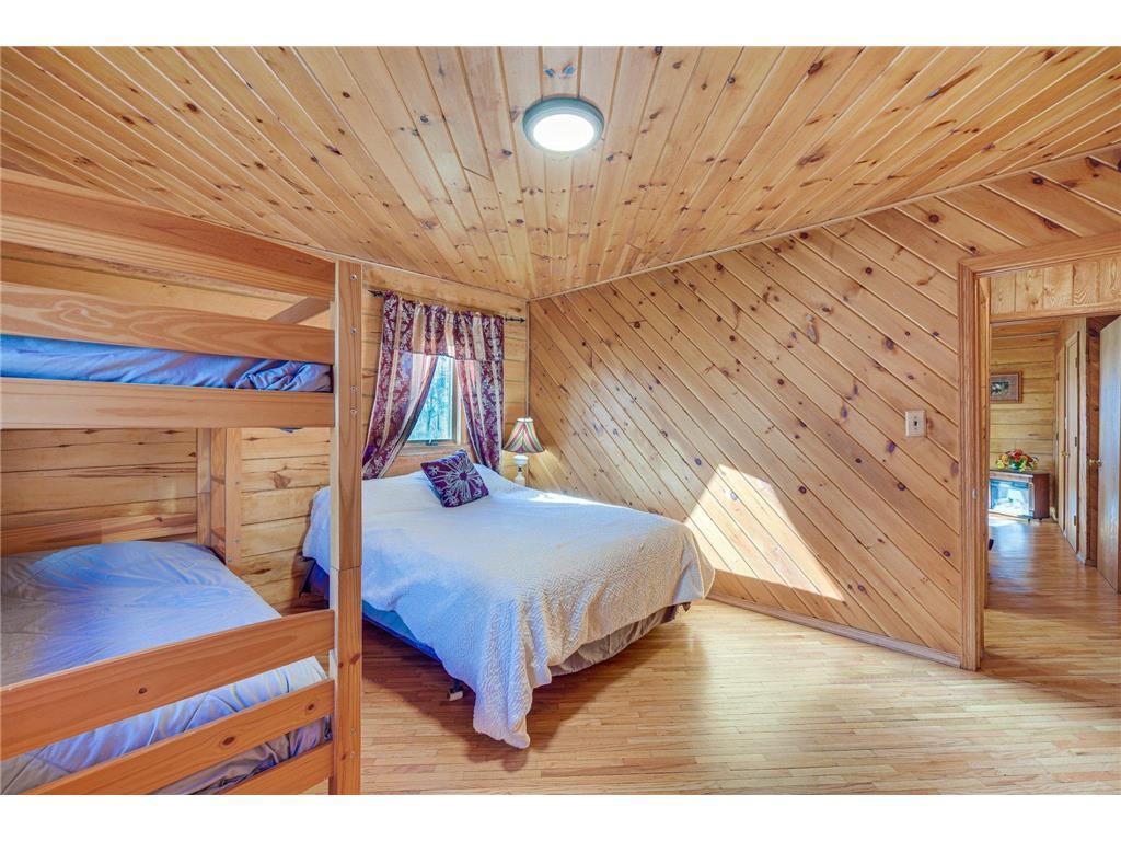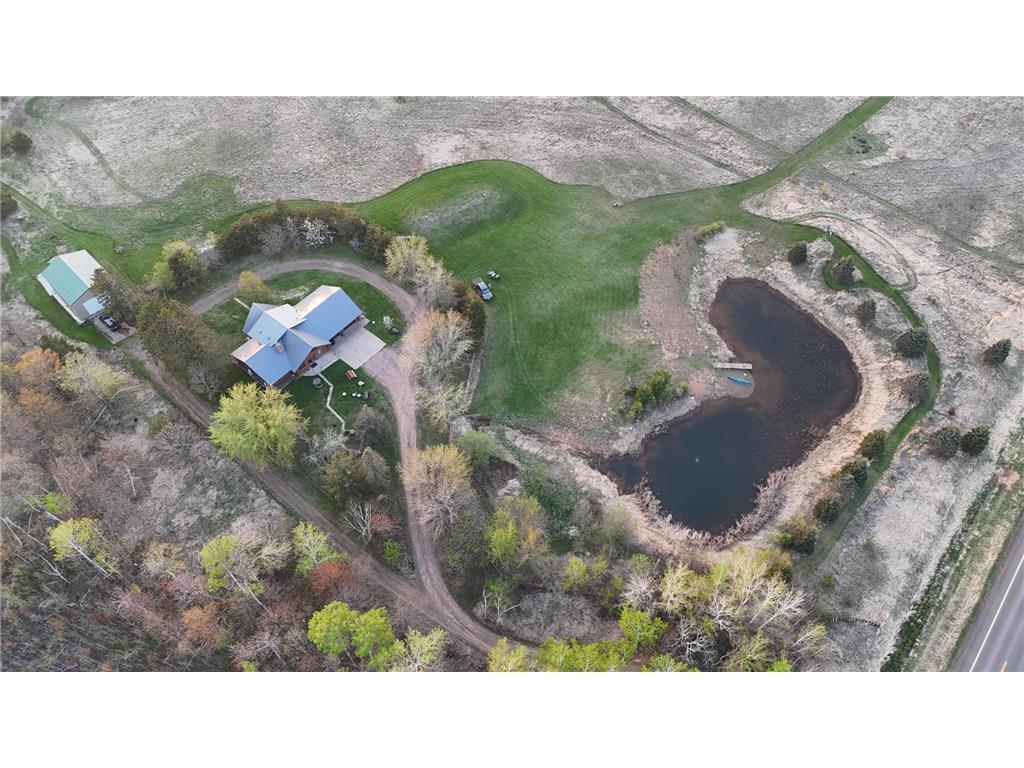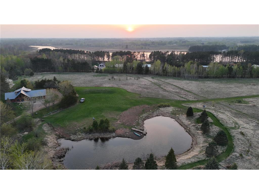 Once in a lifetime property as this package has the dream log home with attached finished partially heated garage and large yard campground area that encompasses the swimming fish pond and also includes an absolute gorgeous lake lot on private Miller Lake with no public access. Also a 30 x 40 newer garage with 12 foot door 14 foot sidewalls. The land is beautiful and was previously pasture to beef and farm animals but also has been planted in Wildlife plots in recent years for pheasant and deer. The land abuts 120 acres of public forest you can venture , hike, and hunt on. Many family gatherings have been enjoyed at this property and great times on the waters. The lake has a creek that leads to Grindstone Lake and can provide some descent fishing. The shoreline is sand gravel, you will hear the sounds of loons, see beavers and the trail cam has captured bucks, turkeys, bear, bobcat, grouse, pheasant etc. The property is easy to pull in campers and trailers as the driveway circles around the house and the extended yard is spacious and open for getting in and out. The house has all new steel roof charcoal gray. The log was stripped and treated approximately 7 years ago and just had some final touch up work done. The main room has a large real masonry fireplace boasted by the vault tongue and groove ceiling. The septic was done in 2018. The stairs going up to the master suite are the real authentic custom log steps and the Master bedroom is spacious with it's own bathroom and it also has a cat walk out in to the 3 season porch. 2 new split systems were recently installed for AC cooling mainly but can also provide heat. The pond has 2 old windmill aerators and includes an electric aerator that helps keep the pond and fish oxygenated year around especially in the Winter. The bedrooms are all spacious and if desired this could be all 1 level living as it's a slab home with heated floor. Apple trees, pear tree's, grapes, and jumbo berry plants are along the trails. There are hundreds of tree's planted around the perimeters, some are getting older and bigger and some are just starting to create natural beautiful shelter and screens. Current owner has rented out short term vacation style to make extra income.