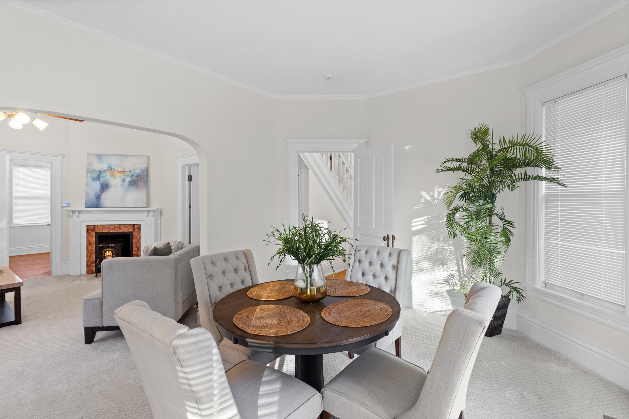Welcome to this refreshed two-story home in St. Louis Park! This charming property features fresh interior and exterior paint, and new carpet in the living room and bedrooms. The main level offers a cozy screened-in front porch, tall ceilings throughout the family/dining room, spacious living room with a fireplace, updated kitchen including stainless steel appliances, and a full bathroom on the main floor. Upstairs, youll find three comfortable bedrooms. Enjoy a large backyard perfect for outdoor activities, along with an extra-wide 2.5-stall garage. Additional updates include a new furnace and air conditioning for year-round comfort.
