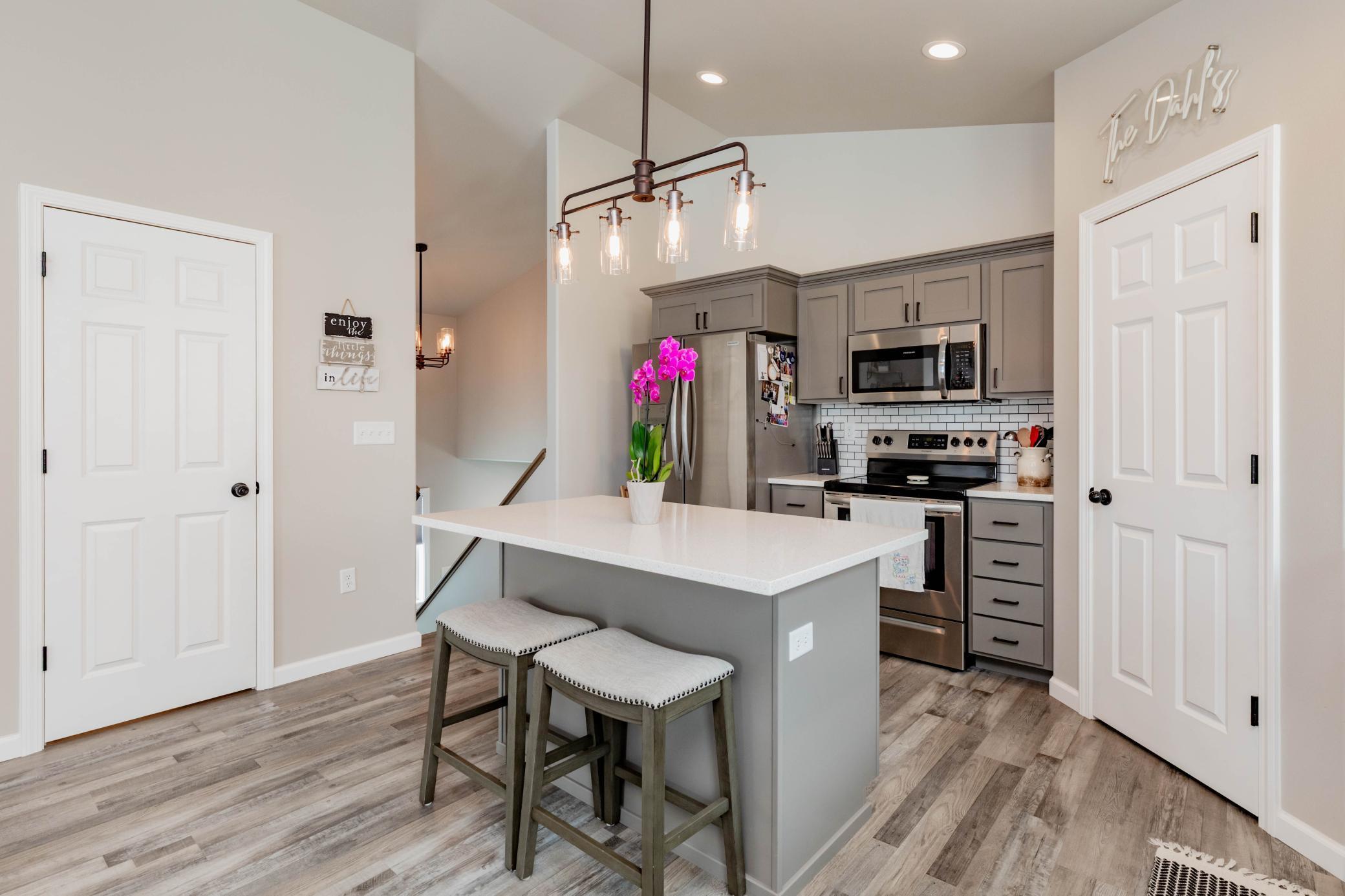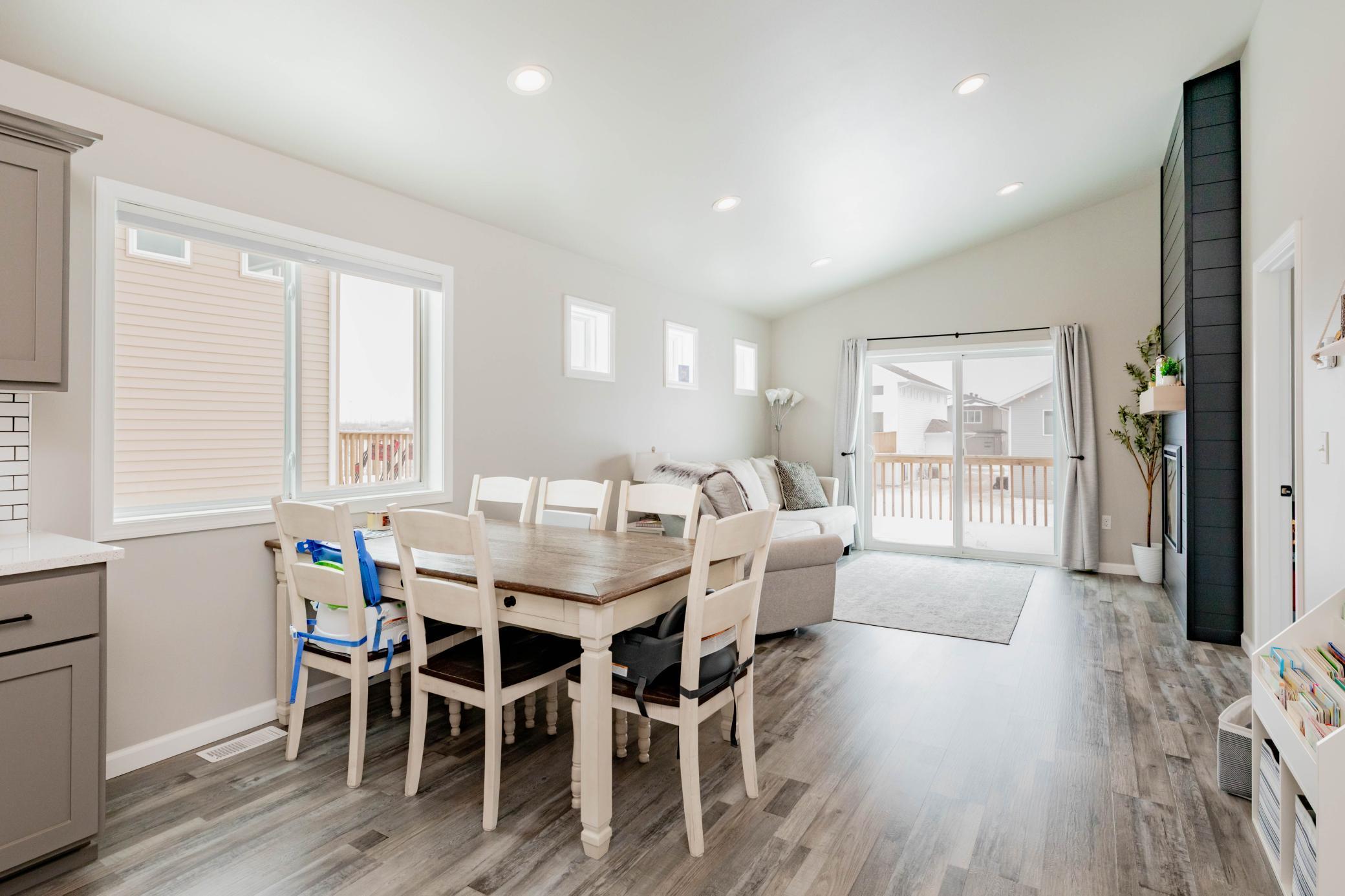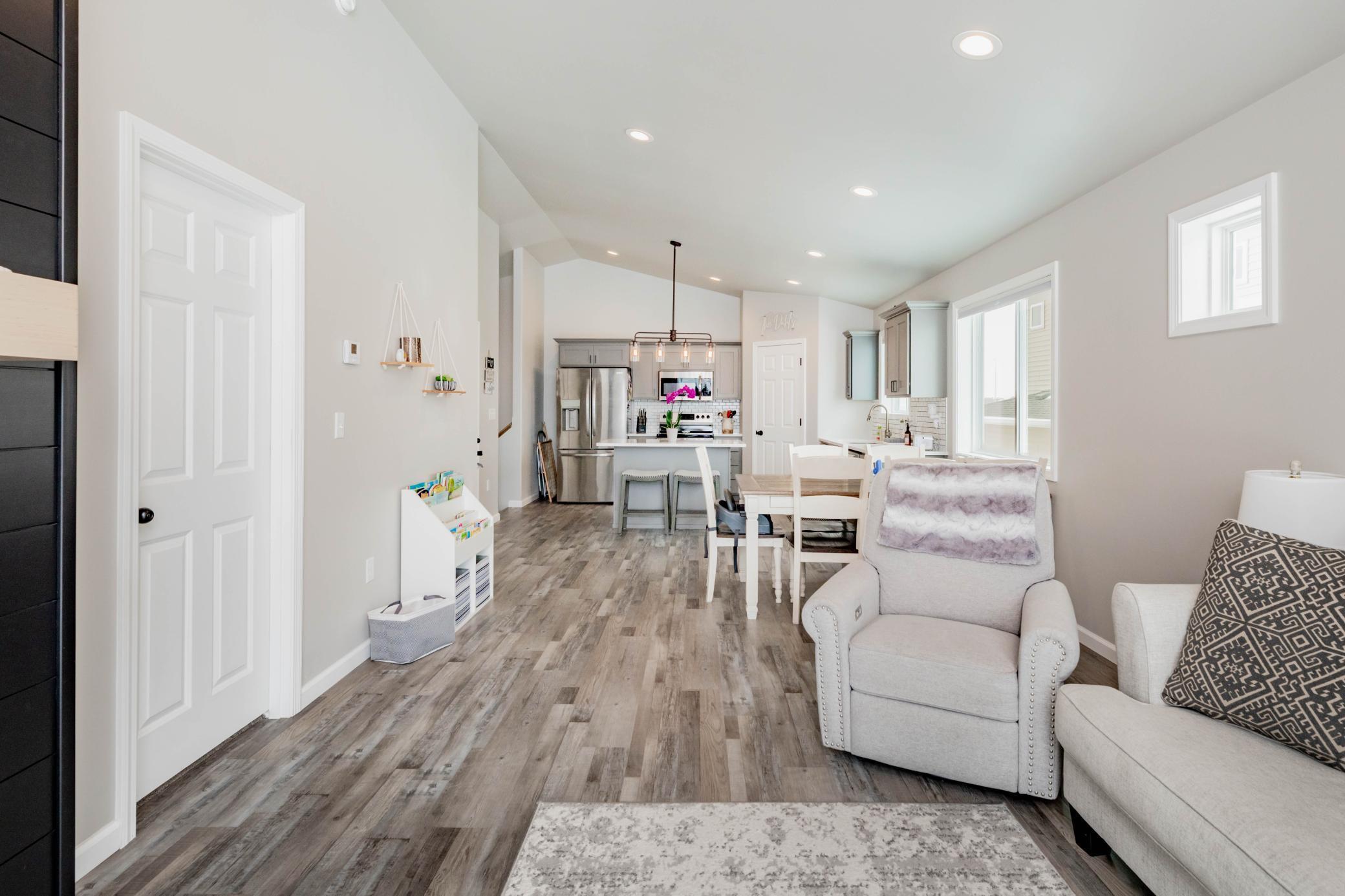 Welcome to this move-in ready 3 bedroom, 3 bathroom home offering a functional layout and modern finishes throughout. The upper level is designed for both everyday living and entertaining, featuring an open-concept kitchen, dining, and living area. The kitchen stands out with custom cabinets, quartz countertops, tile backsplash, stainless steel appliances, a center island, and a walk-in corner pantryplenty of space for prep and storage. Just off the kitchen, youll find a convenient half bath, while the living room features a shiplap built-in electric fireplace and access to the deck.Vinyl plank flooring runs throughout the kitchen, living room, dining area, bathrooms, entry, and laundry room, creating a durable and cohesive look.The primary suite is located on the upper level and includes a private bathroom and walk-in closet.The lower level offers additional living space with a spacious family room featuring a second shiplap built-in fireplace, along with two additional bedrooms, a full bathroom, and a dedicated laundry room.Quartz countertops carry throughout both the kitchen and bathrooms, adding a clean, consistent finish. The heated garage includes a floor drain, providing year-round convenience.With multiple living spaces, upgraded finishes, and a well-designed layout, this home checks all the boxes.Schedule your private showing today!