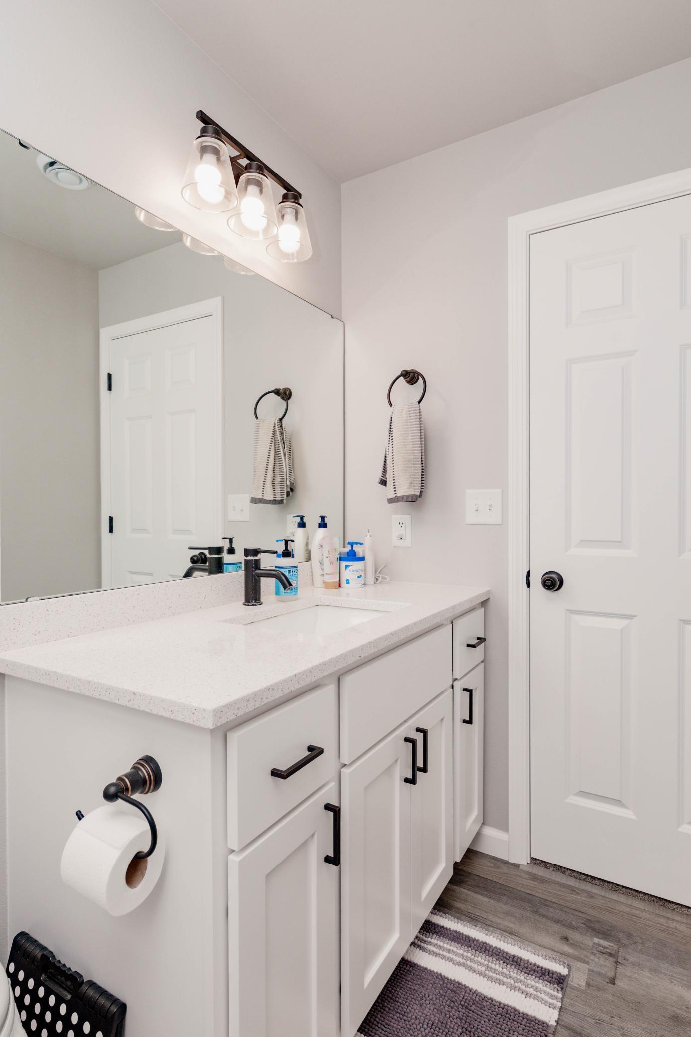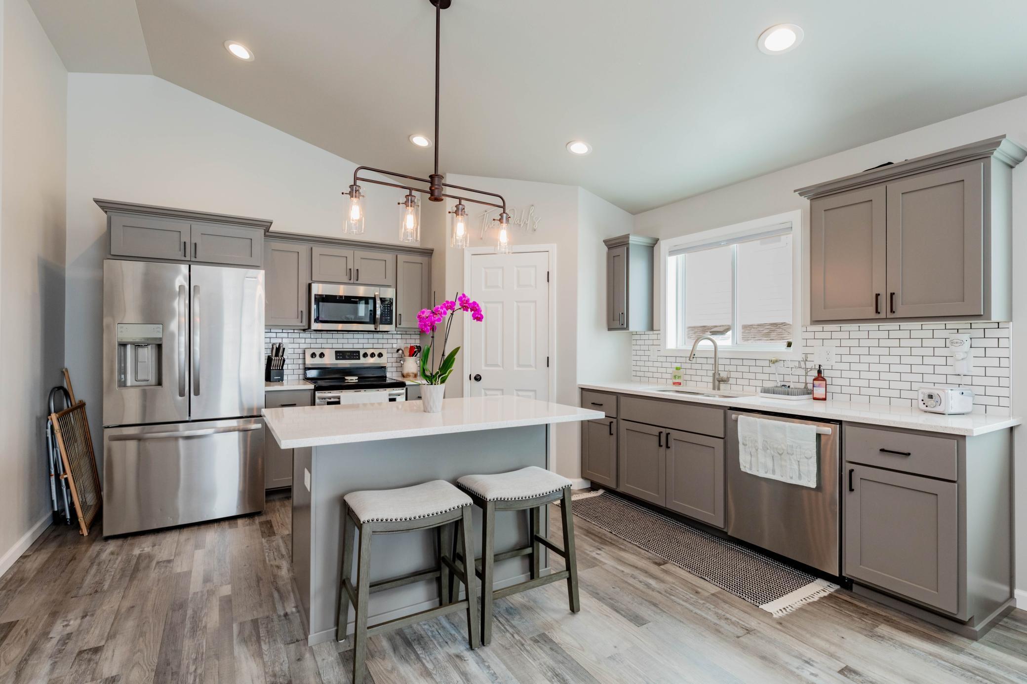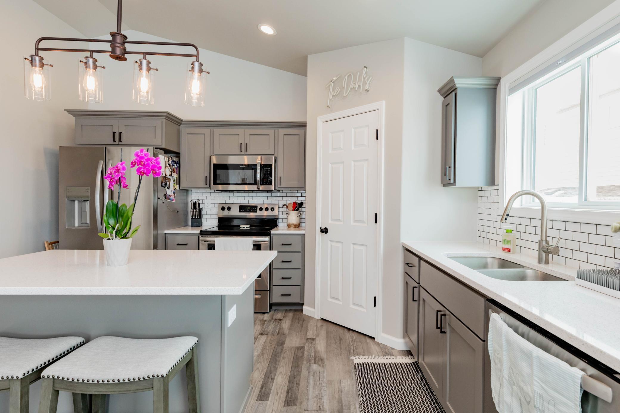 Welcome to this move-in ready 3 bedroom, 3 bathroom home offering a functional layout and modern finishes throughout. The upper level is designed for both everyday living and entertaining, featuring an open-concept kitchen, dining, and living area. The kitchen stands out with custom cabinets, quartz countertops, tile backsplash, stainless steel appliances, a center island, and a walk-in corner pantryplenty of space for prep and storage. Just off the kitchen, youll find a convenient half bath, while the living room features a shiplap built-in electric fireplace and access to the deck.Vinyl plank flooring runs throughout the kitchen, living room, dining area, bathrooms, entry, and laundry room, creating a durable and cohesive look.The primary suite is located on the upper level and includes a private bathroom and walk-in closet.The lower level offers additional living space with a spacious family room featuring a second shiplap built-in fireplace, along with two additional bedrooms, a full bathroom, and a dedicated laundry room.Quartz countertops carry throughout both the kitchen and bathrooms, adding a clean, consistent finish. The heated garage includes a floor drain, providing year-round convenience.With multiple living spaces, upgraded finishes, and a well-designed layout, this home checks all the boxes.Schedule your private showing today!
