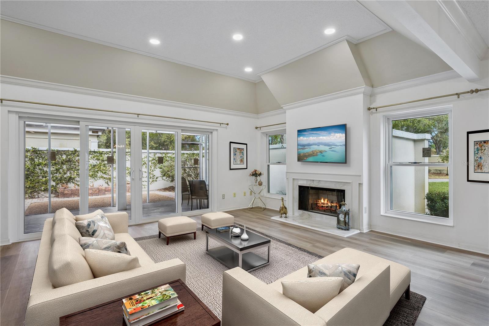 Bay Hill Village, a gated community of single-family houses off of Apopka-Vineland Road in Southwest Orlando focuses on 3 key features - exclusivity, security and convenience. Long recognized as one of Central Florida's most desirable residential areas with controlled access, this community sits aside the 12th fairway of the Bay Hill Championship golf course, and a back gate ingress/egress into Bay Hill. Begun in 1980, there are 120 detached homes with narrow lots to minimize yard care, including side & rear privacy walls. Single story, concrete block construction, boral cedarlite tile roofs (cedar shake roofs originally) for longevity. There are 3 floor plans, many of which have been modified over the years. This home is the 'Kingston III' plan (see attachment), which is open and bright. Over 2600 sq ft, the home has had recent updates, such as: New windows, New insulation, New PERGO Luxury Plank vinyl flooring, New paint, New carpet, New LED lighting & fixtures, New exterior. electric panel, New water heater, New garage door, New fire retardant home-to-garage door, and New refrigerator, microwave & dishwasher. The Kitchen, Primary Bath & Half bath were updated in the past few years; the AC is Carrier 2014 and the Boral Cedarlite tile roof is 2016. Additionally, there's the unique built-in closet wetbar, large foyer, coffered ceilings, wood-burning fireplace, 21' covered lanai and the SPACIOUS rear pavers for low maintenance, suitable for outdoor furniture, BBQ's or even room for a putting green! Finally, the centrally located, secure Clubhouse includes meeting space (Majon and Bridge maybe), community pool & hot tub, tennis, gym and onsite manager(limitedly). Quietly located and ready for a New homeowner who seeks the wonderful Bay Hill Village 'Concept' perfectly located in SW Orlando, this home can be yours.