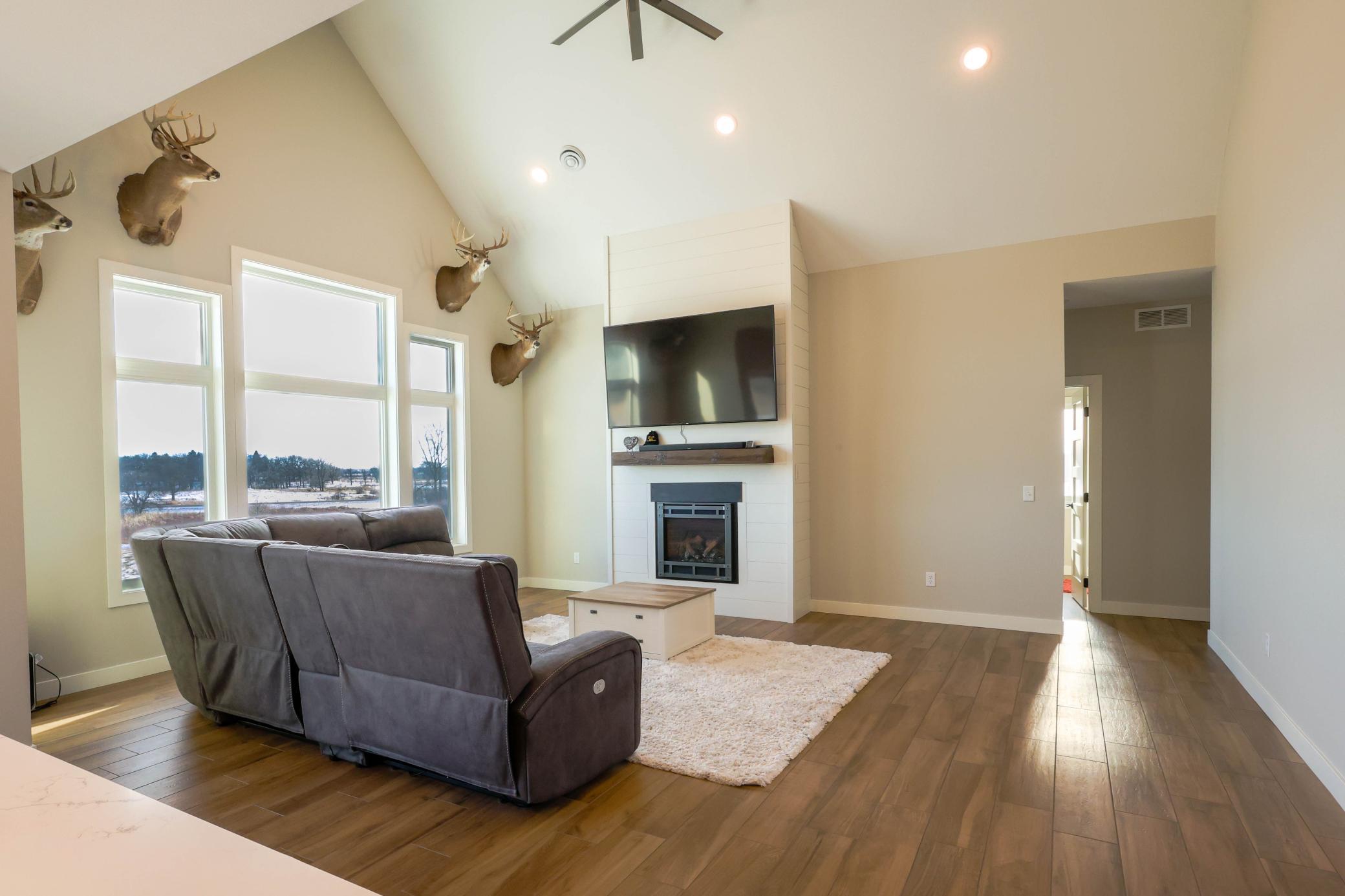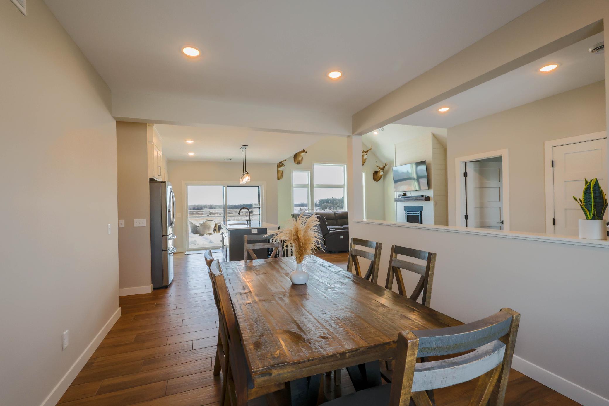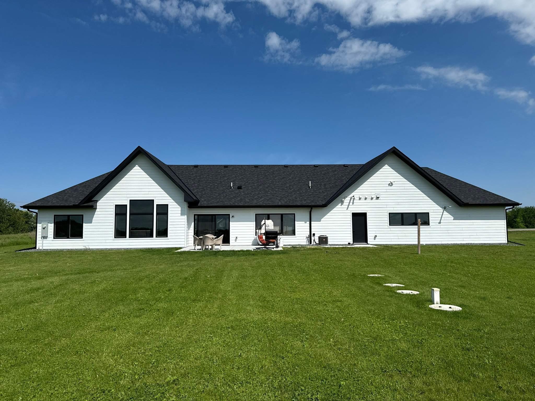 2021 built custom rambler/patio home set on 10.9-acre scenic property. Enjoy peaceful country living with beautiful views where deer and birds are part of your daily surroundings.The manicured yard features in-ground sprinklers and offers ample space for activities and outdoor enjoyment. Conveniently located just 10 minutes from St. Cloud, providing easy access to shopping, dining, and local attractions while still offering privacy and tranquility.The homes exterior showcases low-maintenance LP Smart Side siding and 30-year shingles for long-term durability. A fully finished 3-stall garage includes epoxied floors and an LP heaterideal for year-round use.Inside, quality craftsmanship is evident throughout with Marvin windows and thoughtful design. The main level offers 3 bedrooms, 2 full bathrooms, and a half bath. The main-floor primary suite features panoramic views and a private retreat feel. Bedrooms two and three are generously sized with closets. A full bath splits the bedrooms.The custom kitchen boasts high-end appliances, quartz countertops, custom cabinetry, and a large island, perfect for gathering and entertaining. A spacious laundry room includes front-load washer and dryer, custom cabinetry, and an adjacent half bath for added convenience.A formal dining room and large office flank the main entrance, creating a welcoming and functional layout. The main living area features a west-facing view, vaulted ceiling, and cozy gas fireplace, offering an open and inviting atmosphere.