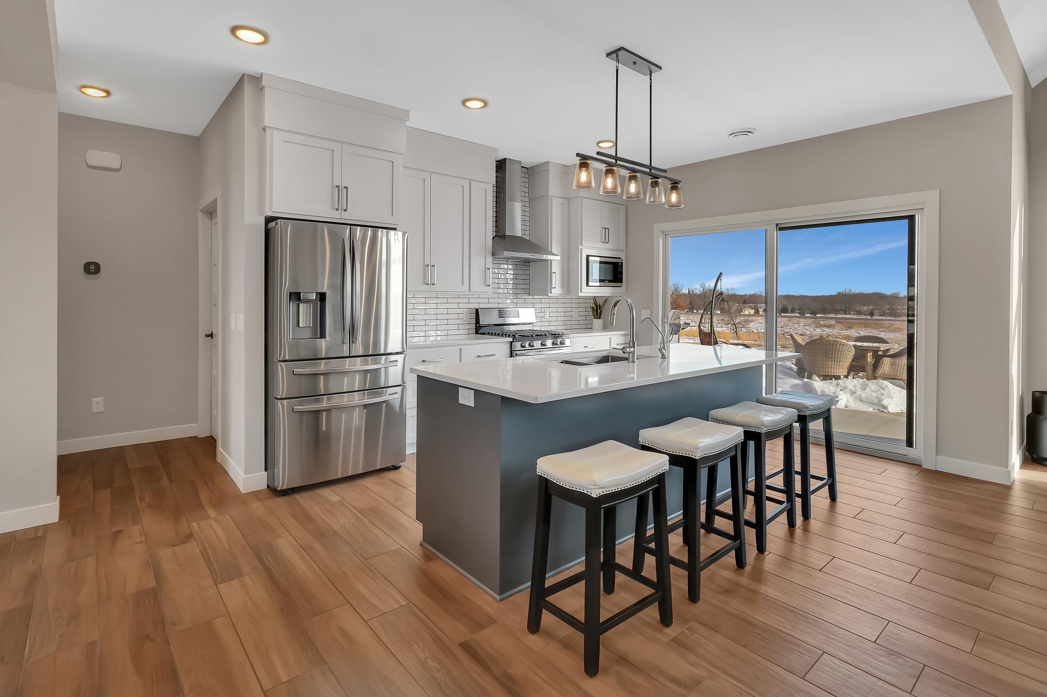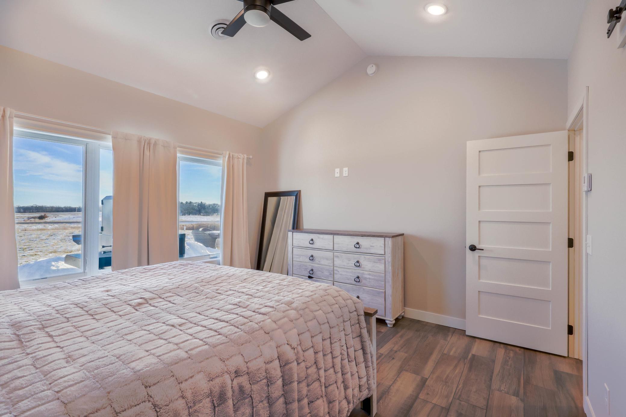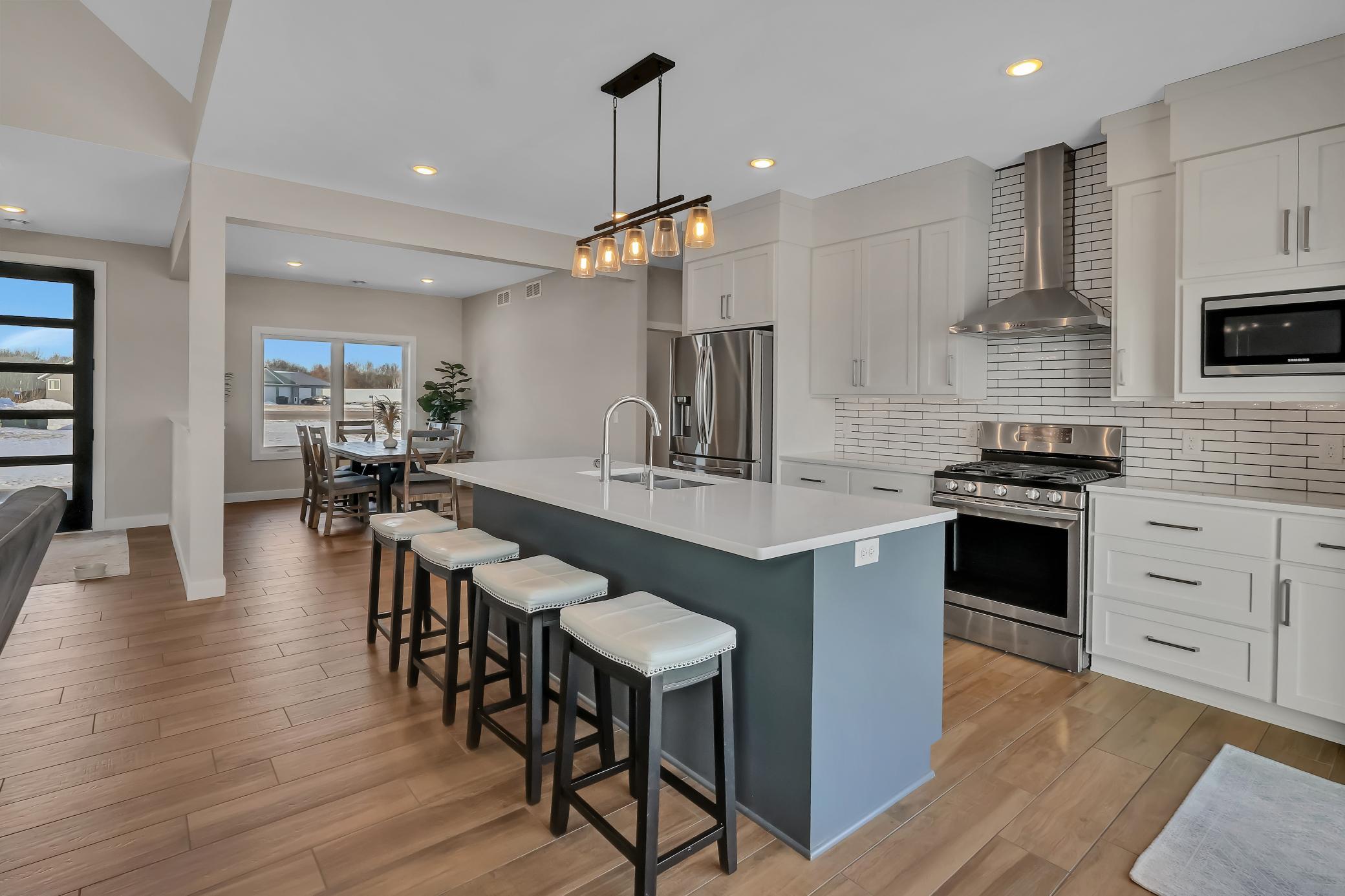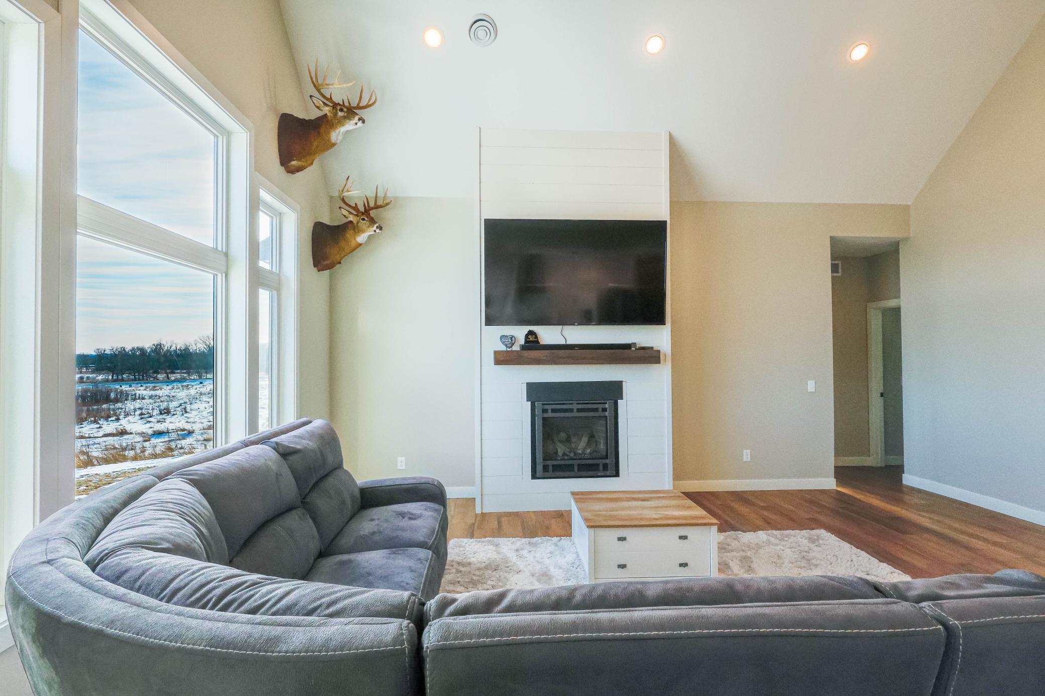 2021 built custom rambler/patio home set on 10.9-acre scenic property. Enjoy peaceful country living with beautiful views where deer and birds are part of your daily surroundings.The manicured yard features in-ground sprinklers and offers ample space for activities and outdoor enjoyment. Conveniently located just 10 minutes from St. Cloud, providing easy access to shopping, dining, and local attractions while still offering privacy and tranquility.The homes exterior showcases low-maintenance LP Smart Side siding and 30-year shingles for long-term durability. A fully finished 3-stall garage includes epoxied floors and an LP heaterideal for year-round use.Inside, quality craftsmanship is evident throughout with Marvin windows and thoughtful design. The main level offers 3 bedrooms, 2 full bathrooms, and a half bath. The main-floor primary suite features panoramic views and a private retreat feel. Bedrooms two and three are generously sized with closets. A full bath splits the bedrooms.The custom kitchen boasts high-end appliances, quartz countertops, custom cabinetry, and a large island, perfect for gathering and entertaining. A spacious laundry room includes front-load washer and dryer, custom cabinetry, and an adjacent half bath for added convenience.A formal dining room and large office flank the main entrance, creating a welcoming and functional layout. The main living area features a west-facing view, vaulted ceiling, and cozy gas fireplace, offering an open and inviting atmosphere.
