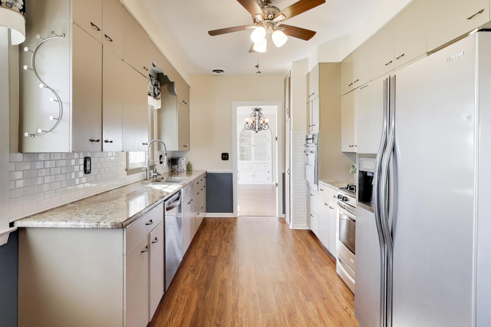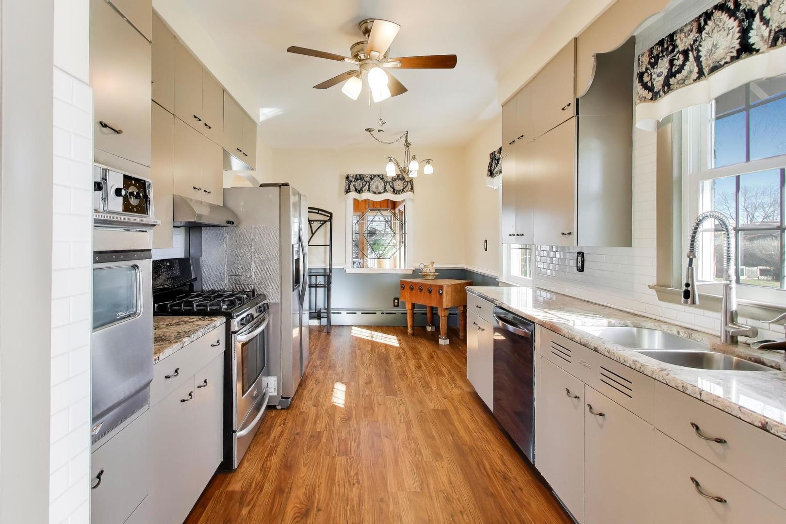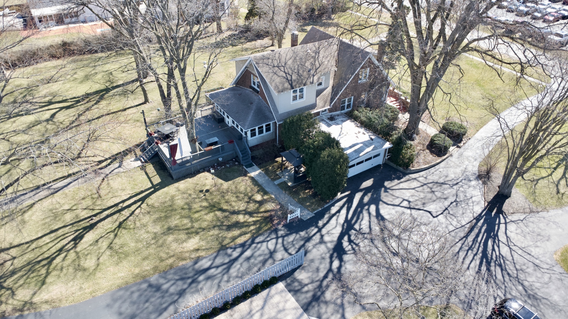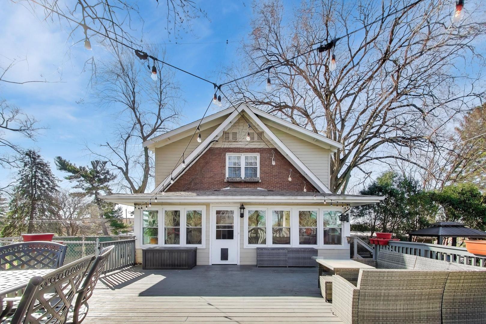 Historic Storybook Tudor with timeless craftsmanship and rare in-town acreage. Built in 1927 by Dr. Homer Hiatt, a respected figure in Beecher's early history, this classic Tudor offers 5 bedrooms, 2 bathrooms, and over 3200 square feet of living space across multiple levels. Steep Tudor rooflines, a charming brick archway entry, and classic ivy-covered exterior give the home its distinctive storybook presence-the kind of quality construction and architectural character rarely built today. Inside, you'll find spacious rooms, solid craftsmanship, and abundant storage throughout. Original built-ins, a wood-burning fireplace, and thoughtful details reflect the enduring quality of the era. The generous layout provides comfortable living spaces with flexibility for modern updates while preserving the home's historic charm. While the architecture is classic, the outdoor living spaces are truly the standout feature. Situated on a rare 1.07-acre in-town lot, the property offers a sense of space and privacy that is increasingly hard to find. The enclosed back porch, surrounded by windows, creates a peaceful retreat overlooking the backyard and opens to an expansive deck perfect for outdoor dining and relaxing summer evenings. The grounds unfold into a park-like setting with garden areas, a fire pit gathering space, mature trees, and an open lawn-ideal for entertaining, gardening, or simply enjoying the quiet beauty of having room to spread out around your home.