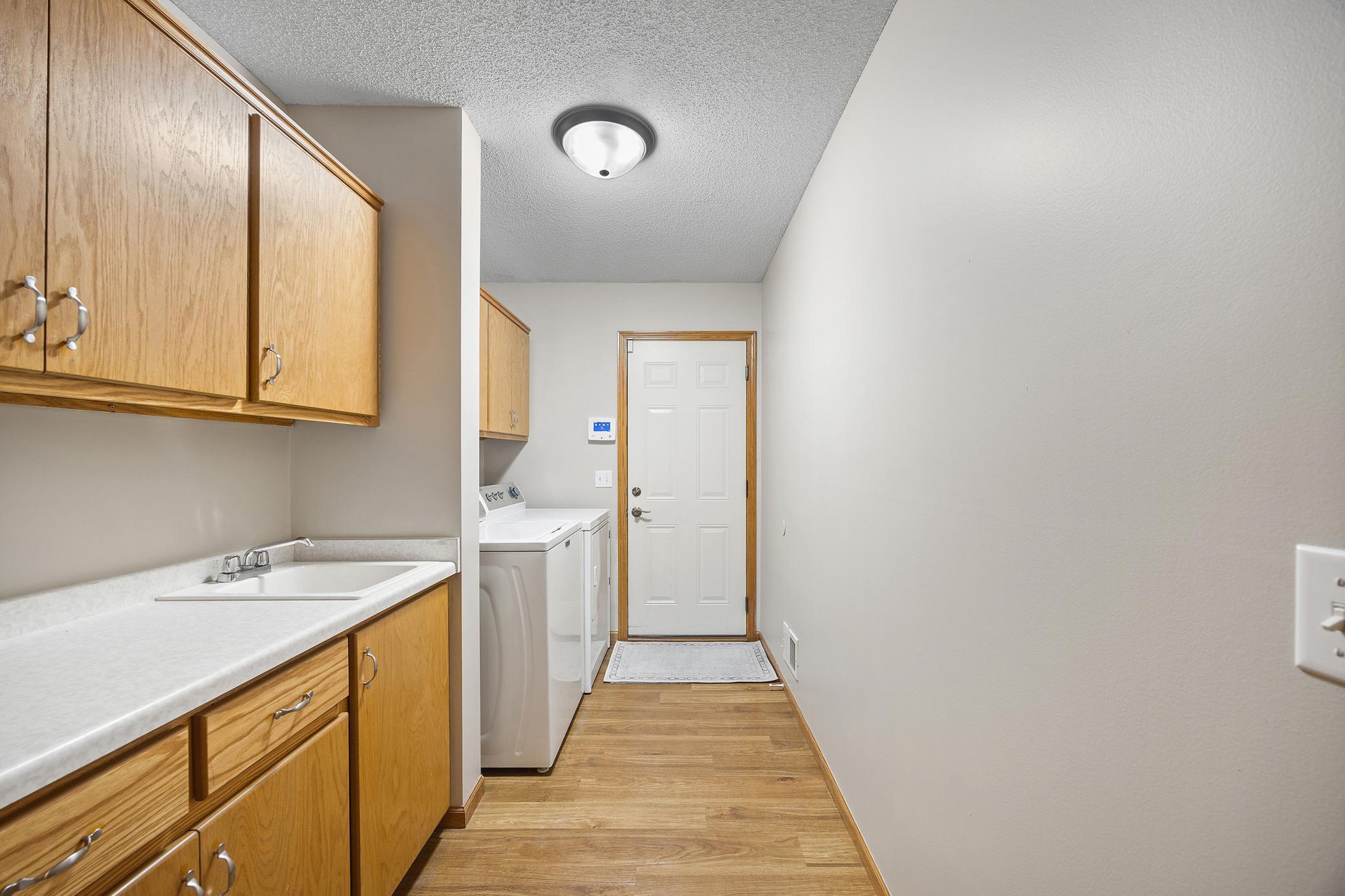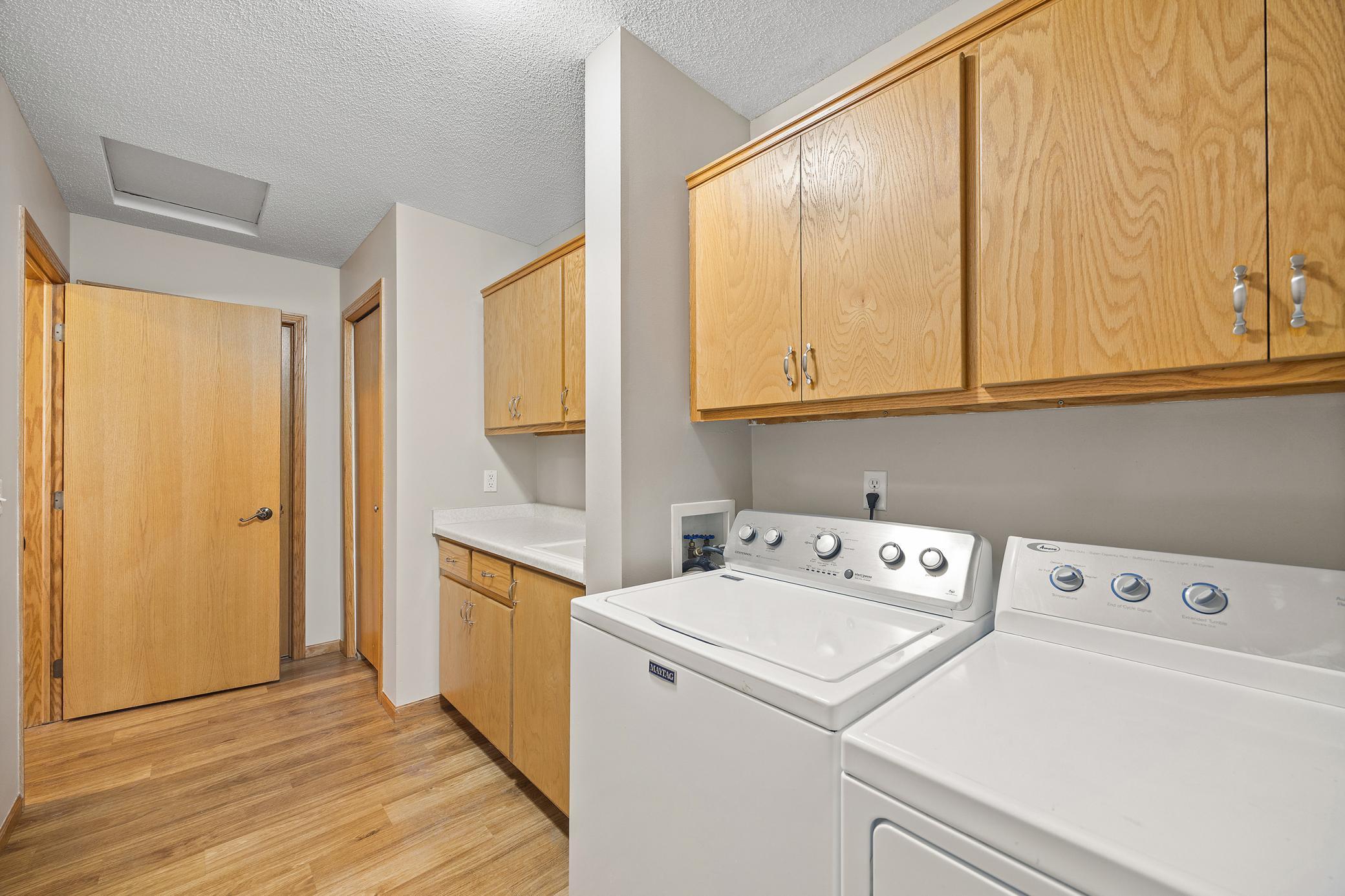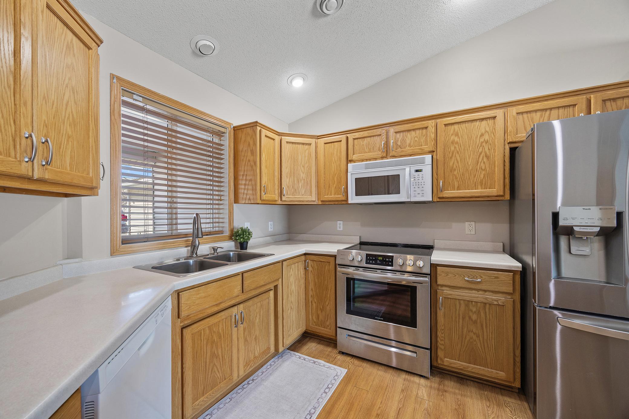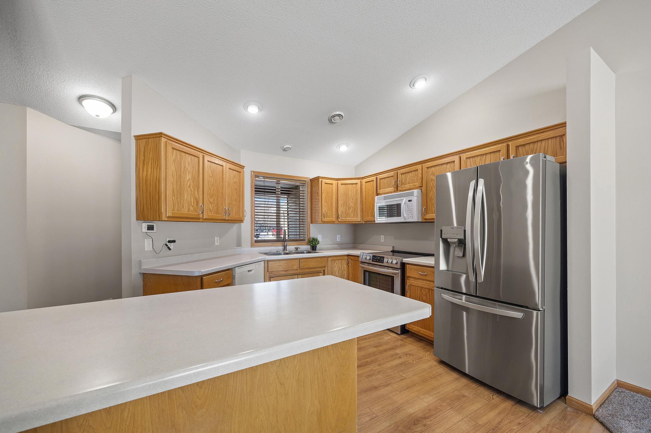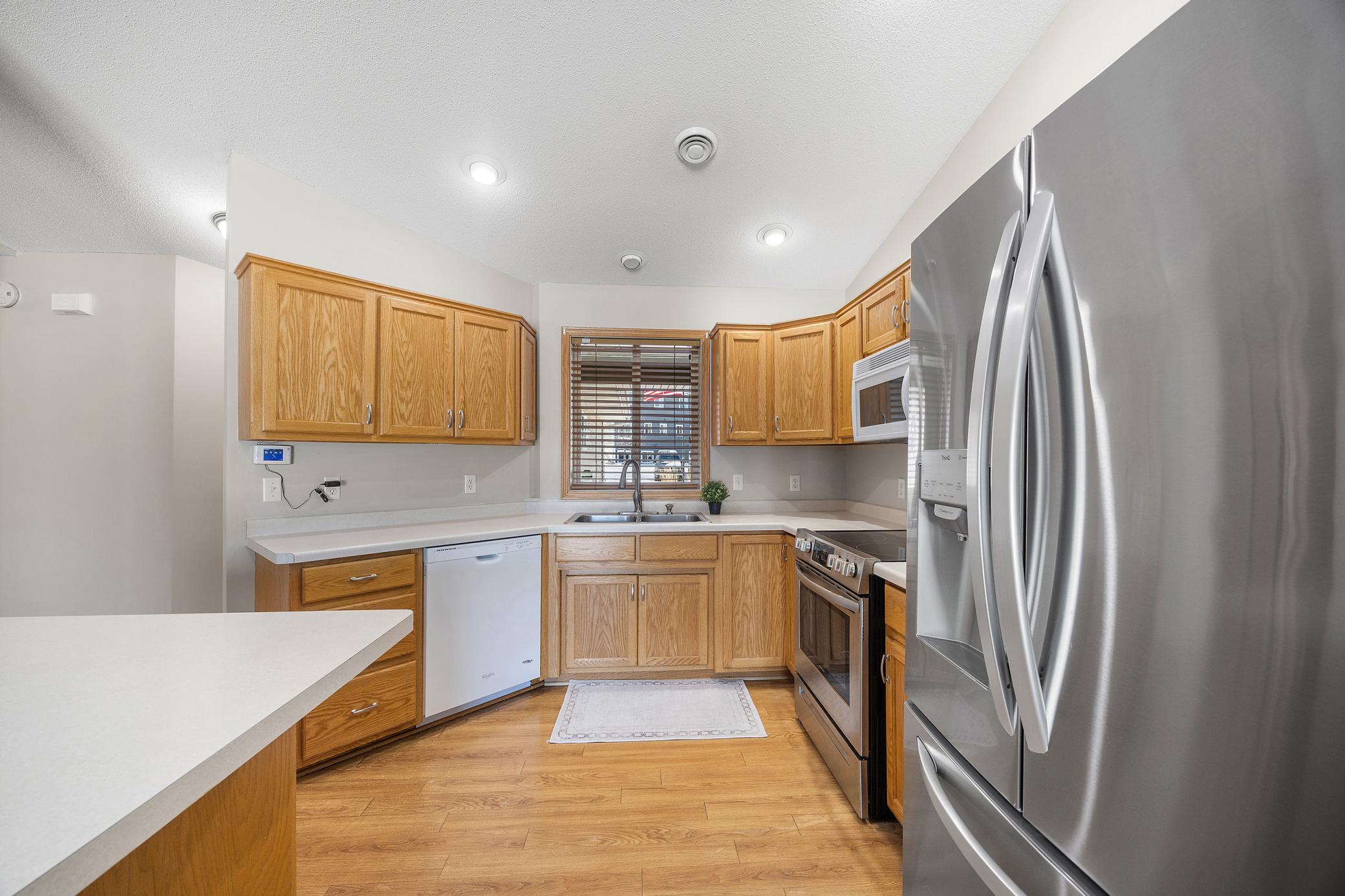 Experience the convenience of one-level living in this beautifully maintained, move-in-ready townhome. Step through the inviting front entrance into a bright, open-concept floor plan that has been freshly painted throughout, offering a crisp and modern feel. At the heart of the home, a stunning kitchen serves as a stylish centerpiece, perfect for both daily meals and easy entertaining. The primary suite is a true sanctuary, featuring a spacious layout and an impressive walk-in closet. A versatile guest bedroom and a dedicated full laundry room provide the perfect balance of comfort and utility, all on one floor. Complete with an attached two-stall garage, this home offers a seamless, low-maintenance lifestyle with no stairs to navigate.