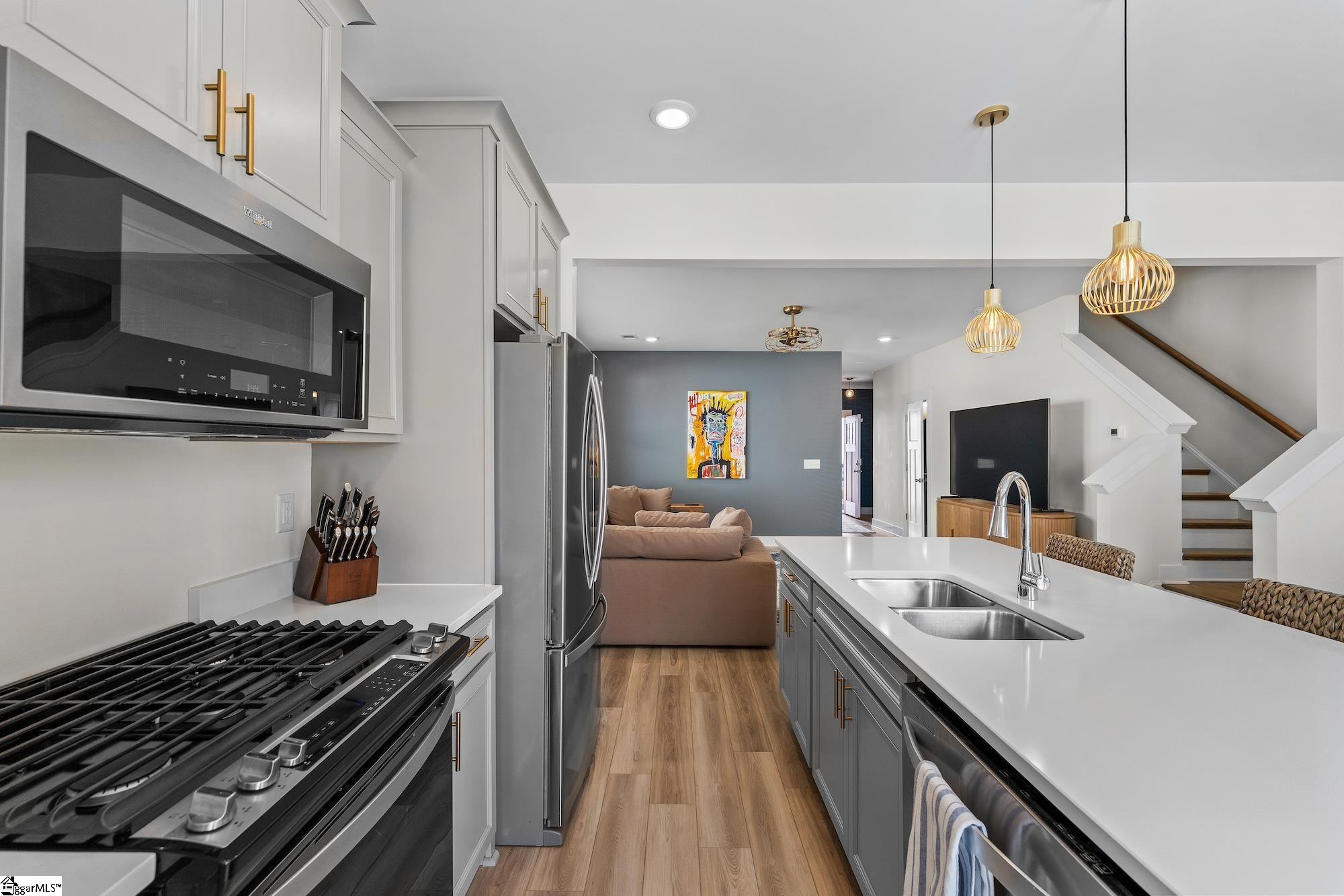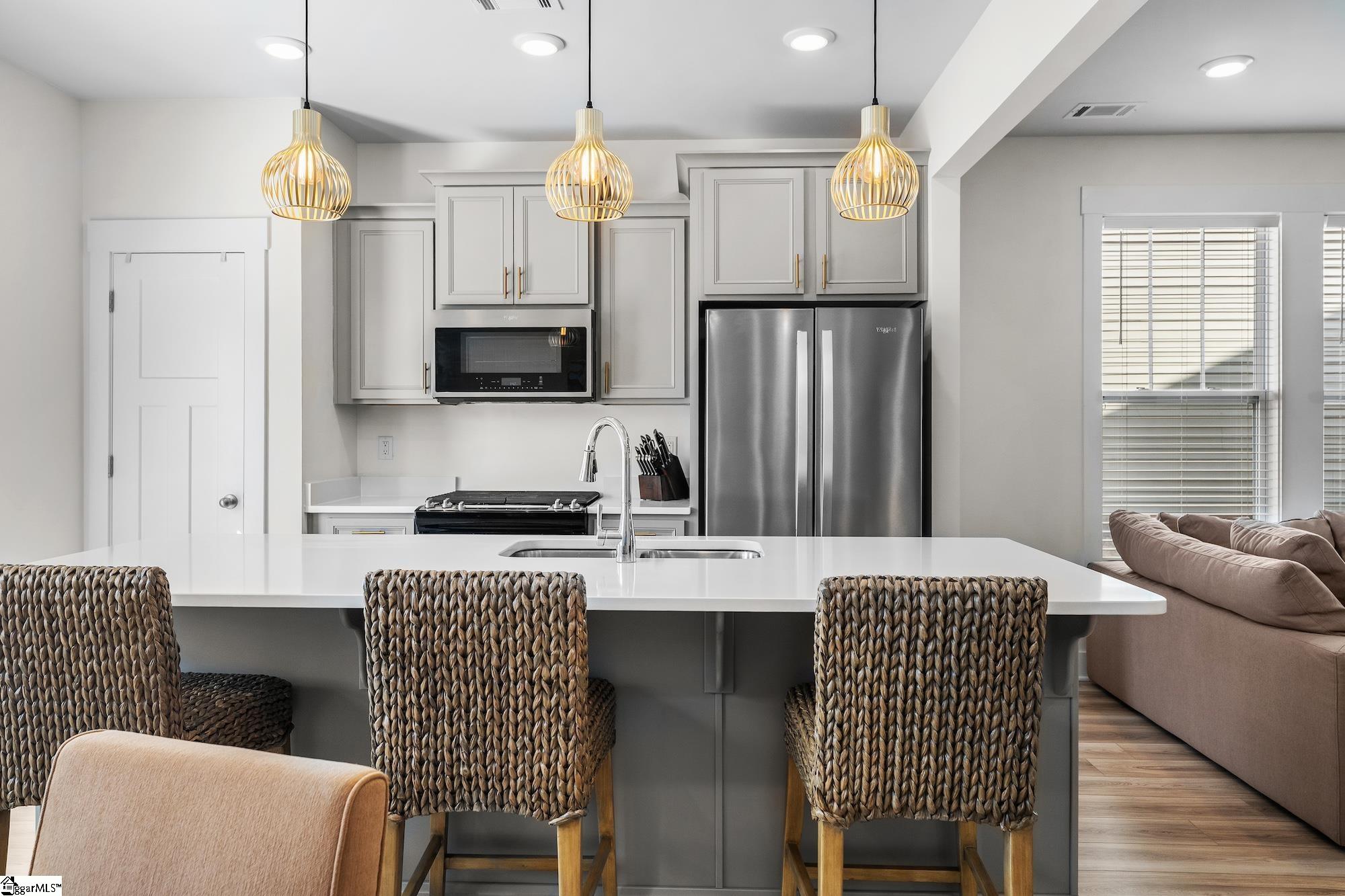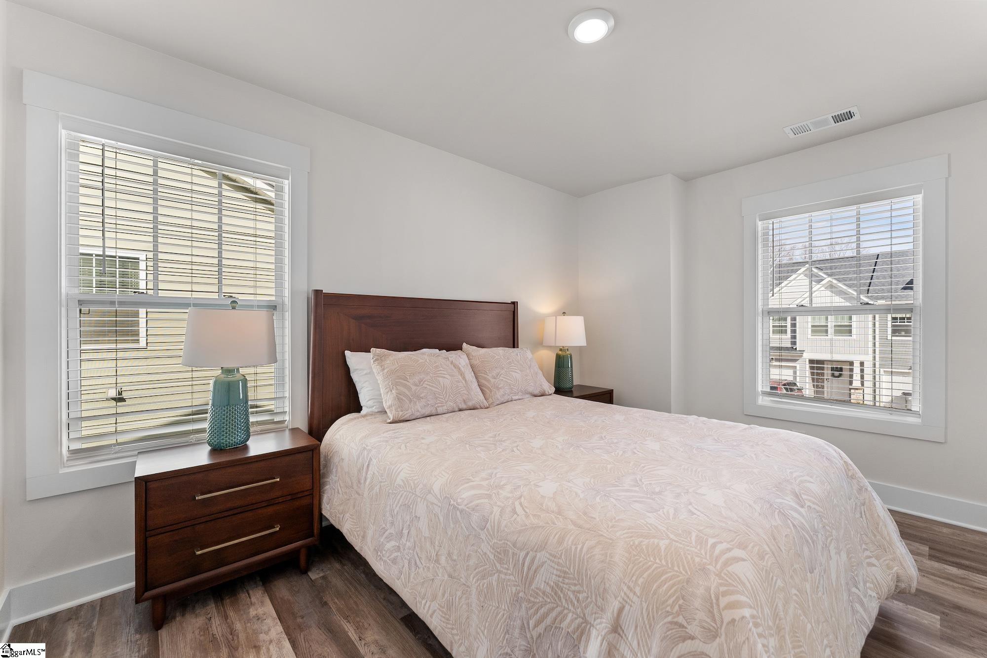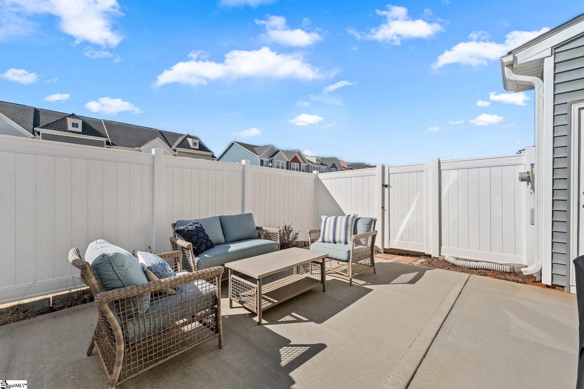 Welcome to this stunning FULLY FURNISHED END UNIT 3-bedroom townhome in the highly desirable Monte Vista subdivision where location truly cant be beat! Just 4 miles to vibrant Downtown Greenville, 3 miles to charming Downtown Travelers Rest, and only 1 mile to Furman University with easy access to the popular Swamp Rabbit Trail, youll love having shopping, dining, and outdoor recreation right at your fingertips. Step inside to an inviting open floor plan filled with natural light and thoughtfully designed living spaces. The kitchen is the heart of the home, featuring an oversized island perfect for gathering, beautiful quartz countertops, upgraded cabinetry, built-in trash storage, stainless steel appliances, and ample prep space for entertaining or everyday living. The current owner has added stylish updates, including fresh paint in select areas and replacing carpet with durable, modern LVP flooring in the bedrooms giving the home a clean, cohesive feel throughout. Upstairs, the spacious primary suite offers plenty of room for a sitting area or home office nook. The en-suite bathroom includes a double vanity, walk-in shower, and convenient linen closet for added storage. Two additional bedrooms provide flexibility for guests, family, or workspace. Outside, enjoy your fully fenced, private backyard a rare find in townhome living. Whether hosting friends, grilling out, or simply unwinding after a long day, this outdoor space is perfect for relaxing and entertaining. To top it all off, this unit can remain fully furnished and it does include all appliances (fridge, washer and dryer too!!) plus a 10-year builder warranty is transferable to the new owners, providing added peace of mind. This move-in-ready end unit offers style, comfort, and an unbeatable Greenville location dont miss your opportunity to call Monte Vista home!