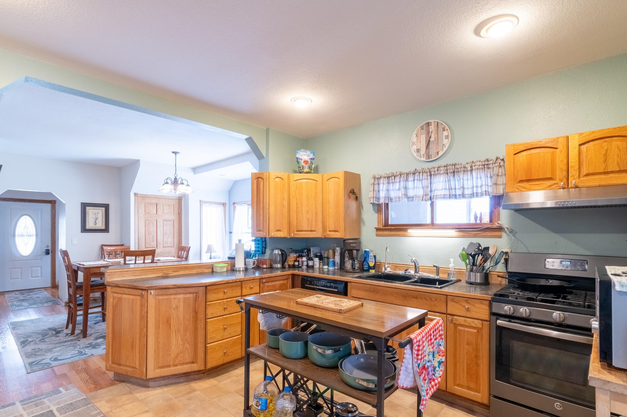 Welcome to this exceptional, fully renovated property at 615 Central Ave N in Valley City. It offers space, flexibility, and true move-in-ready convenience. Thoughtfully updated throughout, this home features tray ceilings, a warm natural gas fireplace, and a highly functional layout. The main residence offers 4 bedrooms and 3.5 bathrooms, including two spacious primary suites, each with its own private en suite, ideal for multi-generational living, guests, or anyone seeking extra privacy. The kitchen is equipped with a natural gas range, ample workspace, and flows seamlessly into the living and dining areas. Main-floor laundry adds everyday convenience. Outside, enjoy a covered patio perfect for relaxing or entertaining. A standout feature of this property is the 24 x 28 heated garage, offering far more than parking. The upper level includes a private 1-bedroom living quarters with a full bathroom, making it an excellent option for rental income, guests, a home office, or whoever else could use it. If you're looking for a turnkey home with modern updates, flexible living space, and a large heated garage with living quarters, this property checks all the boxes. Call today to view!