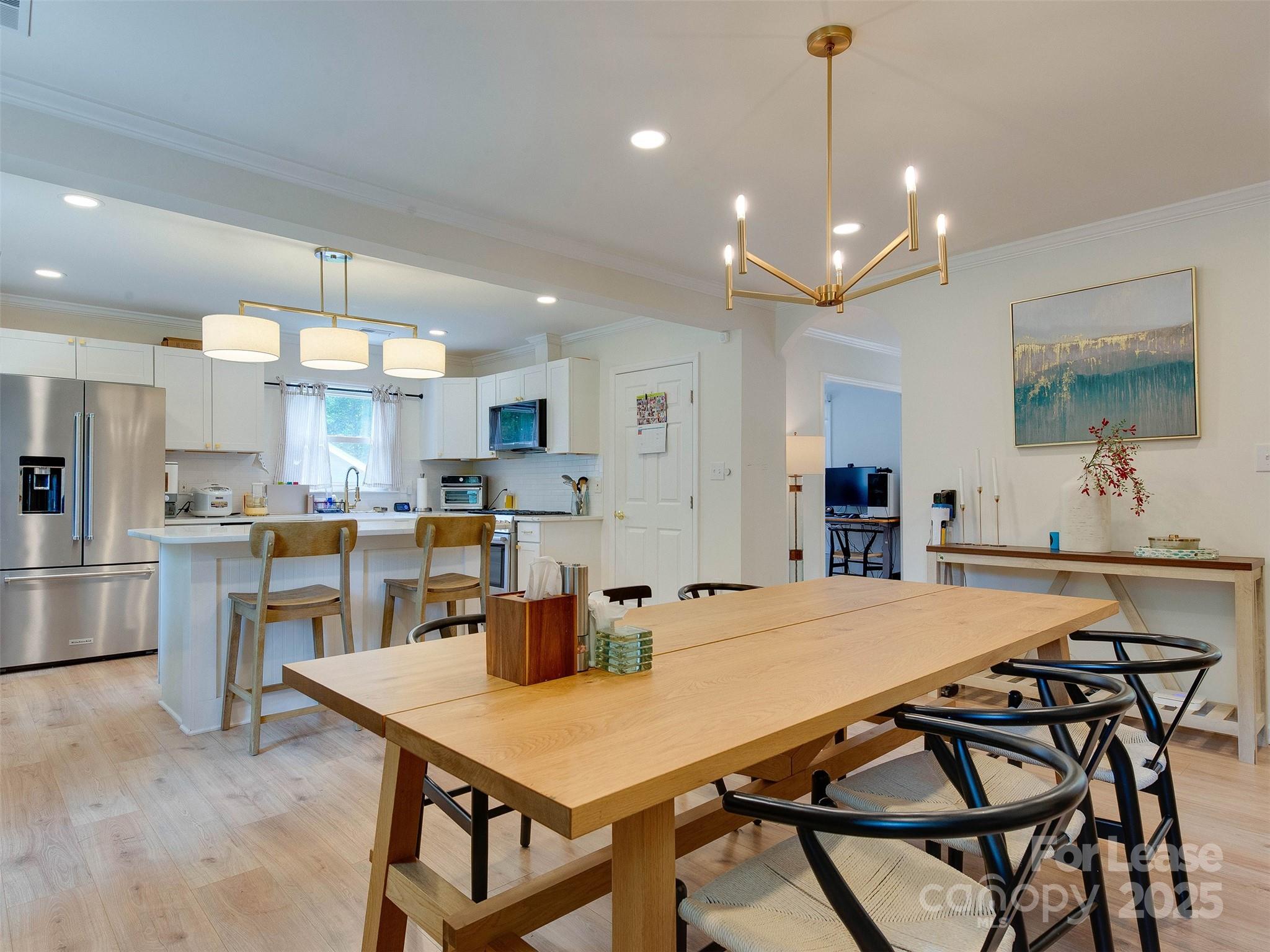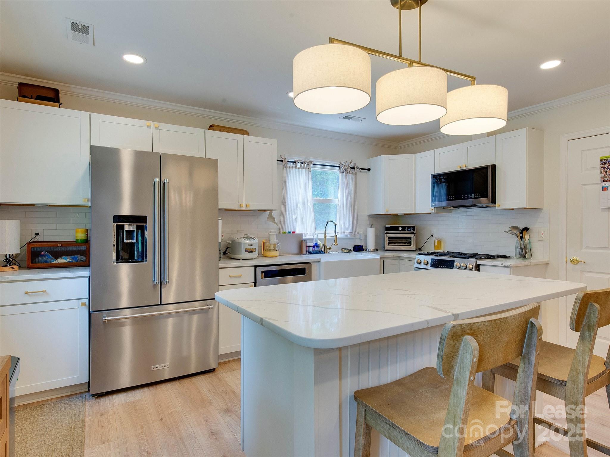 Beautiful and updated ranch on a sprawling lot in popular Matthews! You would never know you are seconds to dining, shopping, Costco, Lowes and so so much more. As you walk in, you are greeted by the open floorplan featuring a formal living room and dining room (can make a great office). Through the formal spaces takes you to the large family room and gorgeous kitchen. The chef's kitchen features a gas range, quartz countertops, new cabinets, farmhouse sink and designer knobs. All of this overlooks the huge and fenced back yard. Down the hallways are two large bedrooms and a bath complete with tub. The primary suite is a great size and overlooks the backyard. The renovated bath features a wet room tub and shower, as well as double sinks and a walk in closet. All of this and more so close to so much yet so private! Lease rate is for 18 months. Shorter terms available at increased pricing. Take a look today!
