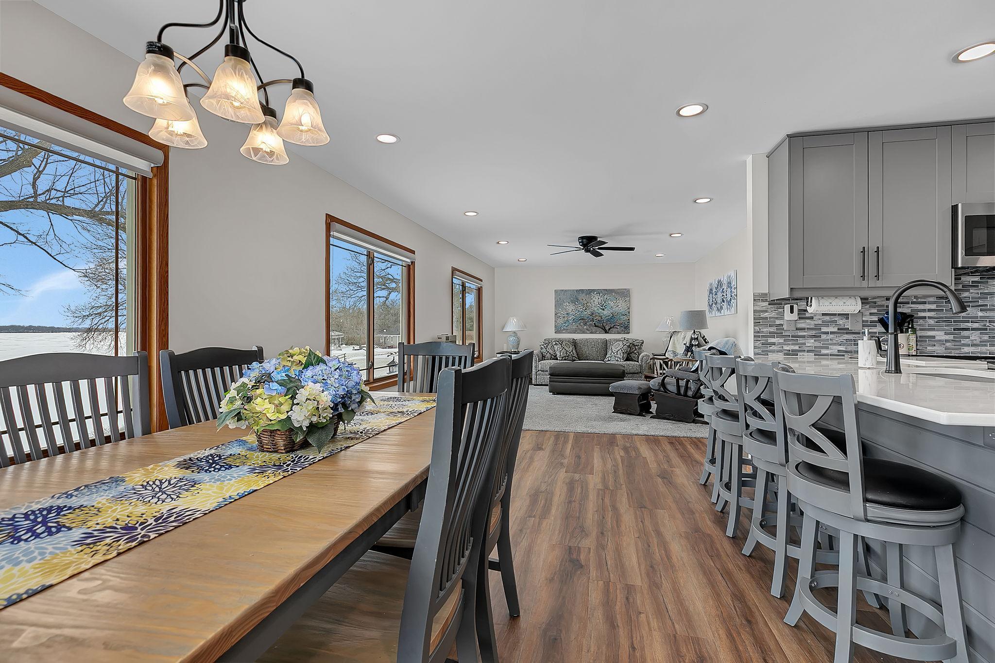 Fully Renovated Lake Home on W Norway Lake w/140 of lakeshore. Completely redone from top to bottom, this stunning lake home offers 140 feet of pristine frontage on W Norway Lake w/channel access to Norway and Games Lake (dependent on water levels) giving you expanded boating and recreation. Designed for both everyday comfort and entertaining, the open floor plan showcases panoramic views and a beautifully updated kitchen featuring quartz countertops, stainless steel appliances, and abundant cabinetry. The seamless flow from kitchen to dining to living spaces creates a bright, welcoming atmosphere. A 4-season porch provides the perfect year-round retreat, while the maintenance-free deck with modern cable railing offers unobstructed views of the water , ideal for morning coffee or sunset gatherings. The lower level walkout expands your living space and offers easy access to the shoreline. With 4BR, 3BA, and a 3-stall detached garage, theres plenty of room for family, guests, and all your lake toys. If youre looking for turnkey lake living with breathtaking views and access to multiple lakes, this property is ready to impress.