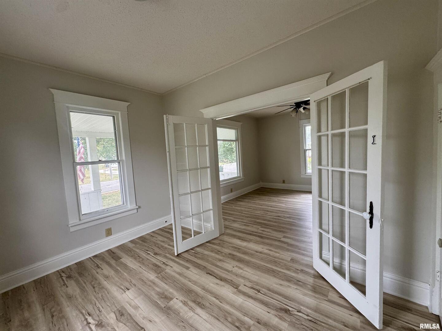 Charming and move-in ready, this 3-bedroom, 1-bath home offers fresh updates and classic appeal. Step inside to discover brand-new luxury vinyl plank flooring and fresh paint throughout, creating a bright and welcoming atmosphere. The spacious layout features multiple living areas with large windows. French doors add timeless character, while the neutral palette makes it easy to personalize. Outside, enjoy the fenced-in backyard-ideal and a detached 1.5-car garage for added storage and convenience. Located on a quiet street just minutes from local schools, parks, and downtown amenities, this home is a perfect blend of comfort and practicality. Water Heater (2014) Furnace (2008)Listing Agent Related to Seller and Licensed in IA and IL.