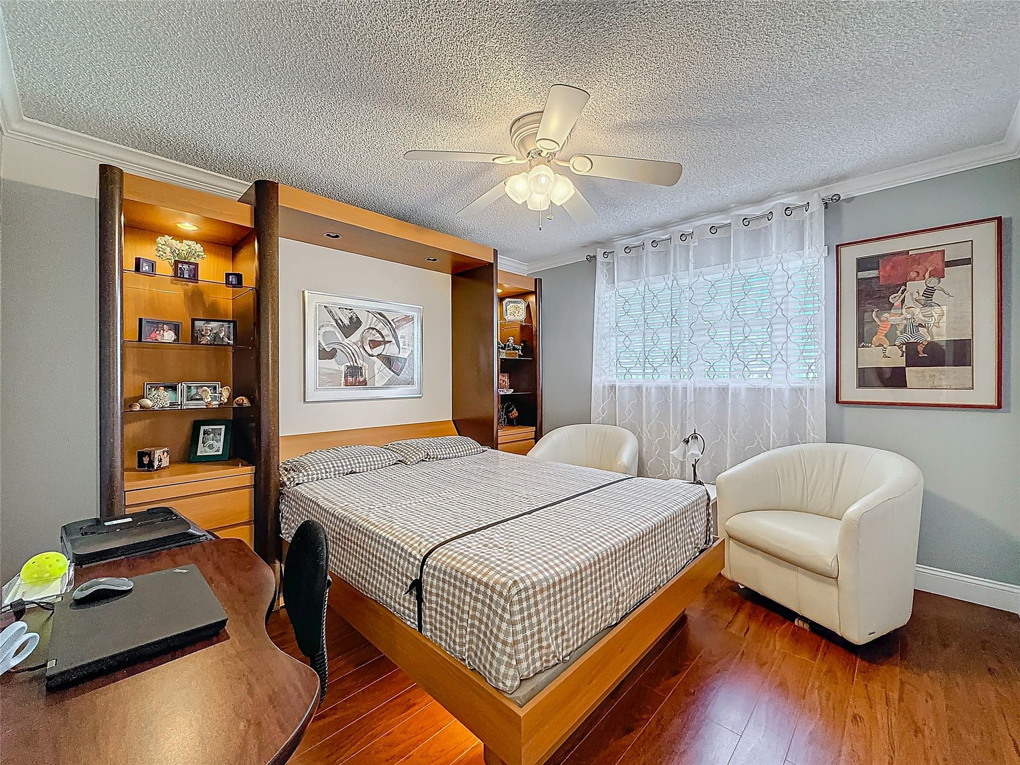 **MOVE IN READY**IMMACULATE**FULLY UPDATED/FURNISHED**2 BEDROOM/2 BATH GATED COMMUNITY**UPDATED KITCHEN WITH NEWER APPLIANCES, QUARTZ COUNTERTOPS, DINING COUNTER SPACE, ISLAND AREA, CUSTOM CABINETS WITH OVER & UNDER LIGHTING**UPDATED LUXURIOUS BATHS TILED FLOOR TO CEILING WITH PERSONAL TOUCH CABINETRY, SHOWERS, DOUBLE VANITY IN PRIMARY BATH**PRIMARY BEDROOM CUSTOM WALK-IN CLOSETS, 1 CEDAR**2ND BEDROOM WITH CUSTOM QUEEN SIZE MURPHY BED WITH BUILT-IN TV**CROWN MOLDINGS & NEW DOORS**CUSTOM WINDOW TREATMENT**PATIO HAS ROLLADEN STORM SHUTTERS & TROPICAL POOL VIEW--ACCESS FROM BEDROOM & LIVING ROOM**PORCELIAN TILE & HIGH QUALITY LAMINANT FLOORING**A/C 2023**WATER HEATER 2025**FULL SIZE WASHER/DRYER** PARKING SPACE 176**20% Down in escrow, 680 credit score min, proof of $50,000.. 55+ community