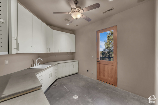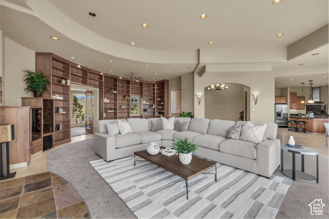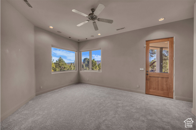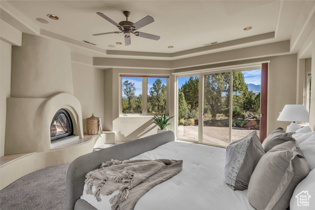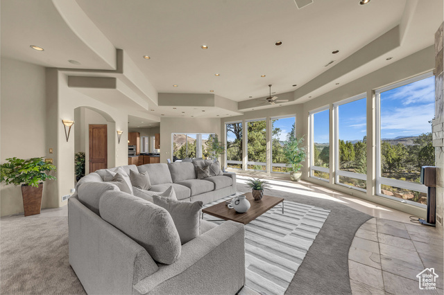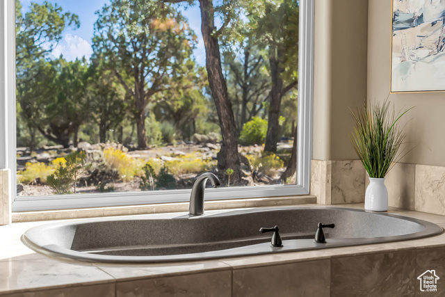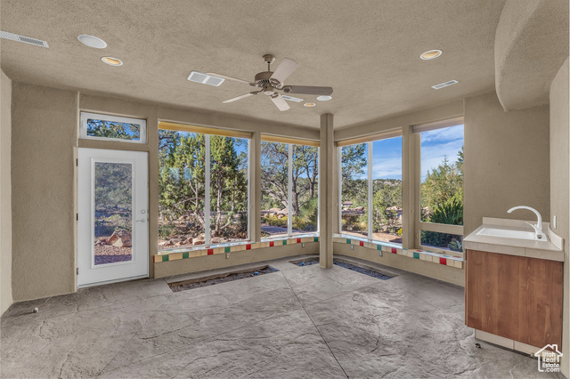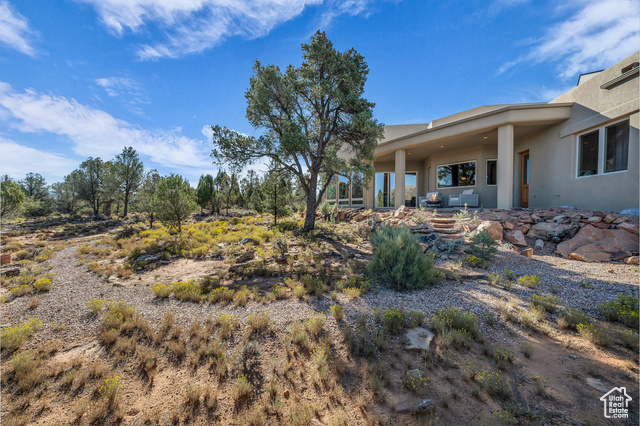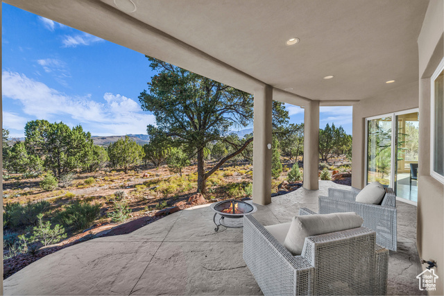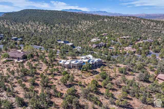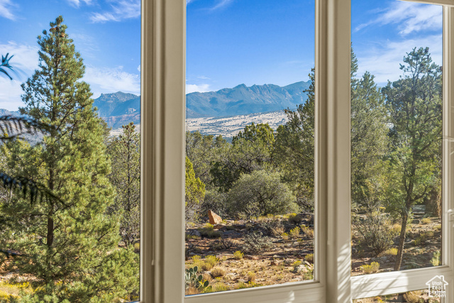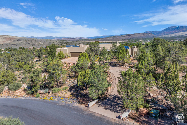 Nestled on a serene 1.46-acre lot in Pinion Hills, this former Parade Home by renowned builder Brooks Pace blends timeless craftsmanship with modern comfort. From the moment you enter, expansive floor-to-ceiling windows frame breathtaking views across Dammeron Valley, filling the home with natural light. Designed with both artistry and functionality, the home's open layout showcases a soaring wooden bookcase wall, two cozy gas fireplaces, and thoughtful spaces that inspire creativity. The primary suite opens into a sunroom retreat, featuring dual French doors that invite the outdoors in. A dedicated workshop near the guest bedroom-complete with custom cabinetry, cement counters, and a floor drain-was purpose-built for clay throwing or other hands-on hobbies. Every detail has been carefully maintained, with fresh stucco and exterior paint, as well as newly upgraded carpet. Step outside onto the expansive east-facing deck to savor morning sunrises and valley views, or make use of the oversized 1,273 sq ft garage and workshop for projects and storage. With owned solar panels adding energy efficiency, this home is as practical as it is inspiring.