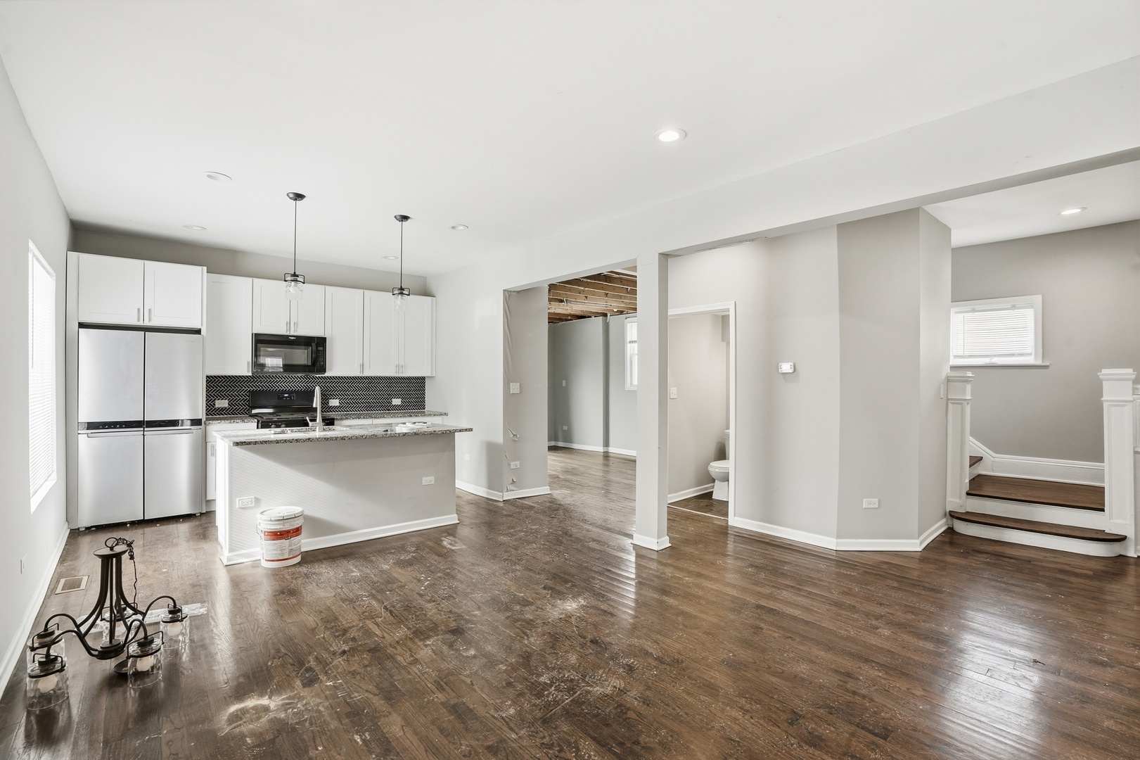 Recently remodeled two-story single family home in excellent Maywood location offering an open-concept layout with 9-foot ceilings and just under 2,000 sq ft of living space, including a full, partially finished basement. Main level features hardwood floors throughout, updated appliances, soft-close cabinetry, granite countertops, and an eat-in island. Also on the main floor is a bedroom and full bath with a tiled walk-in shower along with a spacious living room and separate dining room with sliding doors leading to the deck and a large yard. The outdoor space is perfect for entertaining. The finished basement includes laundry, updated HVAC, ample storage, and an additional flex room. Upper level offers a full bath and three bedrooms, including a light-filled primary bedroom with carpet. The exterior features updated siding, stone accents, and a welcoming front porch. Property needs a bit of TLC and is being sold AS-IS. Conventional financing or cash buyers only. Schedule a showing today!