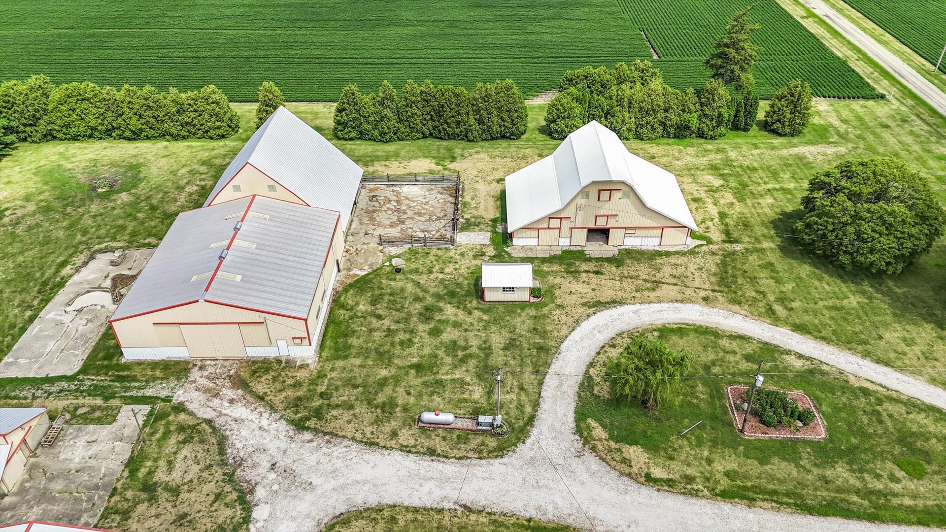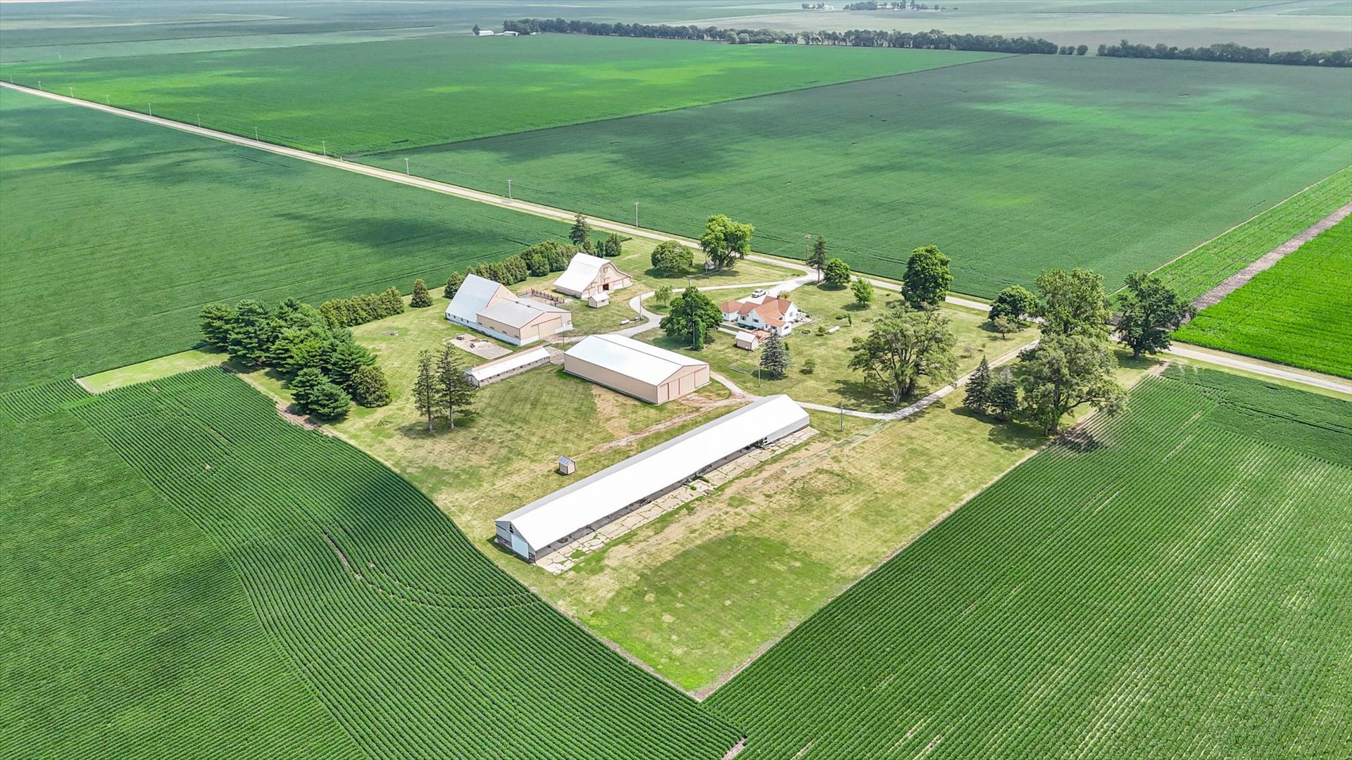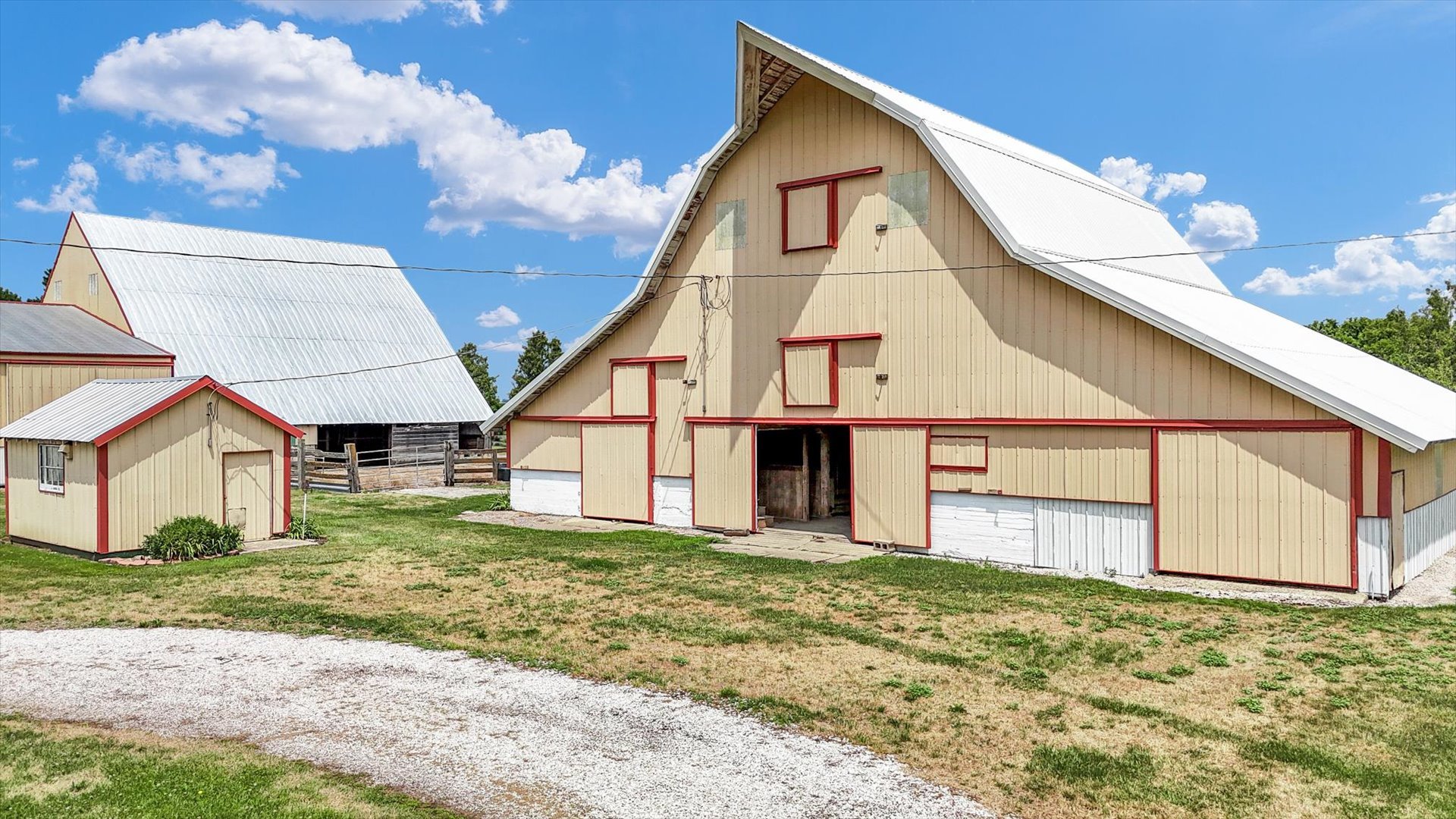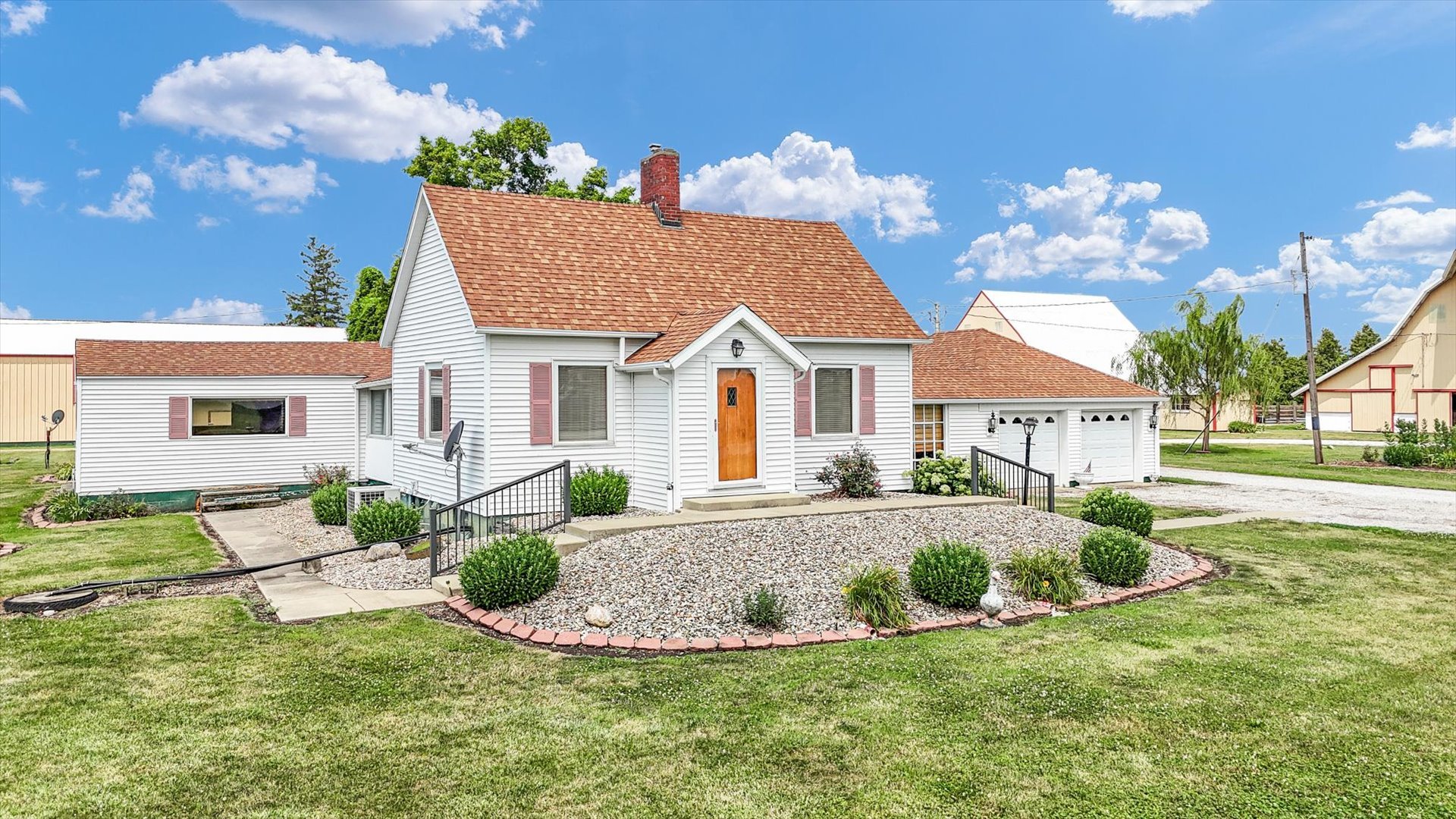 Welcome to a one-of-a-kind rural retreat that offers the best of country living! Nestled on 9.4 beautifully maintained acres, this property is more than just a home-it's a lifestyle. The charming farmhouse-style home features warm, welcoming spaces filled with natural light and vintage character. Enjoy views of the countryside from nearly every room, with cozy touches like arched doorways, a sun-drenched sitting area, and a classic fireplace. Outside, the real showstoppers are the outbuildings. The iconic red-trimmed barn brings timeless beauty and function, while the massive shop is ready for all your hobbies, projects, or storage needs. Whether you dream of hosting events, housing animals, or running your own business, you've got the space to do it all. Wide open fields surround the home, giving you postcard-worthy views in every direction. From sunrise to sunset, the peaceful setting is simply unbeatable. This is your chance to own a little slice of the Midwest-with room to grow, play, work, or just breathe. Don't miss out! Call today to schedule a private showing.