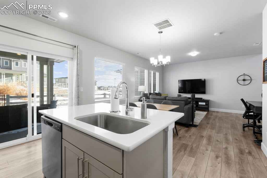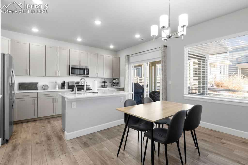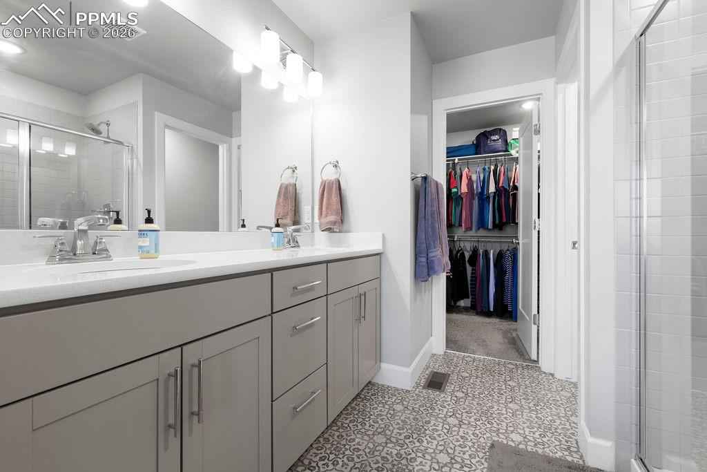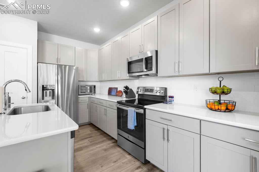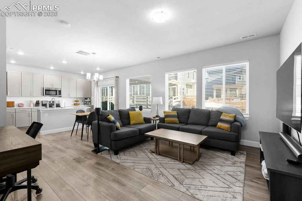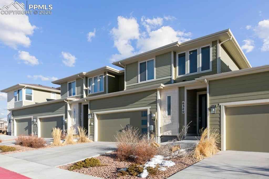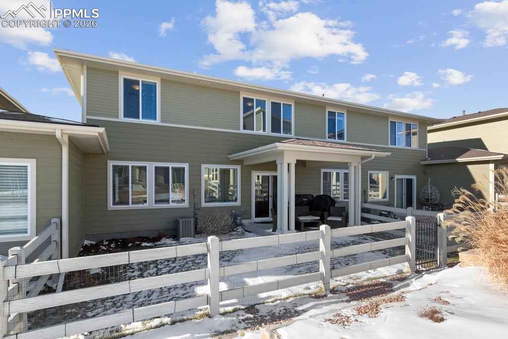 Gorgeous Wolf Ranch townhome at Sage Meadows with a 2 car garage and fully fenced backyard! This 3 bedroom 3 bath home has been meticulously maintained and is ready for your pickiest buyers! Enjoy the proximity to Wolf Lake and the views of the lake from your new home! Enjoy the open concept living with beautiful vaulted ceilings and tons of natural light as you enter this great home! Updated luxury vinyl plank flooring throughout the main level! The spacious living room with beautiful natural night leads into your eating area and the nicely appointed kitchen. The kitchen offers tons of cabinets with recessed lighting as well as gorgeous quartz countertops, a nice sized island with seating, beautiful stainless steel appliances, a nicely sized pantry and upgraded hardware/fixtures. Walk out to your covered patio to enjoy the beautiful view and backyard! Head upstairs to find a conveniently located laundry room, washer/dryer are included! The master bedroom looks out over the open space and has a nice view of Wolf Lake! Beautiful master bath with double sinks, quartz countertops, a huge walk-in shower with convenient bench seat, private toilet room and a spacious walk-in closet finishes off this great master suite! Two additional bedrooms as well as a full bath finish off this great level! Enjoy the comfort of A/C for those warm Colorado summers! The tankless hot water heater allows for cost savings as well as quick hot water! Close to Powers, Black Forest road with easy access to the military bases, hospital, parks, schools and walking trails! There is nothing left to do here but move in!