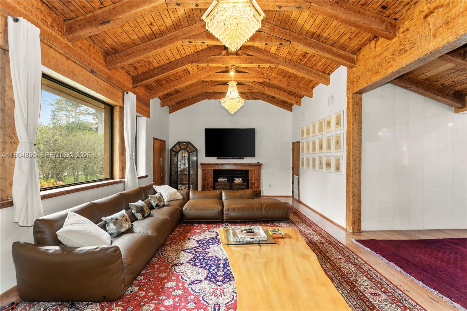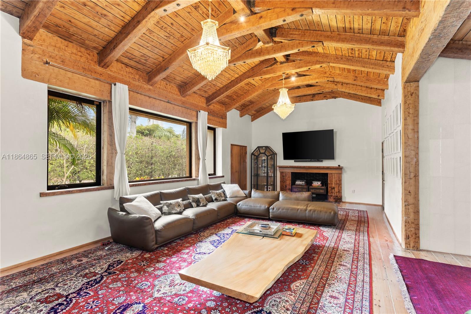 Experience refined sophistication at this exclusive Pine Tree residence, featuring exposed beams and 13-foot vaulted ceilings that blend modern design with timeless charm. The expansive kitchen overlooks a pristine pool and lush garden, creating an elegant setting for both relaxation and entertaining. The home offers three bedrooms plus a maids quarters with a full bath, for a total of four bedrooms and four bathrooms. Situated on a large 11,616 SF lot with only two neighboring properties, the home enjoys exceptional privacy. Located directly across from a newly renovated childrens park and set on one of Miamis most exclusive addresses, just one block from La Gorce and North Bay Road. New roof and new impact windows in the process of being installed.