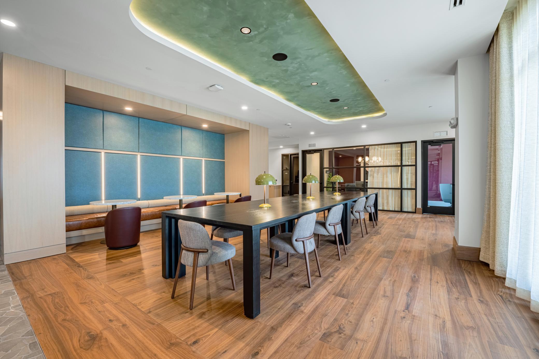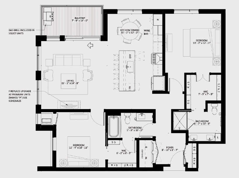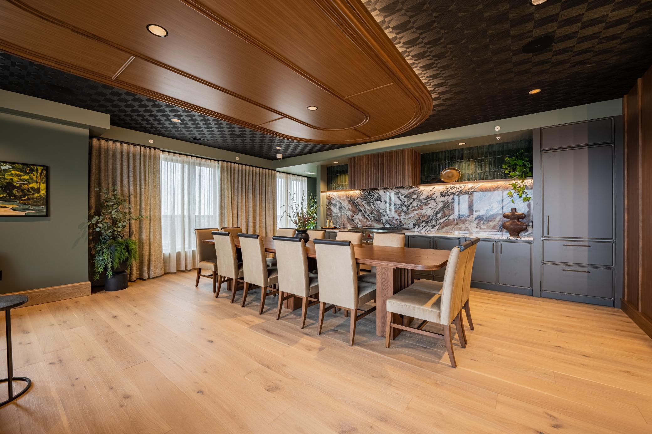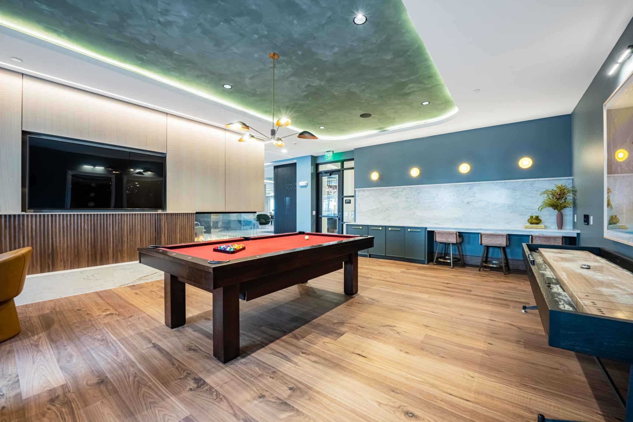 Welcome to The Winn! This expansive 2-bedroom, 2-bath residence offers 1,398 square feet of open living space in a desirable corner layout filled with natural light. The Sweeney features a gourmet kitchen with designer hood and island, a dedicated dining area, and a full-size in-home laundry room with folding counter. Select homes include a private balcony with gas grill and a modern gas fireplace. The thoughtful floorplan provides excellent bedroom separation and generous walk-in closets.The Winn offers resort-inspired amenities including a rooftop Sky Lounge with chefs kitchen and wine bar, a resort-style courtyard with pool, year-round hot tub and sauna, fitness and yoga studio, and quiet work-from-home suites. Additional features include a movie theater, golf simulator and billiards hall, pet lounge and pet run, coffee bar, package delivery room with refrigerators, climate-controlled parking, and extra storage. Professionally managed by a dedicated on-site team.