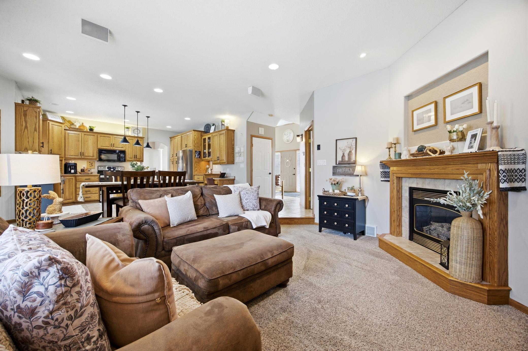 This stunning home in the sought after development in Oxbow is the one you have been looking for. This home has three fireplaces, 4 bedrooms, 4 baths, a beautiful newer sunroom. Built in surround sound, heated tile in the basement, vaulted ceilings and the list goes on. The outside of this home has been transformed with new seamless steel siding and a newer roof. You will be shocked how large the garage is. It is also heated and has a floor drain. You will enjoy the sprinkler system, patio area and the large yard.