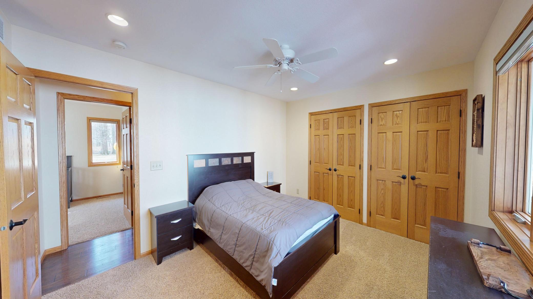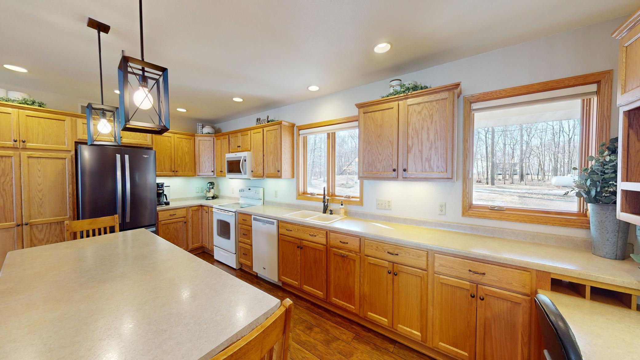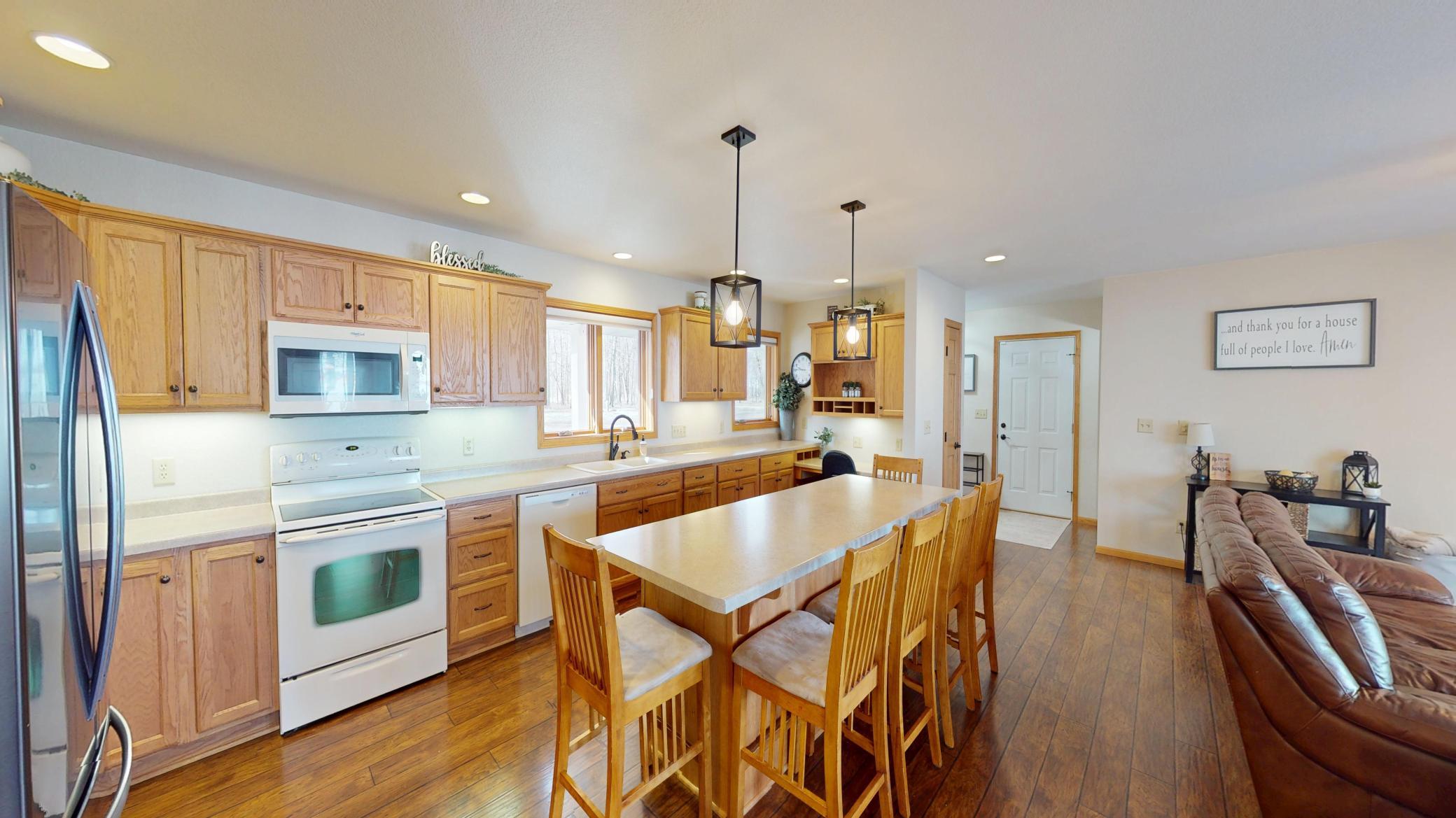 Come home to this nature paradise with a beautiful, move in ready house overlooking Freeborn Lake. This home was built in 2008, using energy efficient SIP walls, and is a 3,300 square foot house with a welcoming front porch that leads into an open concept entry way, living room, kitchen, and dining room that are full of windows and natural light. The main level also includes a large laundry room, guest bathroom, primary master bedroom with a bathroom and walk in closet, and an additional bedroom. The basement was finished in 2025, with added square footage in the open concept living space, bathroom, and additional bedrooms. This house has heated floors paired with central heat and air conditioning. The covered, stunning deck overlooking the backyard and lake makes this home exceptional. Its perfect to enjoy as a family or for entertaining as you take in the peaceful outdoors with incredible views and walk out water access. The attached three stall garage includes heated floors. Outside you will enjoy the full aspect of country living on this 3.23 acre property, which includes open yard space, wooded acres to explore, and a garden shed for additional storage. This acreage is located on a quiet gravel road into the woods and is full of nature and wildlife. What was bought as a forever home for the sellers has now come back on the market as they are moving to follow a dream job opportunity. During their time here, they intentionally completed projects by hiring out and getting the basement finished. This consisted of electrical, sheetrock, flooring, and painting and makes this home move in ready for the new owners. Additionally, a new roof was installed in the fall of 2025. Come experience the fullness of life tucked into nature. No matter your season of life, you are sure going to enjoy this stunning property in this well designed, energy efficient, and practical home by the lake.
