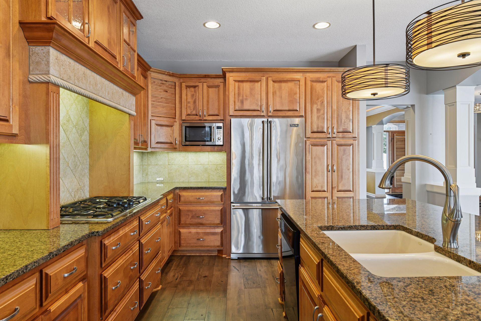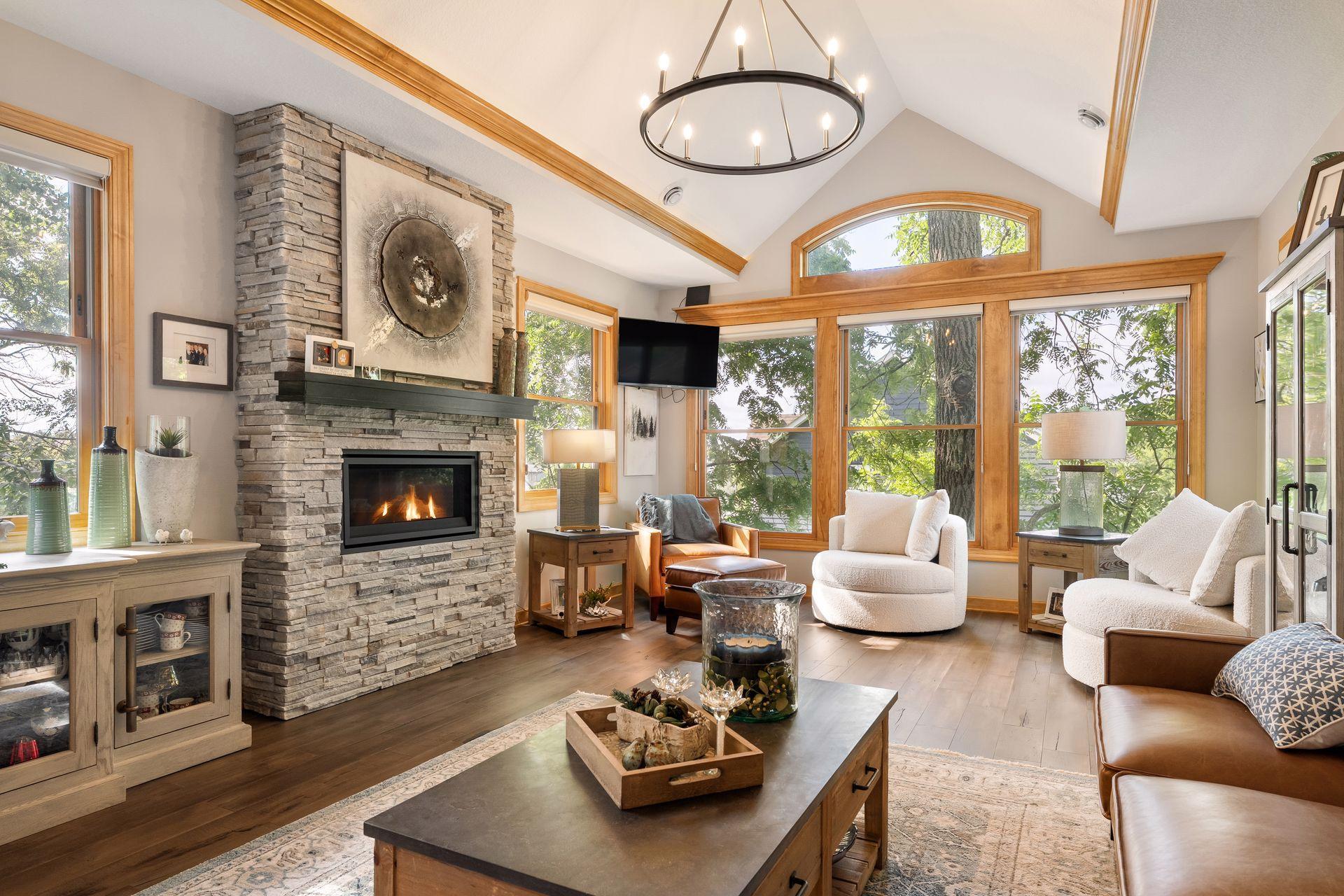 Timeless design, thoughtful upgrades, and exceptional comfort define this beautifully maintained 4-bedroom, 4-bathroom walkout rambler set on a private 1.13-acre property in Excelsior. The open and inviting main level features a stunning great room with soaring vaulted ceilings, rich maple woodwork with custom built-ins, hardwood and tiled floors, Hunter Douglas blinds, and California Closets throughout. A private main-level office offers flexibility as a potential fifth bedroom, while convenient main-floor laundry enhances everyday living. The chefs kitchen is designed for both function and entertaining, featuring granite countertops, abundant storage, and a large center islandperfect for gatherings of any size. The luxurious primary suite is a true retreat, complete with a spa-like bathroom featuring a soaking tub, tiled walk-in shower, heated floors, and extra-large walk-in closets with adjoining flex space ideal for a workout area and additional storage. The finished lower level provides exceptional comfort and versatility with heated floors throughout, expansive seating areas, an entertainment center, and a stylish bar with sink, mini fridge, microwave, and billiards area. A second game room is ideal for poker or board games, while three additional bedrooms and two full bathrooms create an ideal setup for guests, teens, or multigenerational living. Outdoor living is equally impressive with an inviting screened-in porch for multi-season enjoyment, stone patios for additional gathering areas, a huge maintenance free deck perfect for entertaining, and a professionally landscaped yard with mature plantings and polished curb appeal across the expansive lot. Recent updates include new boiler servicing in-floor heat in the lower-level (2024); new roof and gutters with leaf protection and major improvements including creation of the vaulted great room, expansion of the primary suite walk-in closet and flex area, addition of a lower-level screened porch, and new main-level hardwood floors (2021). Meticulously maintained, move-in ready, and ideally located just minutes to downtown Excelsior, nearby trails and multiple parks this exceptional Excelsior property offers space, privacy, and timeless appeal.