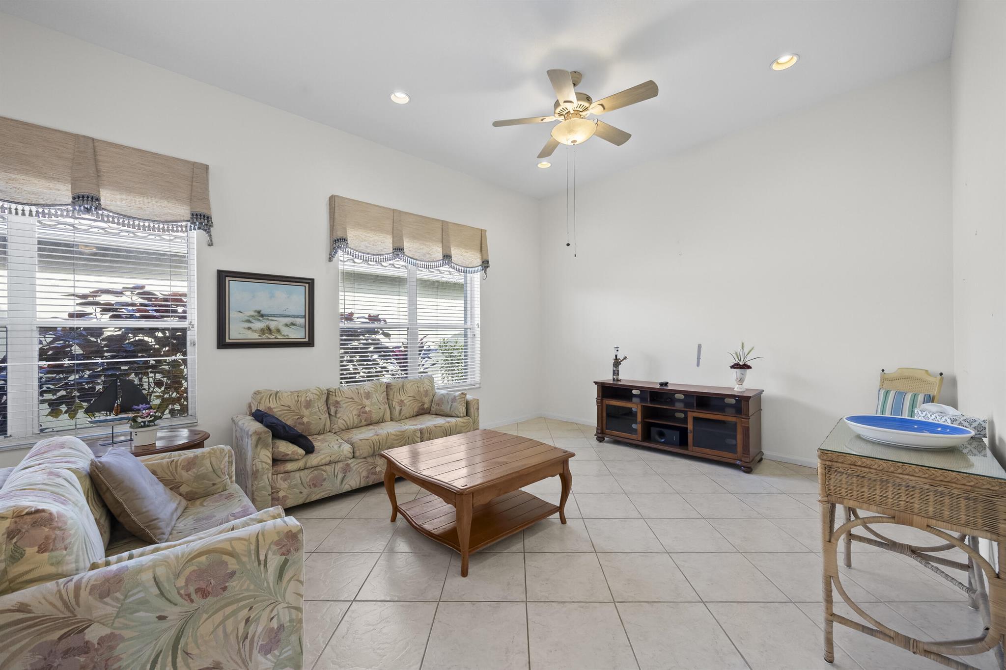 Beautiful 3-bedroom home PLUS DEN with 2 baths and a 2-car garage, a circular driveway on a corner lot. This home offers a comfortable and well-designed living space featuring formal living and dining rooms. Perfect for entertaining. High ceilings. Split bedroom plan offering you and your guest privacy. The kitchen features granite counters and ample storage. The primary suite boasts 2 walk-in closets, a luxurious soaking tub, separate walk-in shower for your relaxation, dual sinks. Accordion shutters for added storm protection. Enjoy the Florida lifestyle with a covered screened patio, ideal for al fresco dining or simply relaxing!