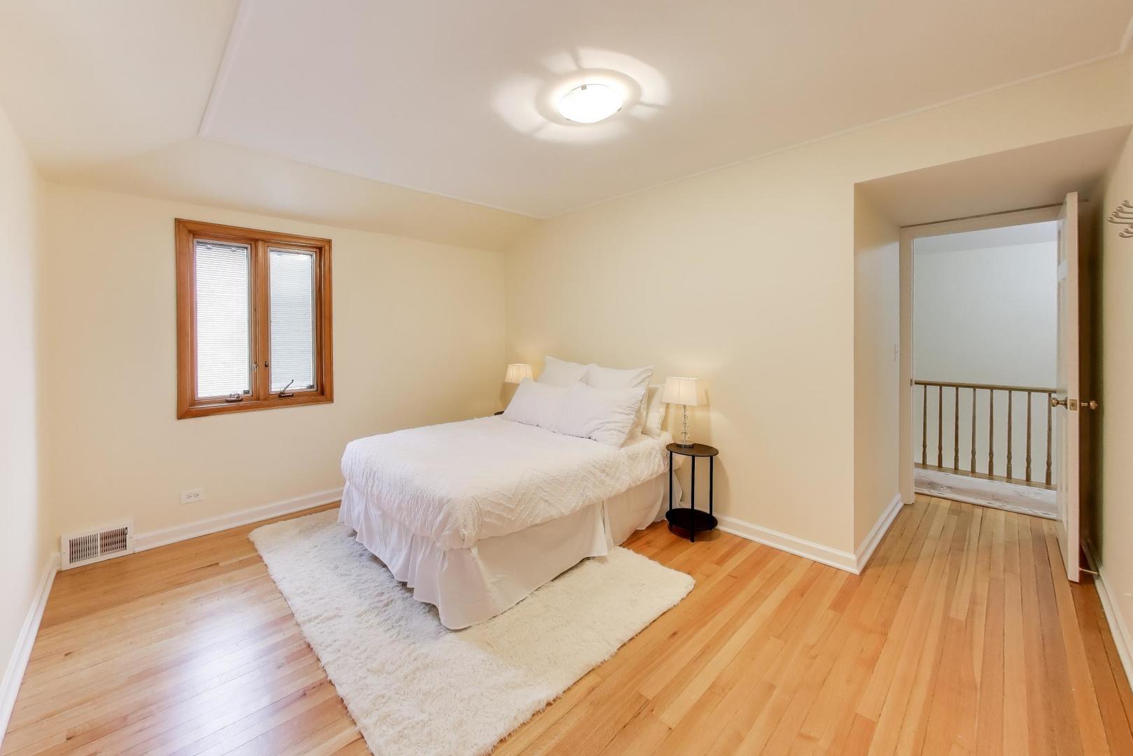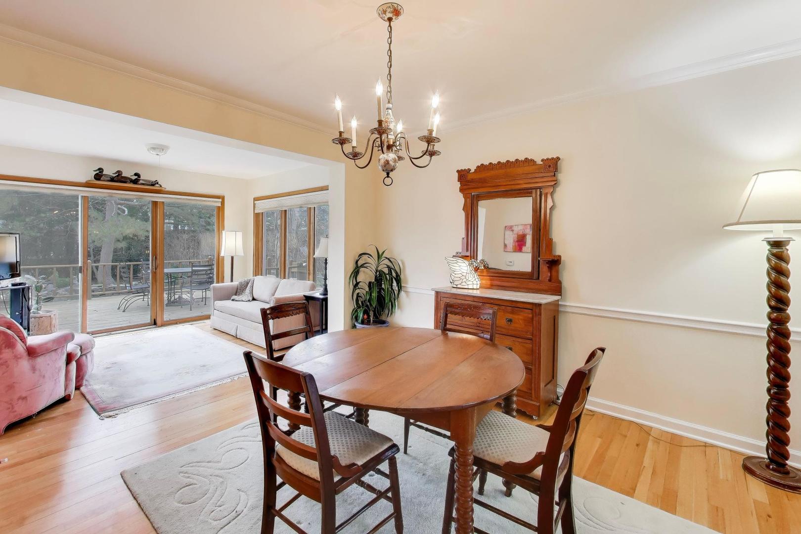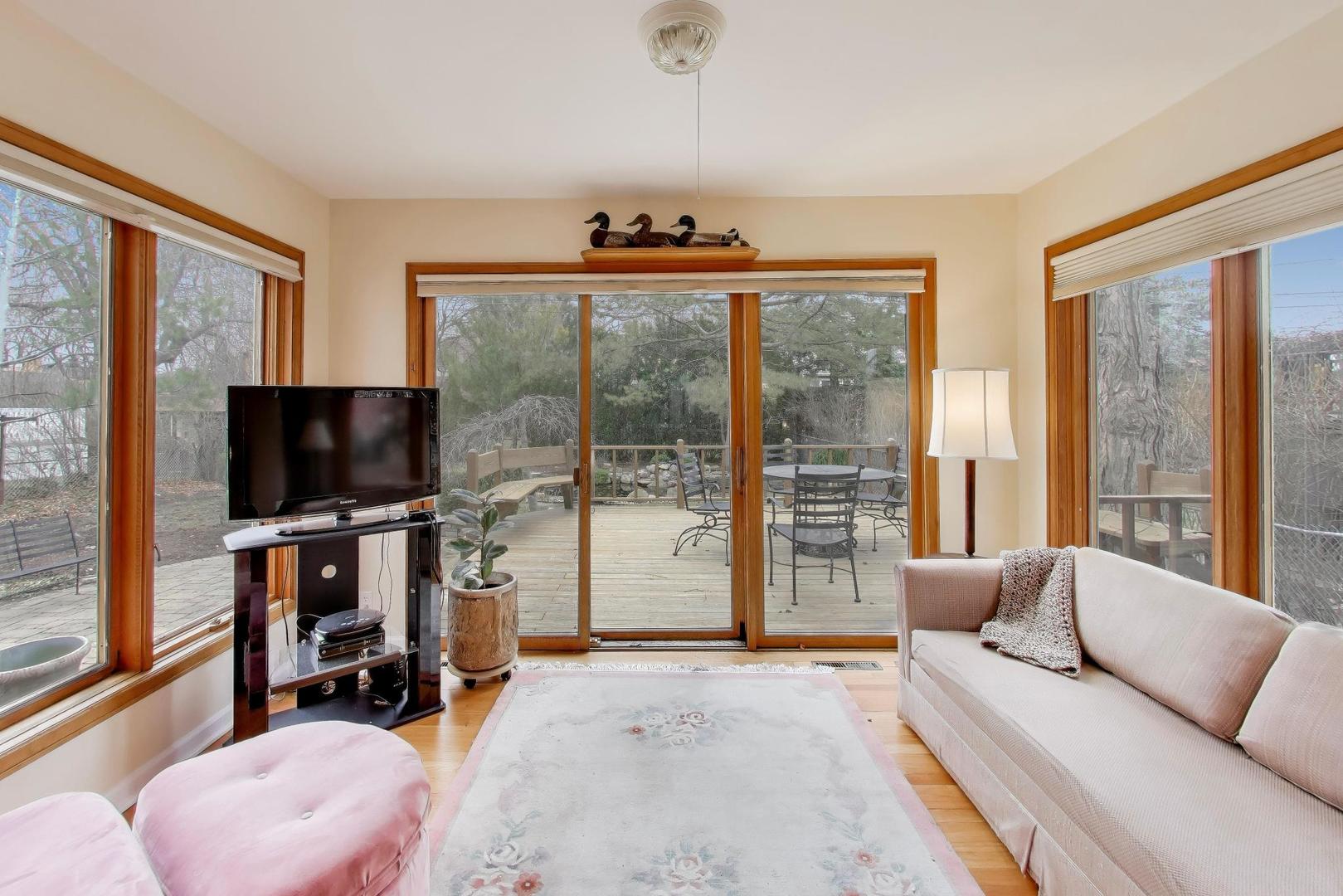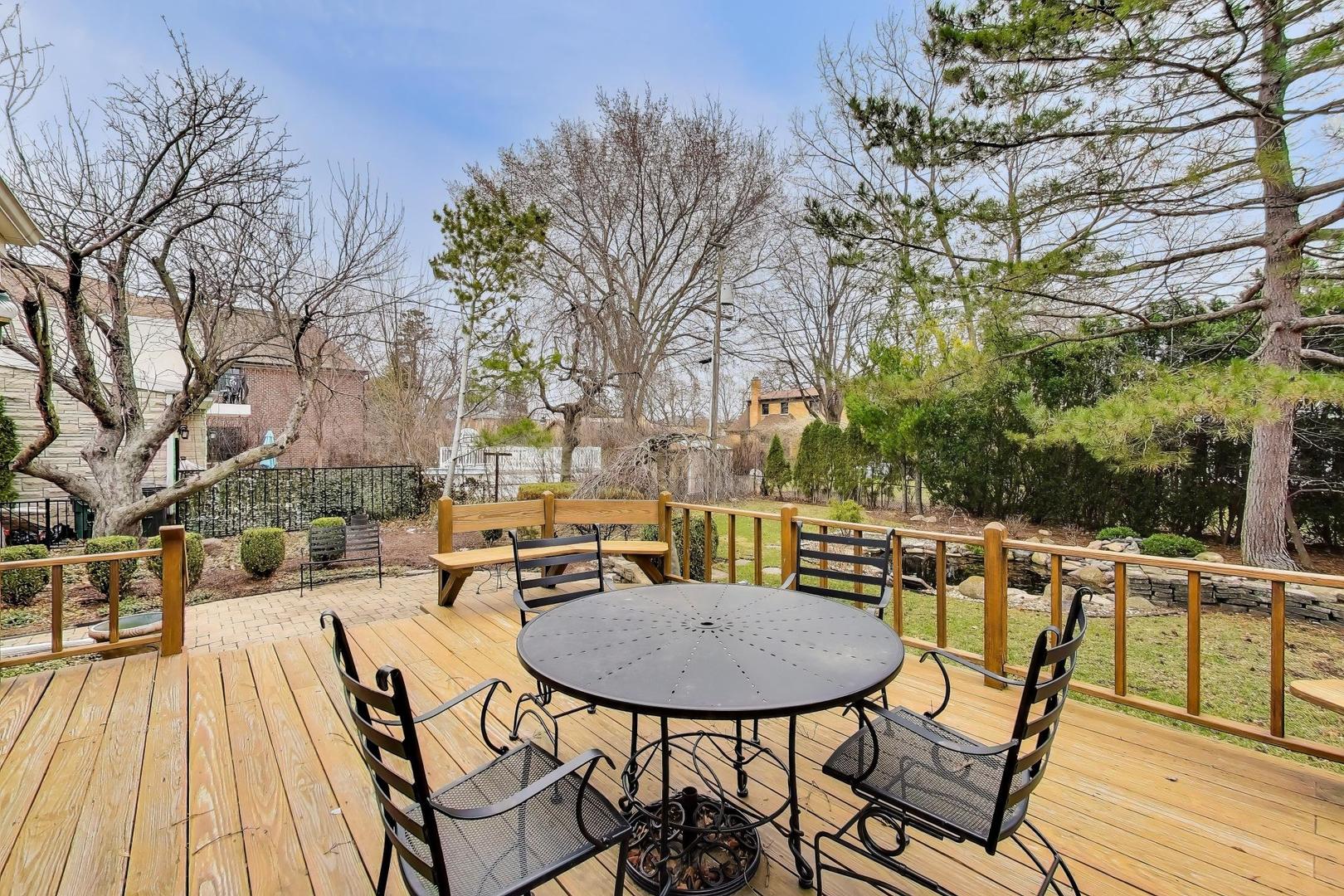 Welcome home to this charming, well-designed 3-bedroom, 1.5-bathroom, all-brick home with an attached one-car garage and a fantastic, functional floor plan and hardwood floors throughout. The main level offers a bright and inviting layout featuring an open kitchen and seamless flow between the living room, dining room, and family room, creating the perfect space for everyday living and entertaining, with plenty of room for a home-office setup and Hunter Douglas window treatments throughout the first floor. The stunning family room is surrounded by floor-to-ceiling windows on 3 sides, filling the space with natural light and providing beautiful views of the backyard. Step directly outside to your private outdoor oasis featuring an enormous, finished deck, a spacious yard, and a tranquil pond with a waterfall feature, and firepit- perfect for relaxing or hosting gatherings. A convenient main floor powder room makes entertaining easy. Upstairs, you'll find three spacious bedrooms and a full bathroom, including a comfortable primary bedroom with two separate closets for ample storage. All bedrooms are sizable! The full basement features a large, open recreation area along with an equally generous utility room offering extensive storage space. This meticulously maintained home includes major updates such as a roof less than 12 years old, furnace 2018, AC 2019, and water heater 2014 that are both newer. Located in a wonderful school district serving Todd Hall, Rutledge Hall, and Niles West High School, and conveniently close to I-94, this home sits on one of the most beautiful blocks in Lincolnwood.