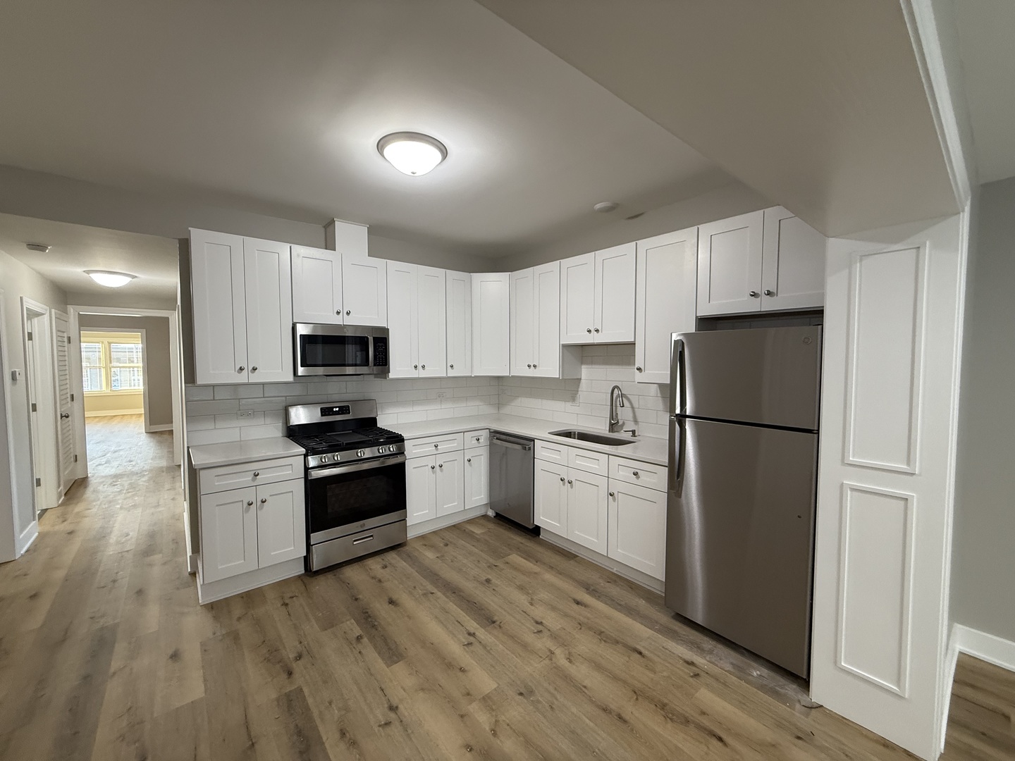 Renovated top to bottom, 3 bedroom apartment on Cermak Rd! New kitchen with SS appliances, white cabinetry, granite counter-top and white tile backsplash! Tiled bathroom with walk-in glass shower. New flooring, windows and light fixtures throughout. Central HVAC! Large open floor plan with immaculate Old English style fireplace in living room brings in a modern comfort to this rarely available sunny apartment in Berwyn! Come and see today!