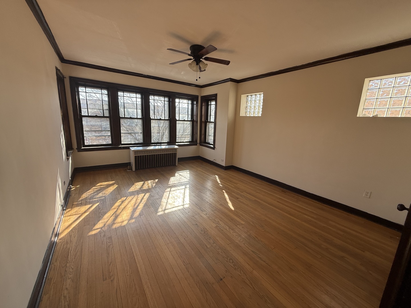 Spacious unit with full size windows and tons of sunlight. Separate dining room and hardwood floors throughout. Heat included. Cats OK. Street parking. Laundry in building!
