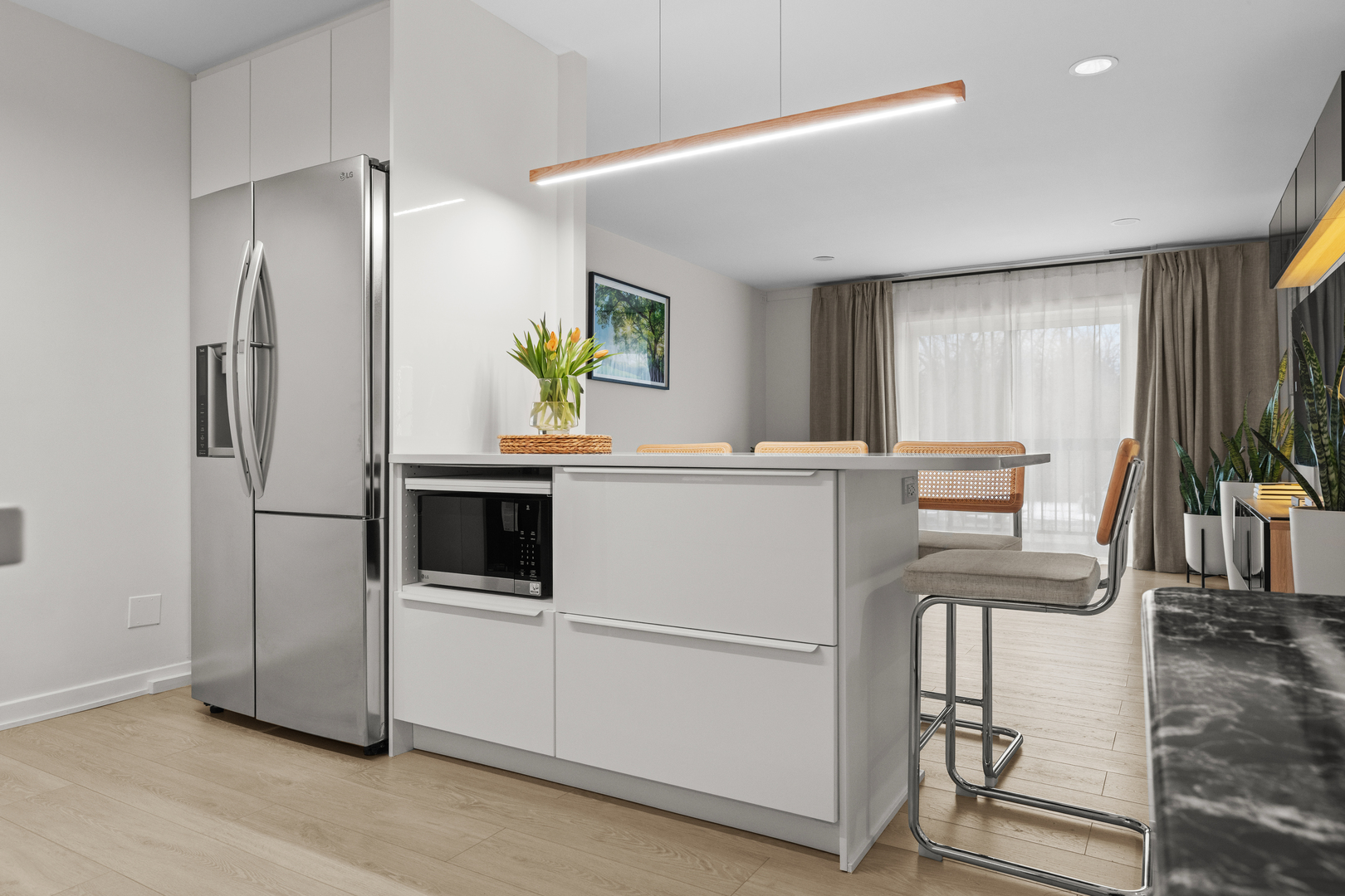 Fully Renovated 2BR + Office Condo with Heated Garage, Outdoor Pool, Exercise Room, and Steps from Forest Preserve Trails! Step inside to brand-new luxury flooring, a new HVAC system, updated electrical and plumbing, and a fully redesigned kitchen and spa-inspired bathroom. The bathroom features heated floors, a double vanity, and a sleek walk-in shower, while the modern chef's kitchen includes custom cabinetry, elegant countertops, and brand-new appliances, flowing seamlessly into the bright and open living area - perfect for entertaining or relaxing at home. Both bedrooms offer floor-to-ceiling closets, and the dedicated office space is ideal for remote work, a creative studio, or reading lounge. Additional conveniences include a separate laundry room, heated garage parking, outdoor parking, private storage, and access to building amenities including an outdoor pool and exercise room. Step outside to the Arie Crown Forest Preserve, just steps from your door, with over 3 miles of scenic unpaved trails perfect for hiking, biking, cross-country skiing, plus picnic groves and tranquil walking paths. Enjoy the perfect balance of nature, recreation, and convenience, with shopping, dining, and highways nearby. This is a rare opportunity to own a home that perfectly blends luxury, functionality, and natural beauty.