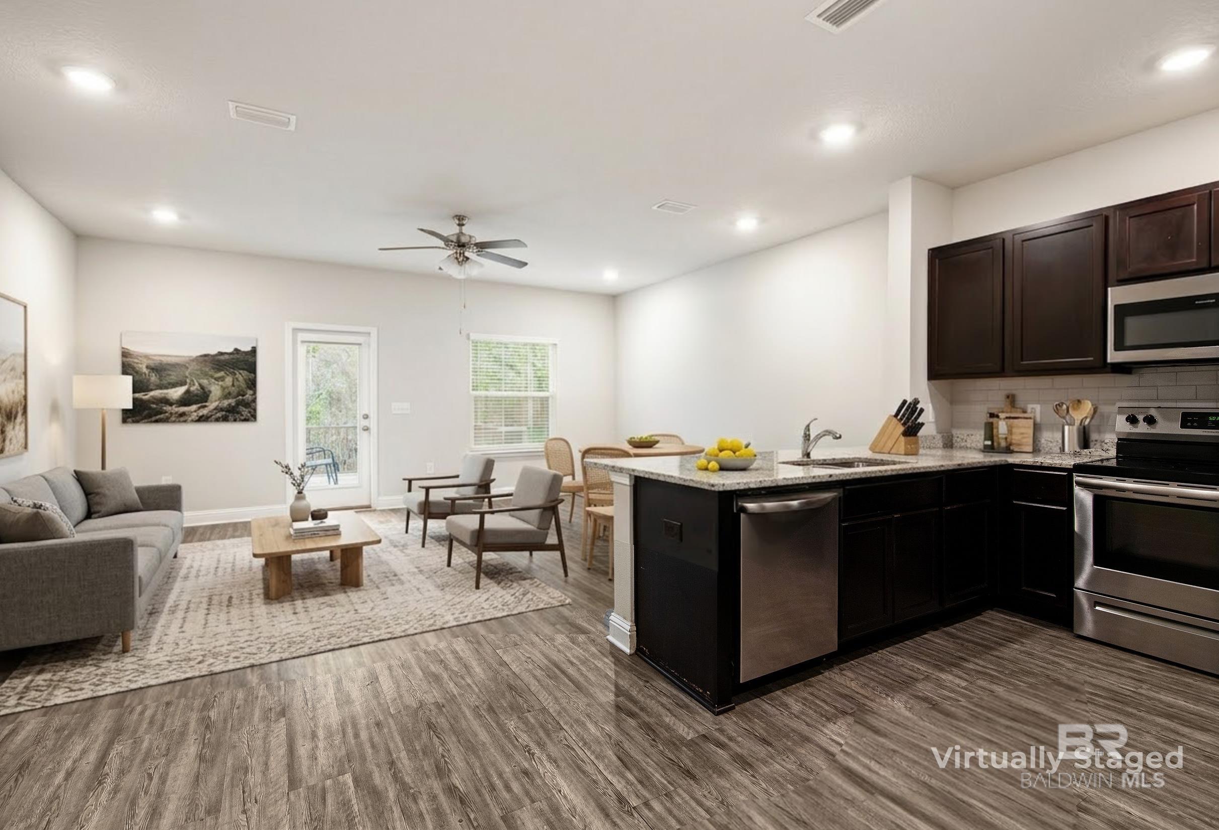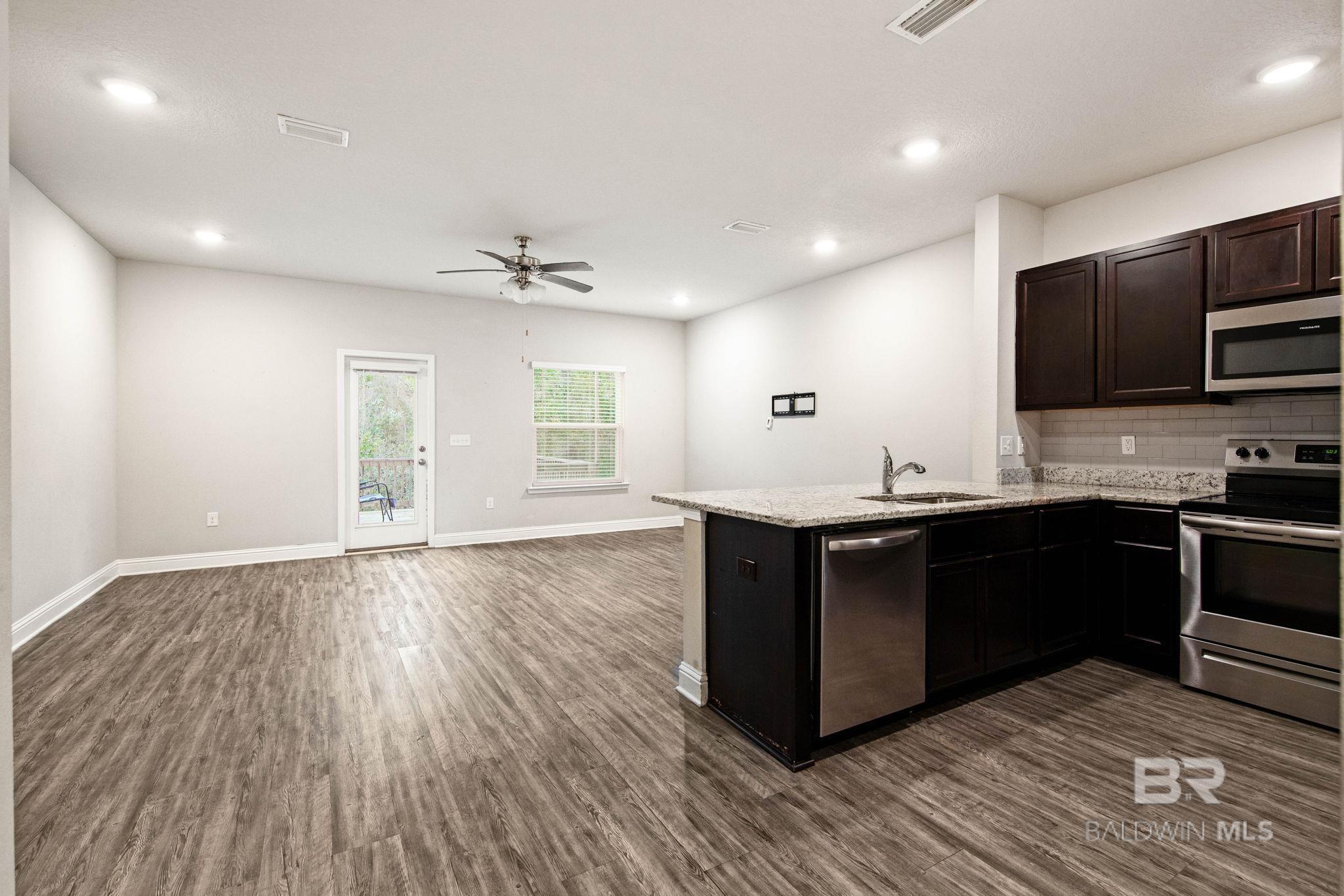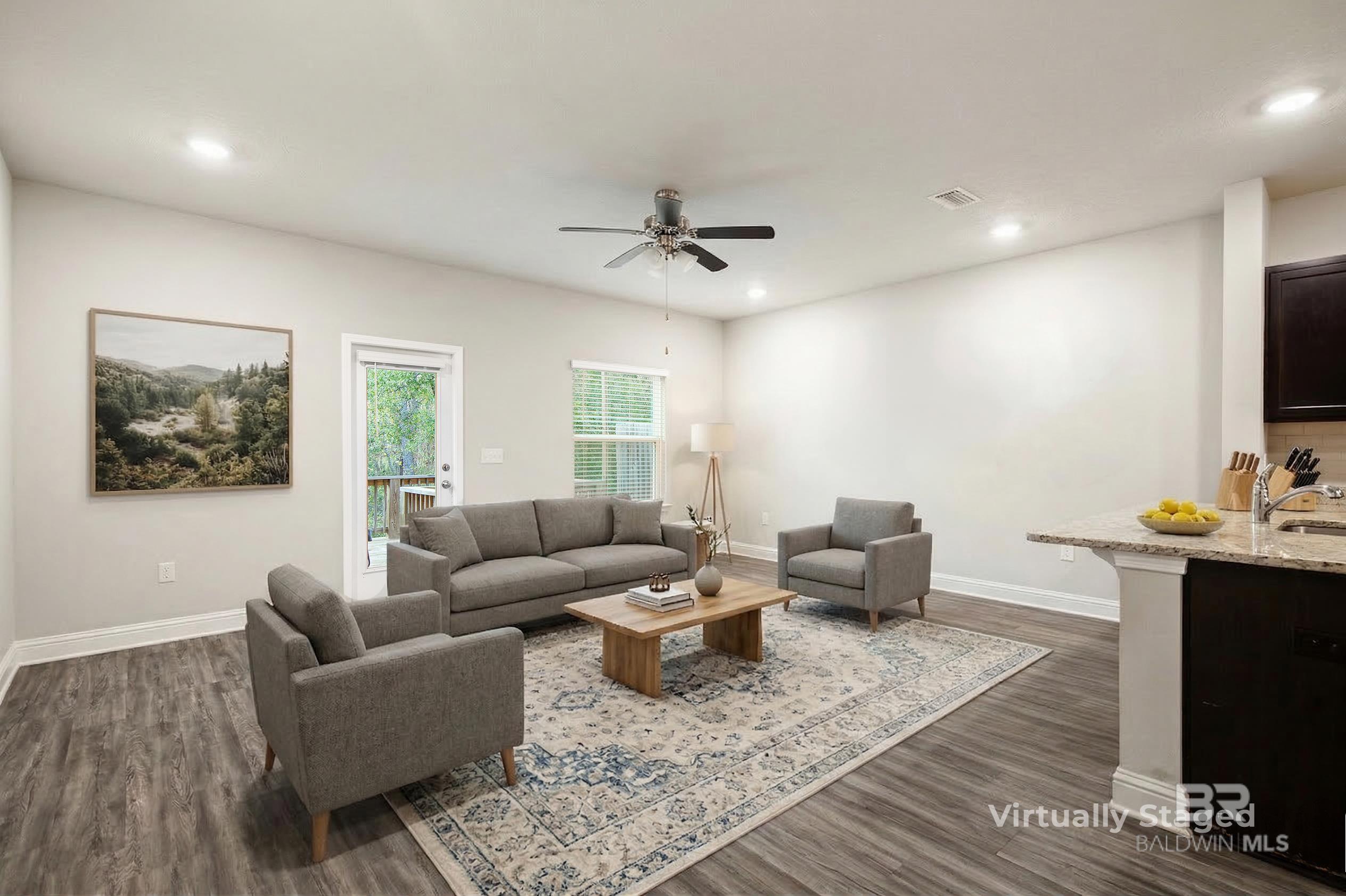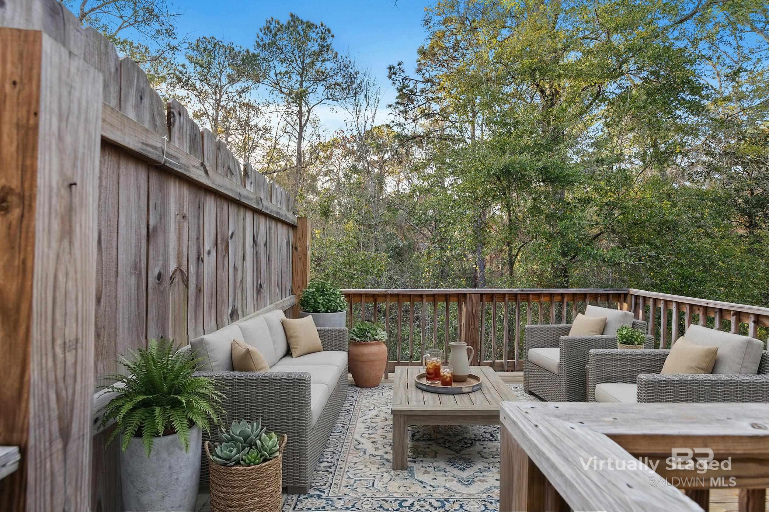 Location, Location, Location..This Low Maintenance & Turn Key Gold Fortified Townhome backs up to woods for privacy and is located less than 15 minutes to Mobile, 4 minutes to 1-10, conveniently located to boat launches, Blakely State Park, Restaurants, Shopping, Grocery Stores, etc. Energy Efficient 3 Bedroom, 2.5 Bathroom townhome with 9 ft ceilings, an open floor plan and private garage. The Kitchen Features Granite Countertops, new garbage disposal March '26, custom backsplash & Stainless Steel Appliances. Luxury Vinyl Plank flooring downstairs with BRAND NEW Carpet (March ;26)! Blinds on windows, plus Washer/Dryer and Kitchen Fridge Convey. The HOA Includes: Pool, Community Bathrooms/Pavilion, landscaping, termite contract, Insurance on the outside of the building minus windows and doors, property management, etc. Schedule your showing today. Buyer to verify all information during due diligence.