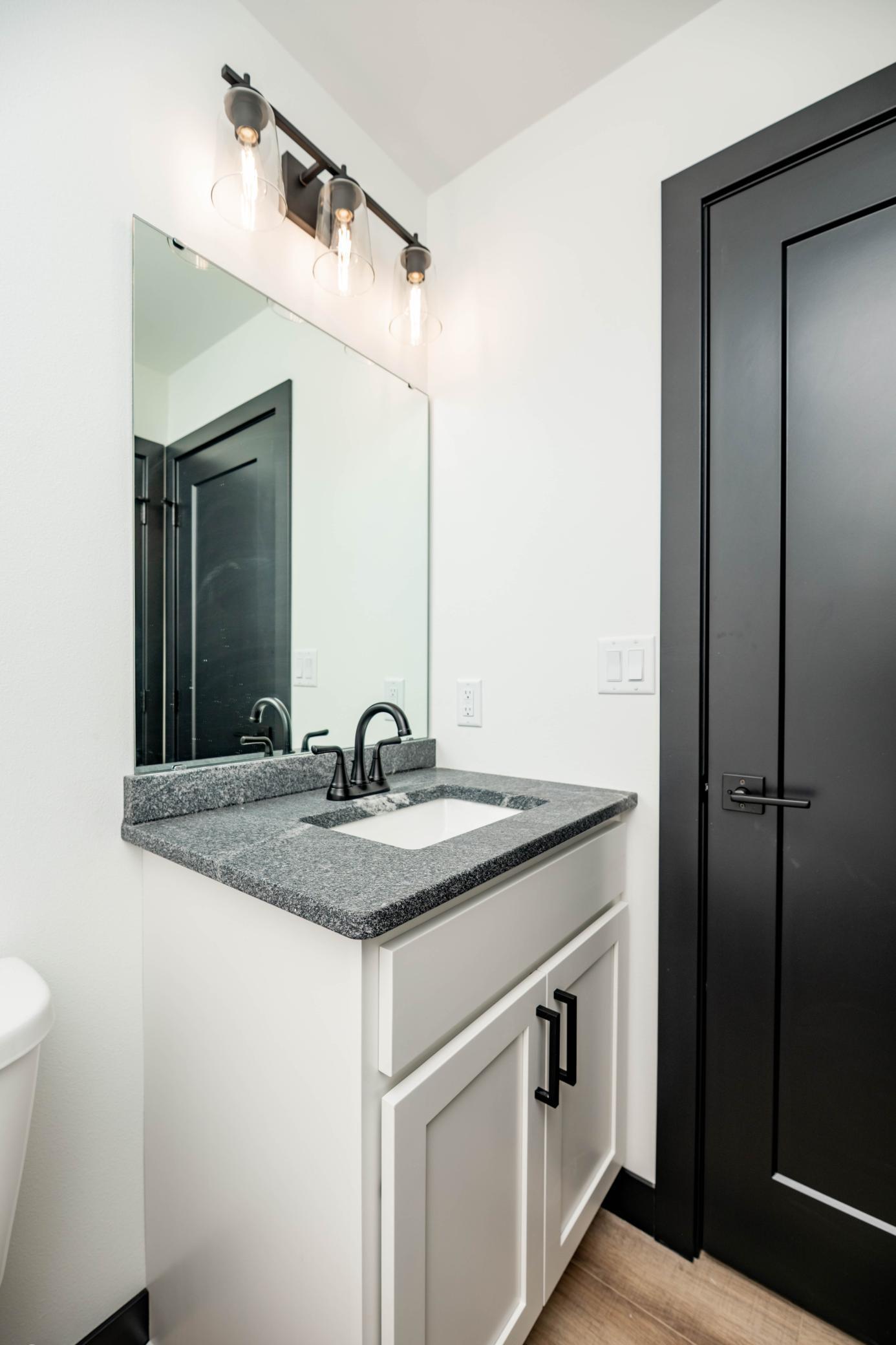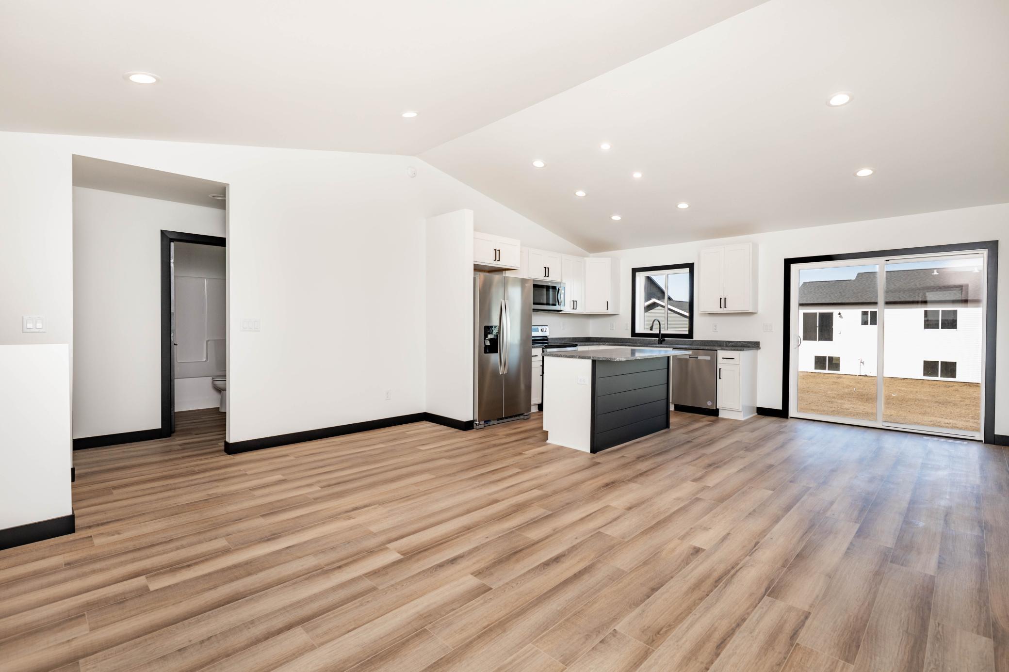 Completed new construction, qualifies for tax abatement. This stunning 4 bedroom 2 bathroom home will charm you! The upper level boasts luxury vinyl plank flooring, open concept living spaces, sleek white kitchen with quartz countertops, two bedrooms, vaulted ceilings, and a full bathroom. You'll find two additional bedrooms, full bathroom, family room, and a laundry/utility room in the lower level. Conveniently, the garage is finished, includes a floor drain. You are going to love all this home has to offer! Owner/Agent
