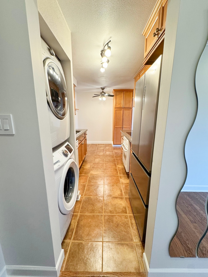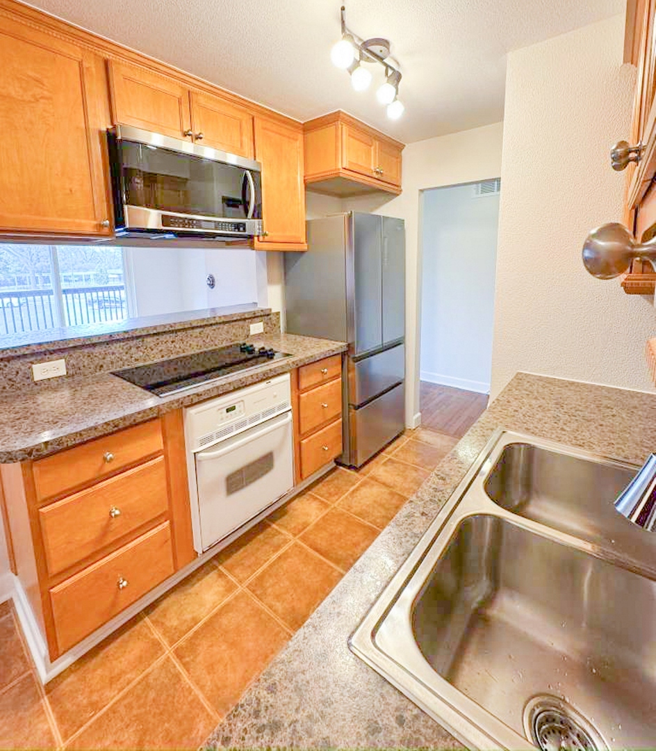 Move-in ready and sparkling clean 2-bedroom, 2-full-bath condo in the desirable 12 Oaks elevator building! This spacious 2nd-floor corner unit offers a bright, open layout with abundant lighting and a private balcony perfect for enjoying afternoon sun and evening sunsets. The large living and dining area features beautiful hardwood/laminate flooring and flows seamlessly into the nicely updated kitchen with generous counter space. Both bedrooms are generously sized. Freshly painted in modern, neutral tones. Enjoy the convenience of an in-unit washer and dryer, central A/C, and plenty of storage, including an extra storage locker. Assessment includes hot and cold water and two parking spaces plus ample guest parking. The well-maintained complex offers resort-style amenities, including an outdoor pool (getting ready for spring!) and fitness center. Prime location just minutes from I-90 & I-290, O'Hare Airport, Woodfield Mall, Busse Woods, shopping, dining, and more. Excellent opportunity in a quiet, well-kept community with easy access to everything! Available ASAP.