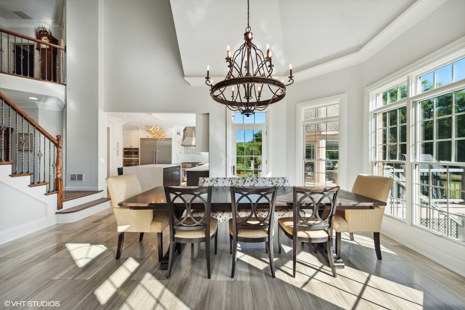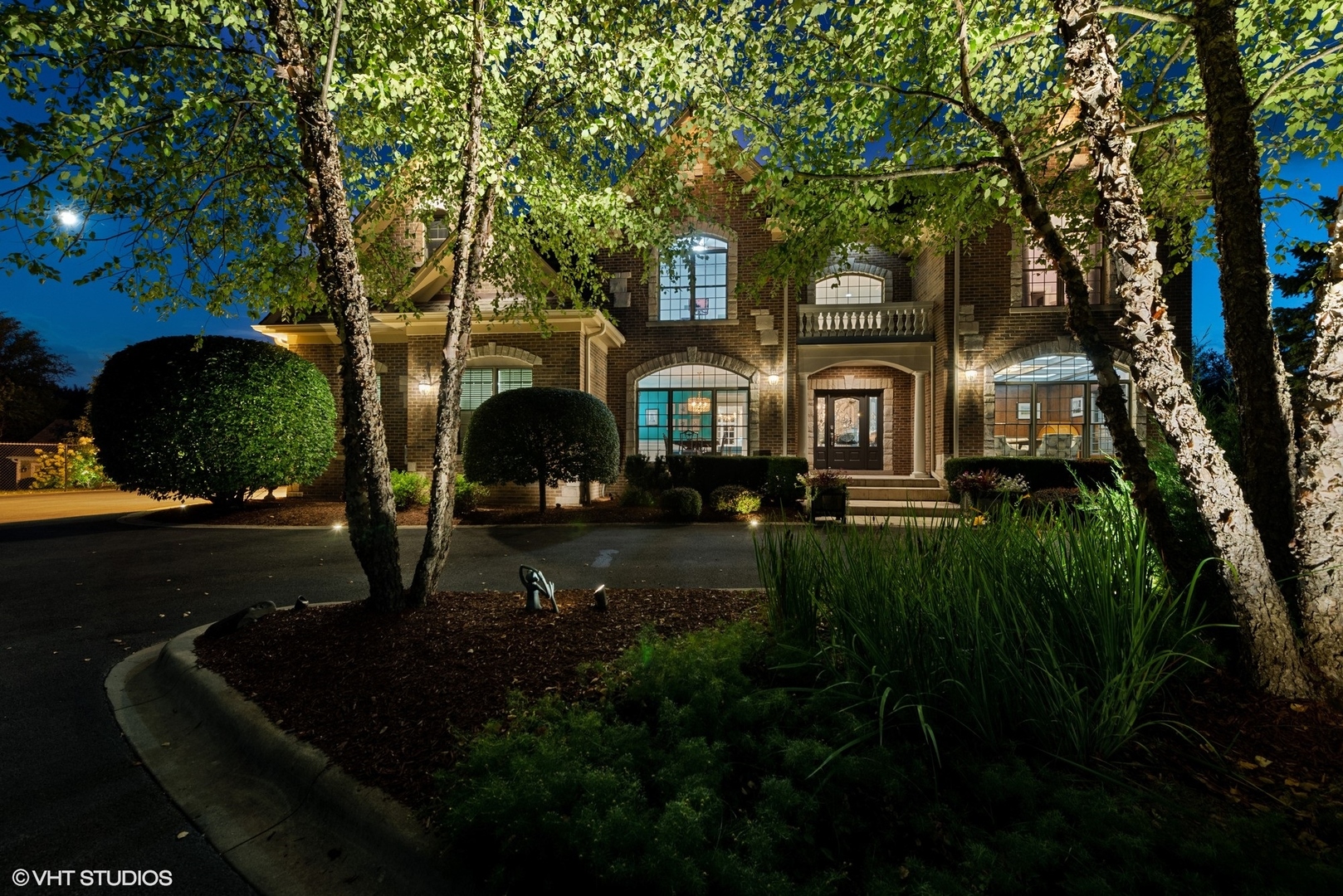Discover this stunning all-brick, 5-bedroom, 4.5-bathroom home that has been transformed with high-end modern updates, seamlessly blending timeless elegance with contemporary design. Every detail has been thoughtfully curated, resulting in a truly exquisite residence. As you arrive via the gated driveway, you'll be welcomed by a professionally landscaped 3+ acre property illuminated by over 100 strategically placed lights that create a magical ambiance at night. The driveway, bordered by brick pavers and replaced in 2020, perfectly complements the home's stately exterior. Step inside to a grand foyer where gorgeous dark walnut hardwood floors lead to a striking central staircase. The office/den radiates sophistication, with custom wall paneling, a coffered ceiling enhanced by LED accents, a herringbone-patterned stone floor, and an expansive nearly floor-to-ceiling window. The formal dining room is equally impressive, featuring elegant wainscoting, designer sconces, and a chandelier, making it ideal for hosting memorable gatherings.At the heart of the home lies the chef's kitchen, a masterpiece of form and function. It boasts custom soft-close cabinetry with integrated lighting, sleek quartz countertops and backsplash, Thermador stainless steel appliances, and an oversized island with waterfall edges crowned by a stunning Terzani Argent light fixture. The adjacent breakfast nook, framed by bay windows, offers serene views of the deck, gazebo, pool, patio, and charming English garden. The family room is an inviting retreat with a stunning stone fireplace and a beautifully updated bar area, complete with two beverage refrigerators, an ice maker, a sink, and a chic powder room-perfect for entertaining. Upstairs, the luxurious primary suite is a true sanctuary. The bedroom features a custom plaster oval dome with in-ceiling LED lighting, a see-through gas fireplace, and glass french doors leading to a private sitting room or office. The spa-inspired primary bathroom is a retreat in itself, with heated marble floors, dual vanities with illuminated mirrors, a two-person shower with mosaic tile accents, and a soaking tub beside the fireplace-perfect for unwinding. The showers are equipped with a digital control panel, allowing personalized settings for each user. The additional bedrooms are also impressive. Bedroom 2 includes a fully renovated ensuite bath with walk-in shower, while Bedrooms 3 and 4 share a Jack-and-Jill bathroom with separate vanities for added privacy and convenience. The walkout basement is an entertainer's dream, offering expansive living space with tile flooring and roughed-in plumbing for a second kitchen or bar area. It features a marble fireplace, a fifth bedroom, and a fully updated bathroom with a luxurious steam shower. Film enthusiasts will love the soundproof theater room, complete with Art Deco-inspired paneling, custom lighting, integrated A/V cabinetry, and a floor-to-ceiling screen for the ultimate cinematic experience. The backyard is a private oasis, designed for unforgettable moments. Enjoy the in-ground heated pool with stamped concrete, a hot tub, a patio with a retractable sun cover, a fire pit, and gazebo-all perfect for entertaining or relaxing.Car enthusiasts will appreciate the 4-car attached garage and detached 2-car garage, providing ample storage for vehicles and recreational equipment. Nestled in the highly sought-after North Barrington community, this home is conveniently located near top-rated Barrington 220 schools, Metra transportation, shopping, fine dining, and more. This one-of-a-kind property is ready to welcome its next owners.