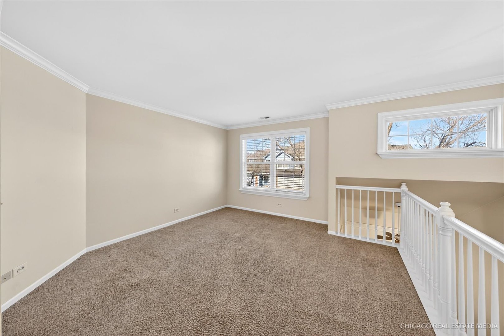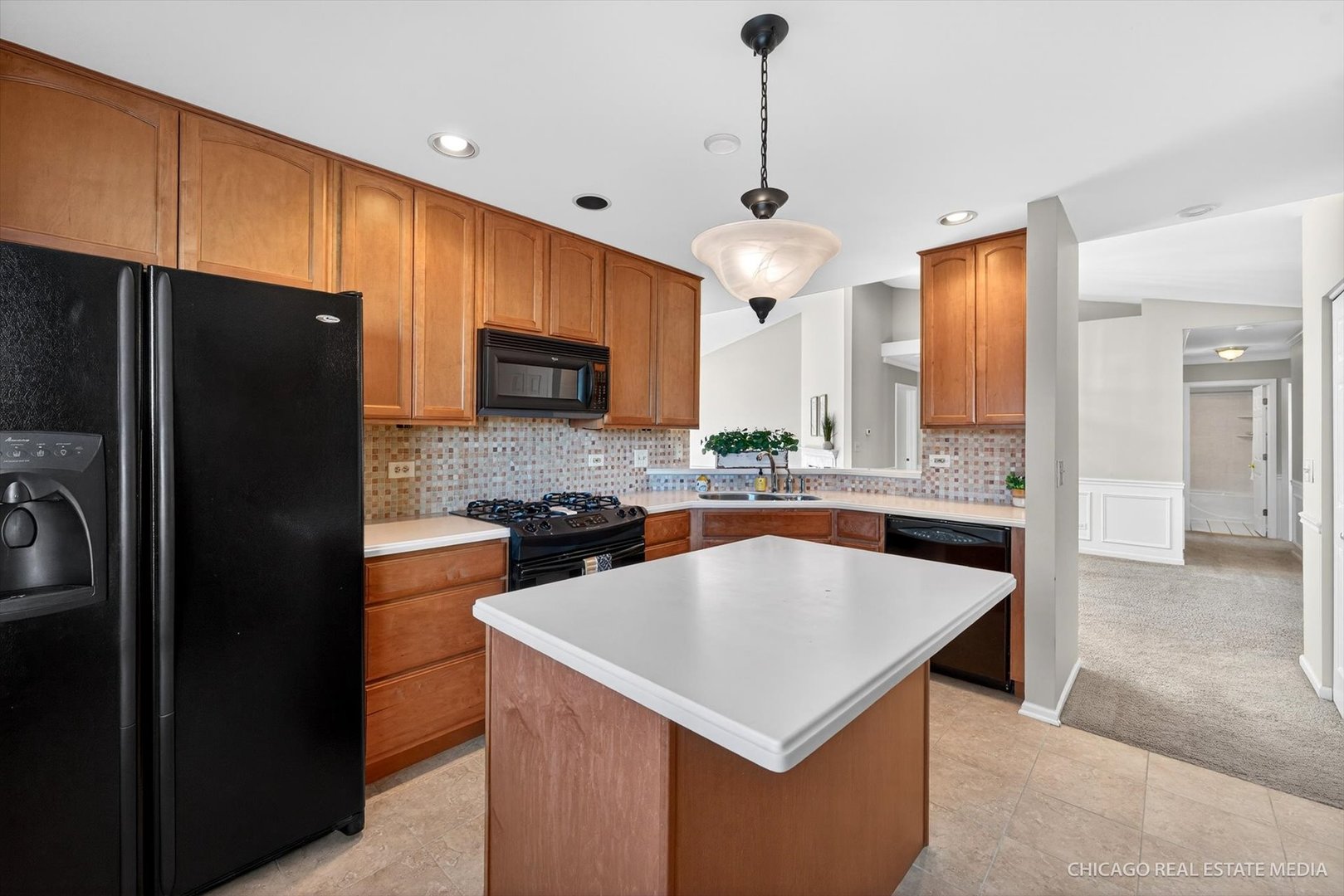 This spacious second-level ranch-style home is nestled in the highly desirable Coach Homes of Stonebrook, offering an ideal location close to shopping, dining, and a nearby golf course. Designed for both comfort and style, the home features a modern open-concept living room that seamlessly blends the living and dining areas-perfect for everyday living and entertaining. A neutral color palette flows throughout, complemented by white six-panel doors and trim, along with tasteful crown molding and wainscoting. The living room is a true highlight, showcasing vaulted ceilings, a sliding patio door that opens to a private balcony, and a marble-tiled gas fireplace that creates a warm and inviting focal point. The kitchen is both functional and stylish, featuring 42" maple cabinets, a convenient breakfast island, sleek appliances, a pantry closet, and ample Corian countertop space. Classic ceramic tile flooring and a coordinating backsplash complete the space, making it ideal for cooking, gathering, and entertaining. The primary suite offers a peaceful retreat with a generous walk-in closet and a private en-suite bathroom that includes a walk-in shower and linen closet. Both bathrooms continue the upscale feel with maple vanities, Corian countertops, and ceramic tile flooring and surrounds. A versatile loft provides flexible living space and can easily serve as a family room, home office, or be converted into a third bedroom. For added convenience, the laundry room-with washer and dryer included-is located near the bedrooms. This move-in-ready home offers a quick close and is well maintained. Don't miss the opportunity to own a beautiful home in a welcoming community.