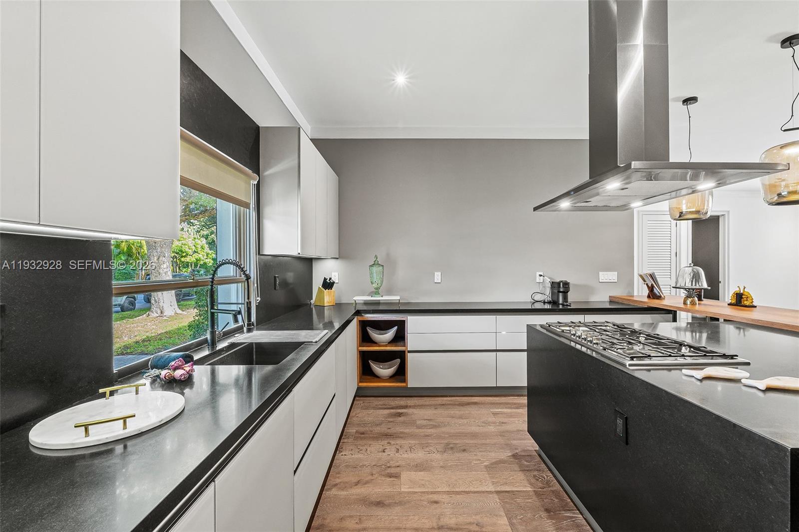 Live well in the highly coveted Bay Point, one of Miamis most exclusive and private gated communities. This spectacularly renovated residence offers 5 bedrooms, 5.5 bathrooms, and a dedicated office, featuring wood floors, soaring ceilings, and a modern open-concept layout. The home includes formal living and dining rooms, along with a spacious family room ideal for everyday living and entertaining. The primary suite is a true retreat, complete with a private office, sliding doors opening to the backyard garden, and a spa-like bathroom finished in elegant white marble. The modern Italian kitchen showcases stainless steel appliances and a dramatic oversized center island, seamlessly connecting to the main living areas. Ideally located, Bay Point provides easy access to the Design District, Miami Beach, Midtown, and Downtown Miami.