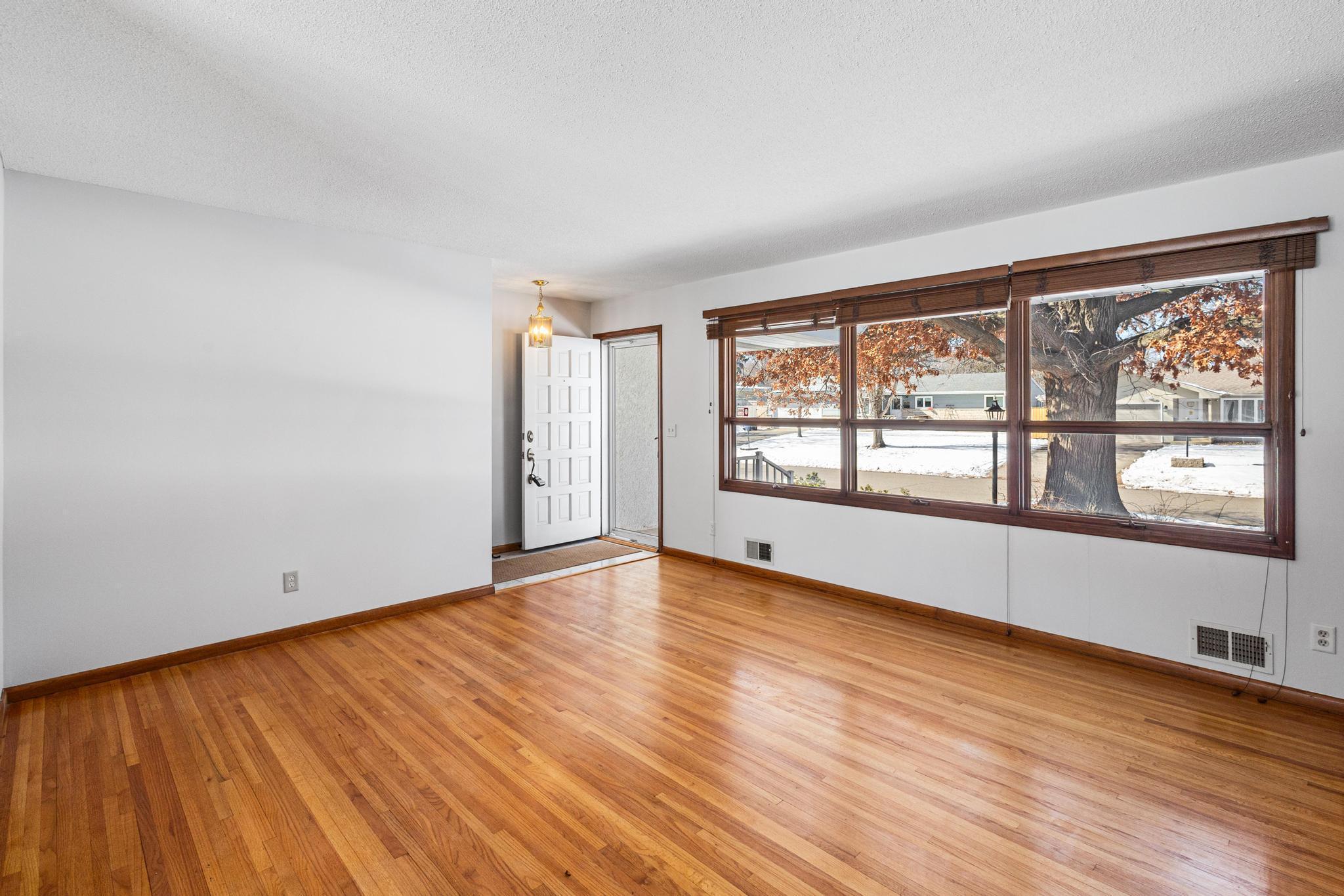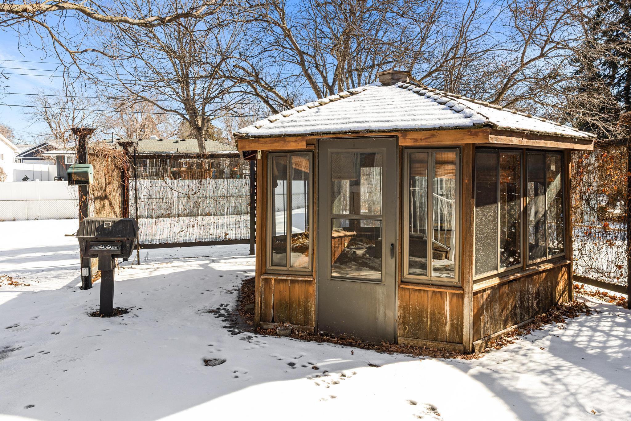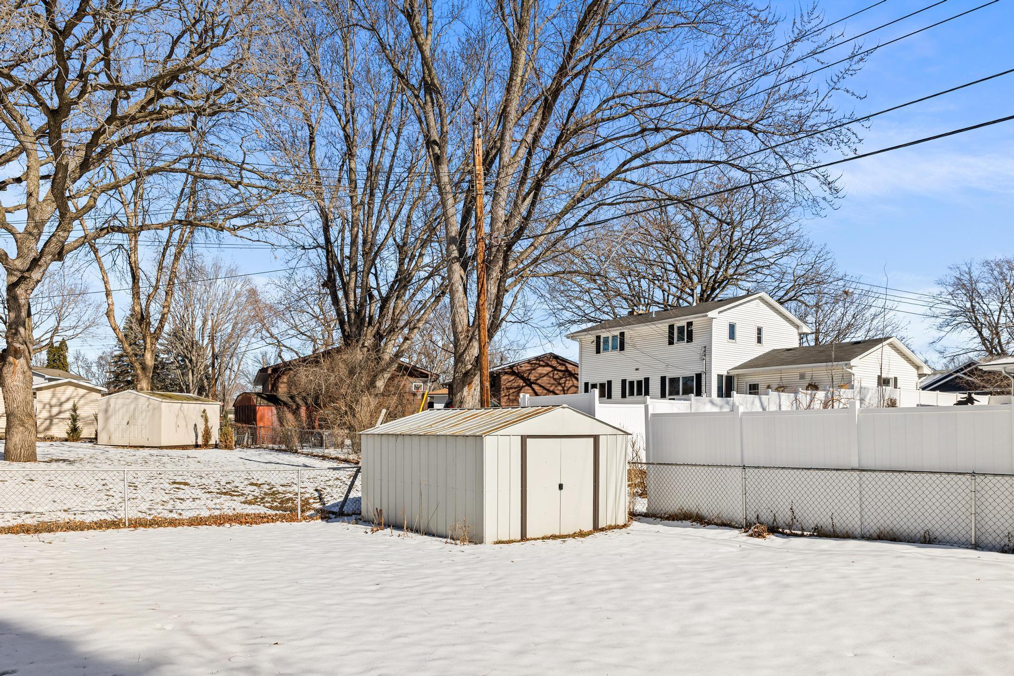 Welcome home to this move-in ready 3-bedroom, 3-bath home that has been in the family for over 50 years. 3 bedroom and 2 baths, and a spacious Sunroom all on the main level. Primary bedroom includes a fully refinished 1/2 bath. The Sunroom situated off the kitchen and overlooks the fenced back yard and gazebo. Fresh paint on the entire main level ceiling/ walls. Tile floor in kitchen and main bath. Basement includes a family room with wood burning stove, flex room with new carpet (easily converted to a 4th bedroom), 3/4 bath, unfinished storage room, and utility room with washing machine and dryer. All appliances and water filtration system stay with an option to include remaining couch set and table set as seen during showings. Back yard is fully fenced with plenty of room for gardening, pets, or entertaining and includes the gazebo and storage shed. The garage floor is nicely finished with an epoxy floor. Architectural style shingles are only 10 years old. Conveniently located just minutes from shops, restaurants, schools, HWYS 694/94, and Locke County Park and Rice Creek West Regional Trail with miles trails.