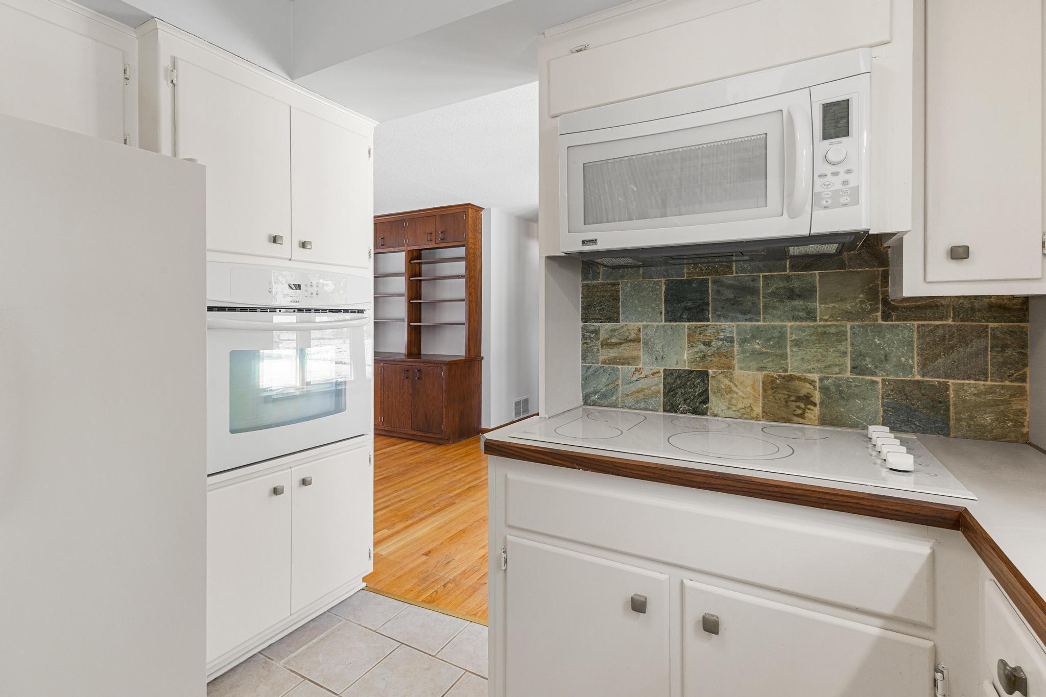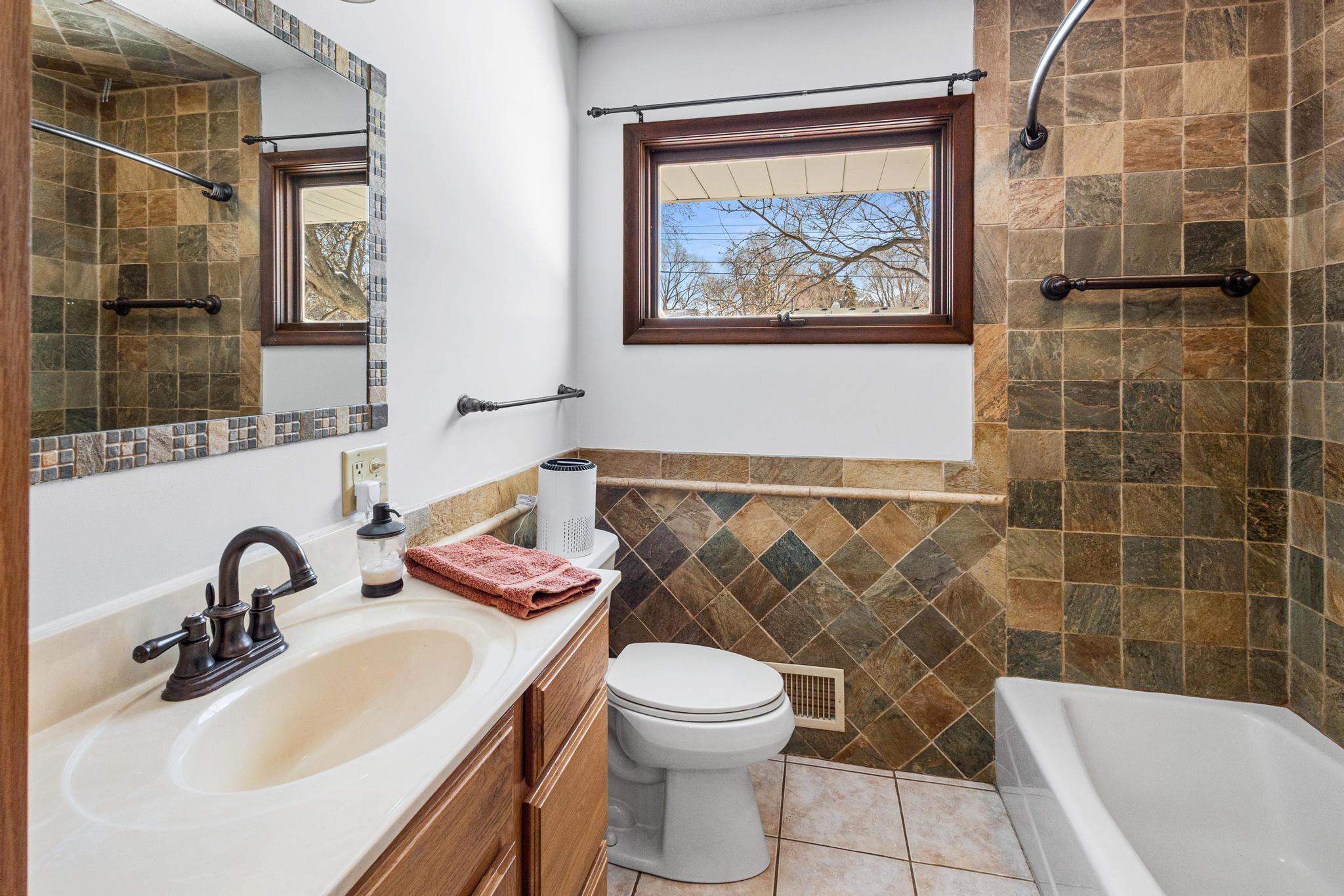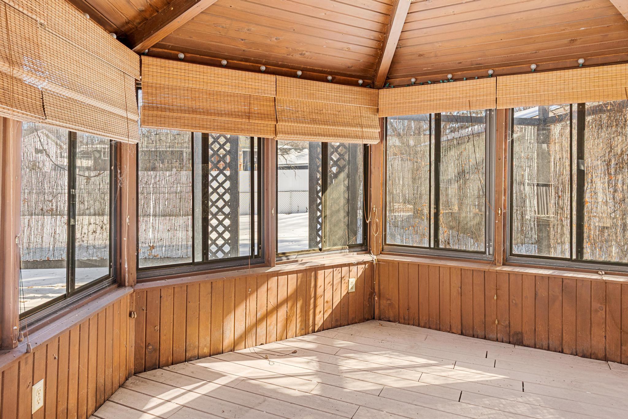 Welcome home to this move-in ready 3-bedroom, 3-bath home that has been in the family for over 50 years. 3 bedroom and 2 baths, and a spacious Sunroom all on the main level. Primary bedroom includes a fully refinished 1/2 bath. The Sunroom situated off the kitchen and overlooks the fenced back yard and gazebo. Fresh paint on the entire main level ceiling/ walls. Tile floor in kitchen and main bath. Basement includes a family room with wood burning stove, flex room with new carpet (easily converted to a 4th bedroom), 3/4 bath, unfinished storage room, and utility room with washing machine and dryer. All appliances and water filtration system stay with an option to include remaining couch set and table set as seen during showings. Back yard is fully fenced with plenty of room for gardening, pets, or entertaining and includes the gazebo and storage shed. The garage floor is nicely finished with an epoxy floor. Architectural style shingles are only 10 years old. Conveniently located just minutes from shops, restaurants, schools, HWYS 694/94, and Locke County Park and Rice Creek West Regional Trail with miles trails.