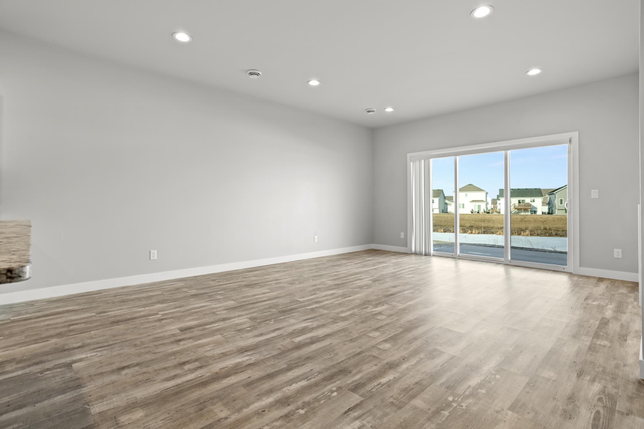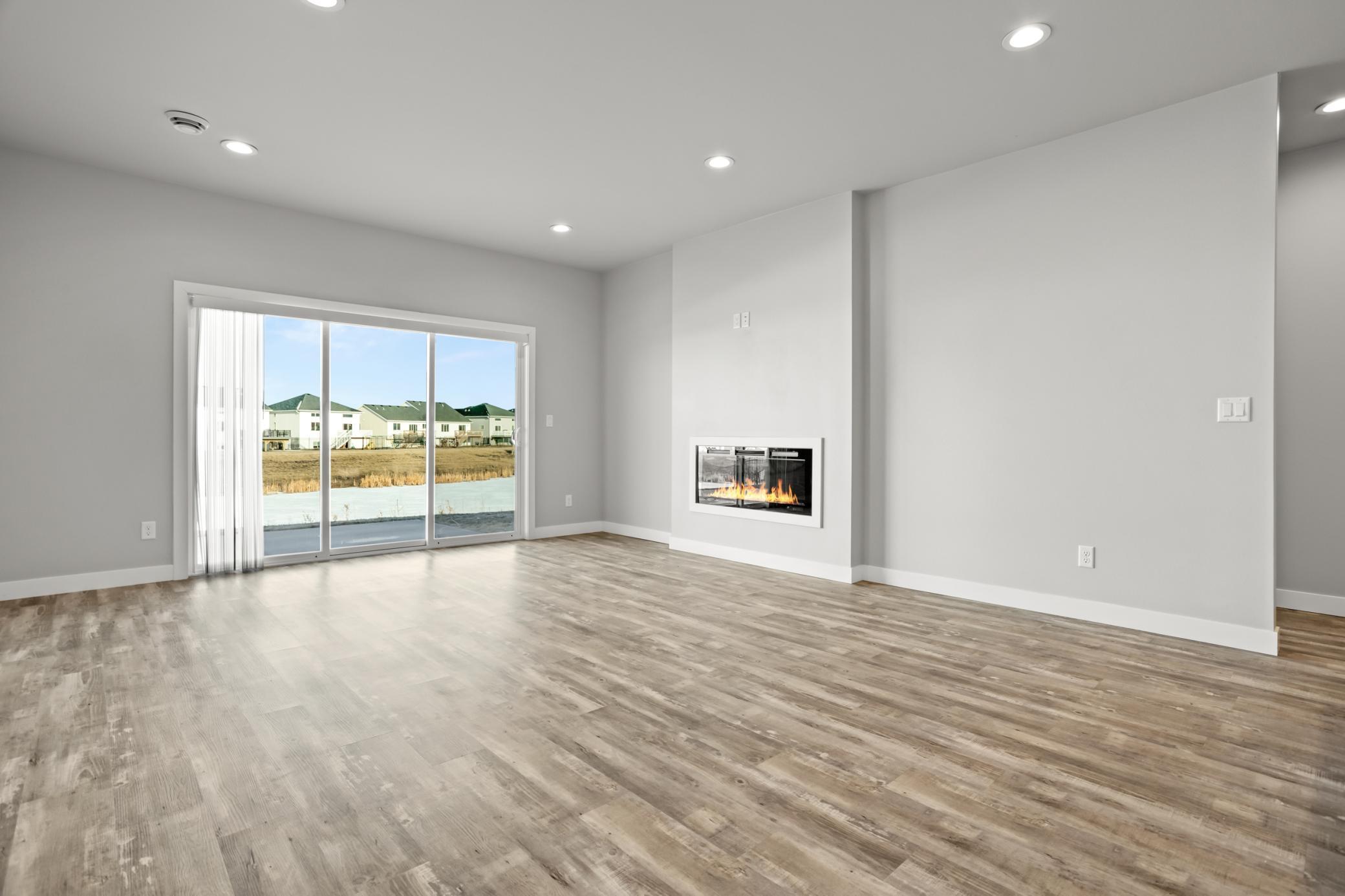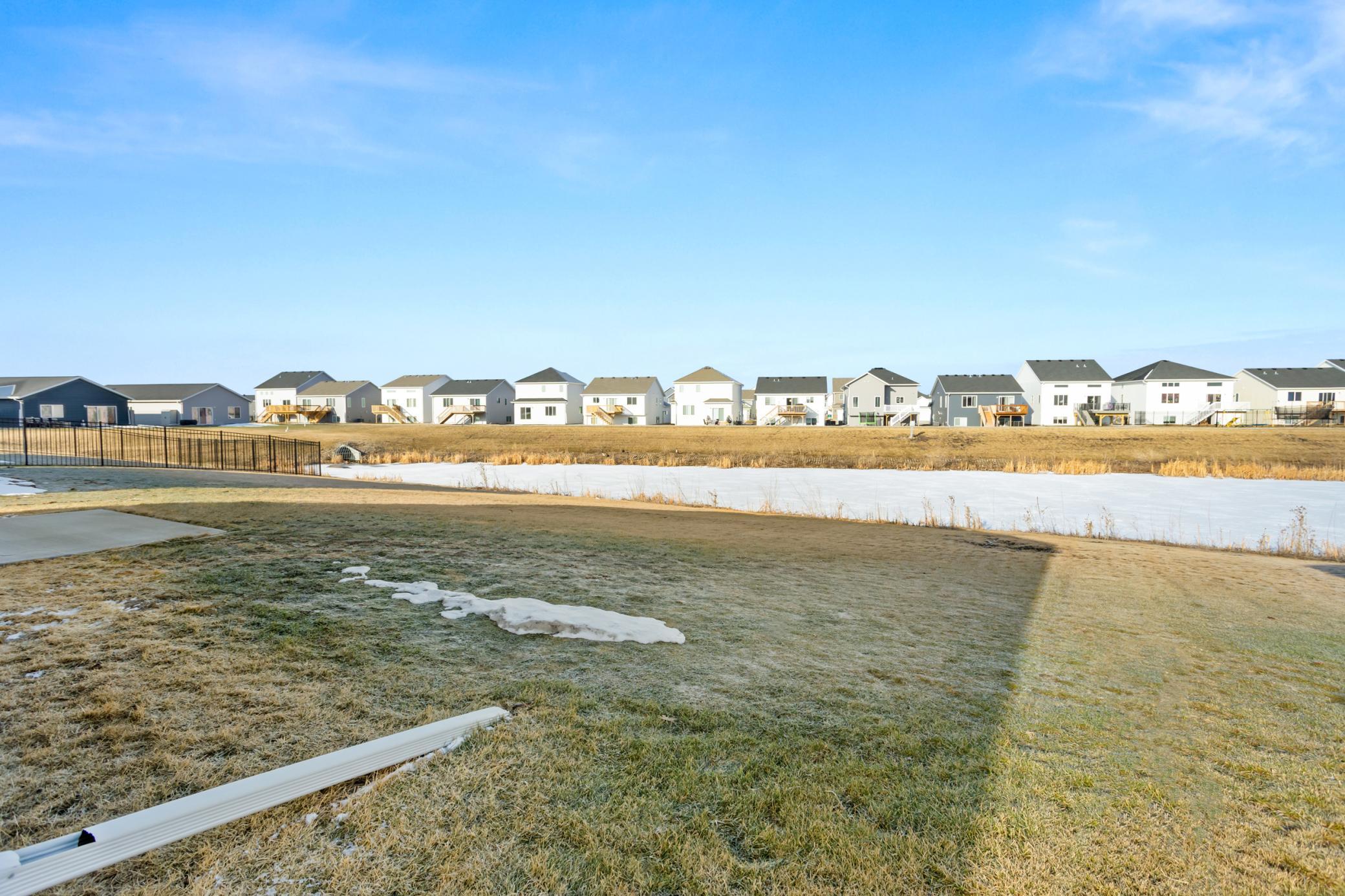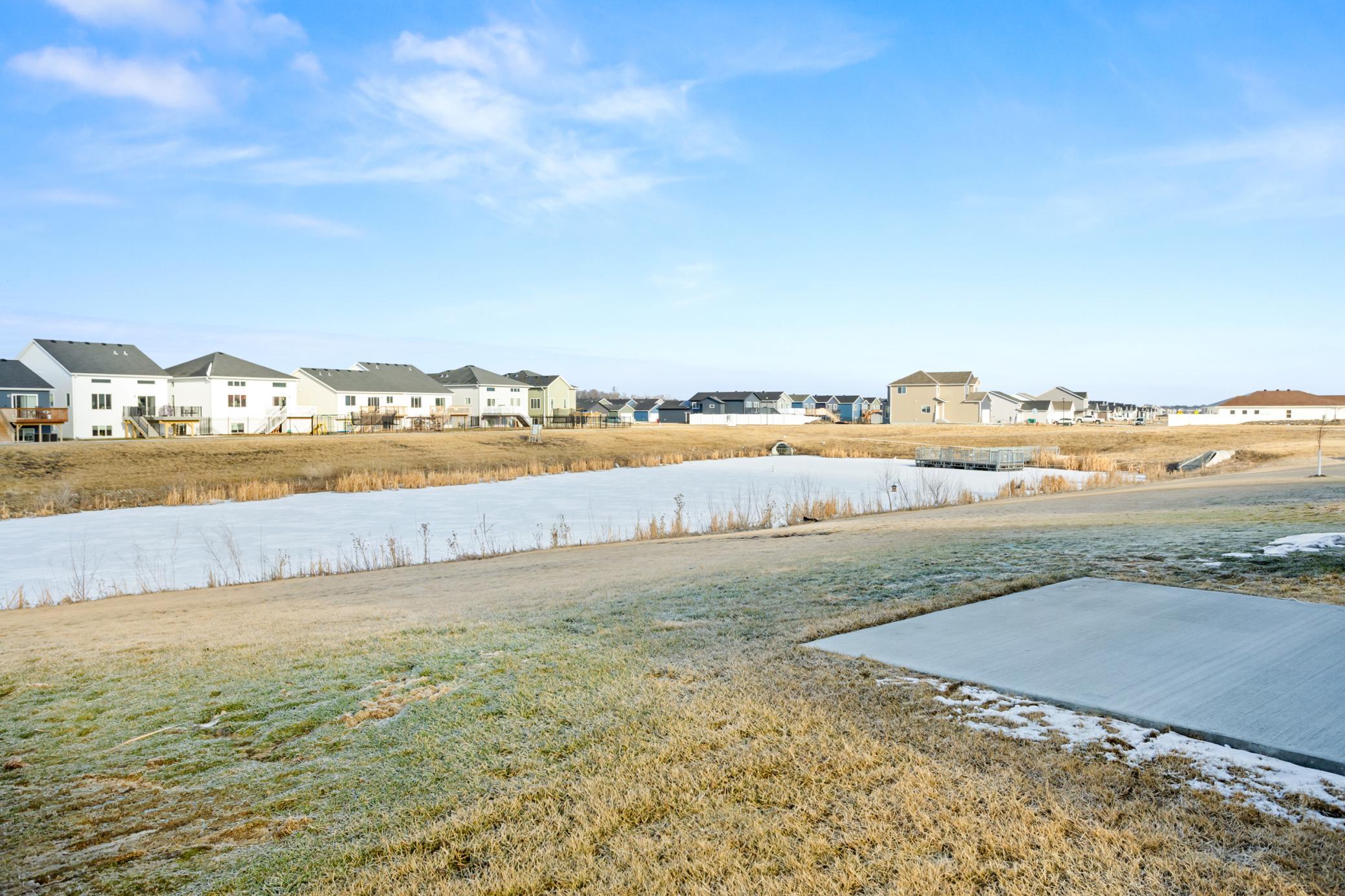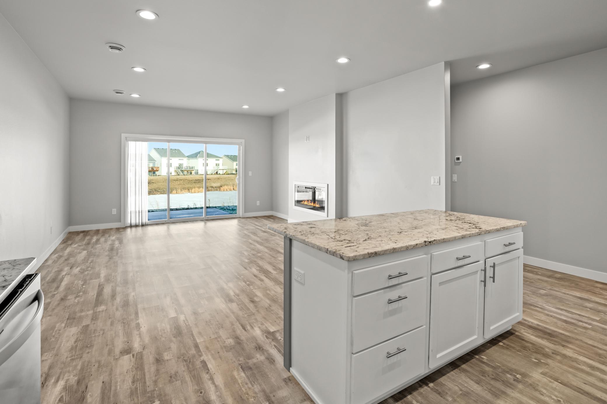 Welcome to this bright and beautiful slab-on-grade home offering comfort, convenience, and peaceful pond views. With 3 bedrooms and 2 bathrooms all on one level, the layout is designed for easy everyday living. The open-concept main living area is filled with natural light and centered around a cozy living room fireplace, creating a warm and inviting space to gather. The kitchen features granite countertops, a pantry closet for added storage, and a layout that flows seamlessly into the dining and living areasperfect for entertaining or relaxed evenings at home. Sliding patio doors lead out to the backyard where you can enjoy the tranquil pond view. The spacious primary suite includes a private bathroom with double sinks and quality finishes, while two additional bedrooms offer flexibility for guests, a home office, or hobbies. Additional highlights include a convenient laundry space with pocket door, a practical drop zone off the entry, and an attached two-stall garage that is already plumbed for a heater. Thoughtfully designed and move-in ready, this home combines modern updates with a functional layout in a peaceful setting.