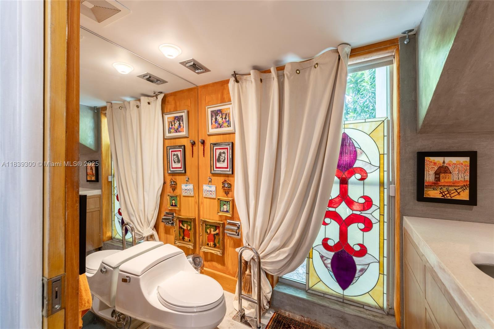 Nestled in the heart of South Miami, this Mediterranean gem is a true architectural masterpiece designed by architect Jose Anthony Enriquez. This one-of-a-kind home stands out in the community with its unique design and exquisite craftsmanship. Every door is handmade from wood, adding a touch of artisanal elegance. The grand vaulted ceilings are adorned with hand-stamped wood beam accents, evoking the grandeur of a majestic palace. The polished cement flooring throughout enhances the home's modern yet timeless appeal. This home is not just a place to live, but a work of art that exudes luxury and sophistication. The newly updated white exterior enhances curb appeal and highlights the homes distinctive lines. Ideal as a private residence or a high-performing short-term rental investment.