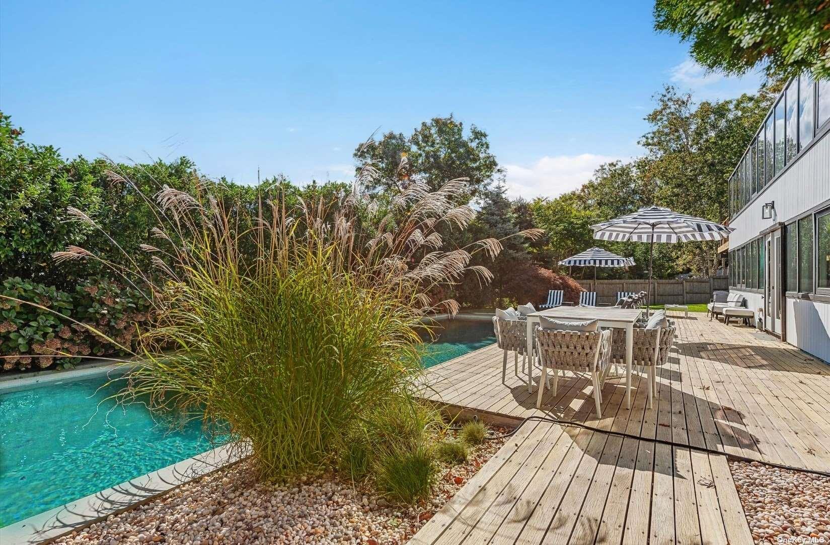 Immerse yourself in the ultimate resort-like living at 69 Three Mile Harbor Drive, offering convenient access to East Hampton's Sammy's Beach and a quick drive to elevated town living. This meticulously maintained 4,000sqft contemporary style home offers a harmonious blend of luxury and comfort, ideal for discerning tenants seeking a serene off season or summer retreat. This professionally curated home boasts five spacious bedrooms and five and a half bathrooms, providing ample space and comfort for all guests. Four of the bedrooms are en-suite, while the fifth features its own private detached bath. The primary suite serves as a true sanctuary, complete with an en-suite bathroom, generous closet space, and a personal fireplace. Each additional bedroom is thoughtfully designed to ensure privacy and comfort. The heart of the home is the expansive living area, seamlessly integrating the living room, dining room, and gourmet kitchen. Large windows throughout the main level flood the space with natural light, creating a warm and inviting atmosphere. The dining area is ideal for hosting both formal dinners and casual gatherings, while the fully-equipped kitchen features a generous island that doubles as a breakfast bar with seating for eight. Step outside to the attached balcony, where you can cook al fresco on the grill and unwind by the propane fire pit, surrounded by two cozy lounging couches, perfect for outdoor entertaining. Ascend to the second level and discover three additional bedrooms, two en-suite, each designed for comfort and privacy. The oversized entertainment area is perfect for gatherings, complete with a convenient wet bar that seamlessly connects to the backyard oasis. Open the French doors to reveal a stunning 45' gunite pool, surrounded by mature hydrangeas and mahogany decking, creating a picturesque setting. The coastal landscape enhances the serene atmosphere, featuring a spacious patio, two fire pits, and plenty of poolside lounging and dining options. With a well-maintained lawn as a backdrop, it's an ideal spot for relaxation and outdoor activities. Located just minutes from bay access and a short drive to East Hampton's Main Street, known for its world-class boutique shopping and fine dining, this home is ideal for those who love to entertain or simply unwind in complete privacy. The homeowner is open to accommodating any and all rental periods, making it a versatile option for your ideal getaway. Available MD-LD $140k, May $18k, June $30k, July $55k, August $60k, August-LD: $65k & any two weeks off season for $12k.