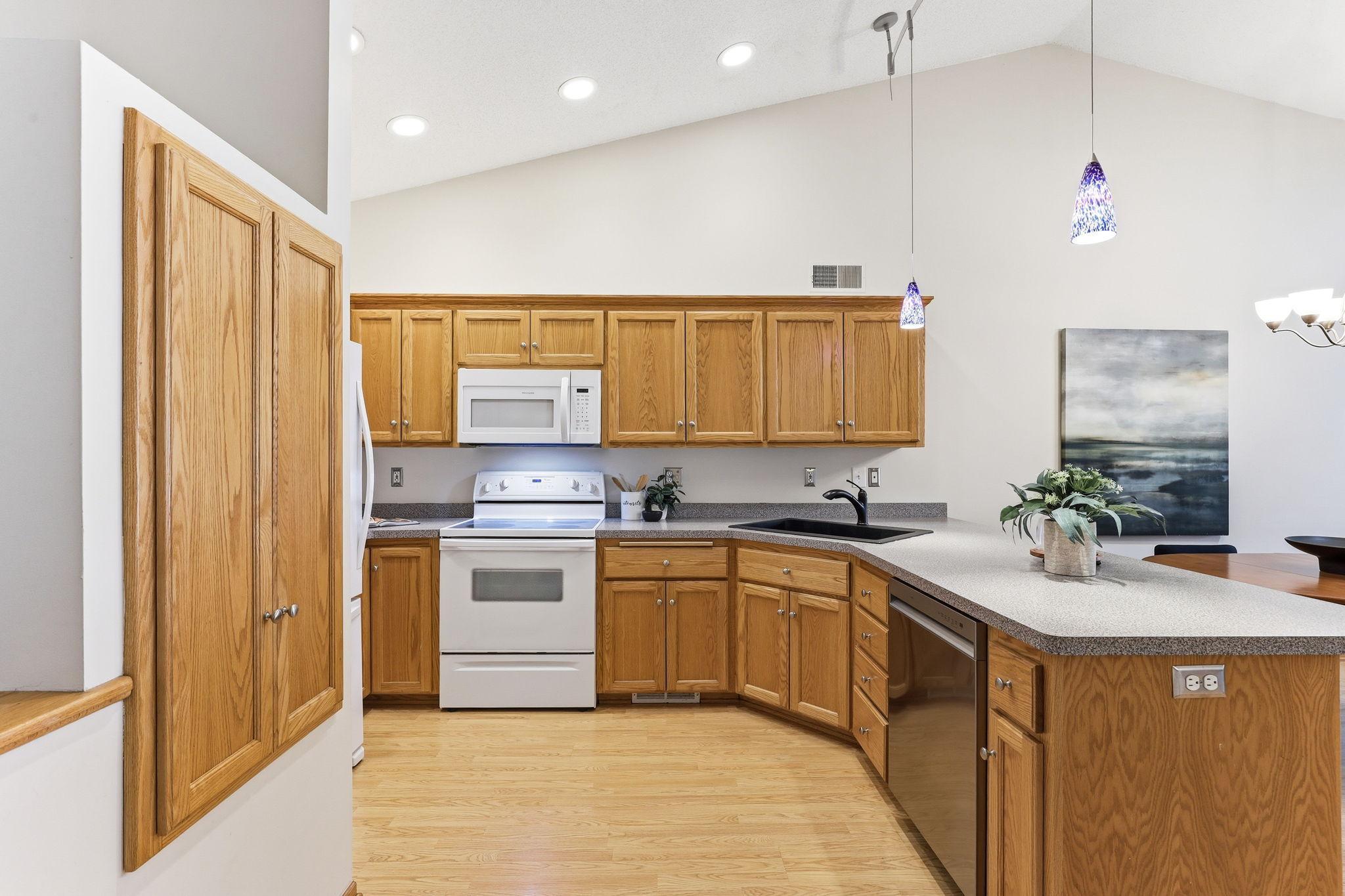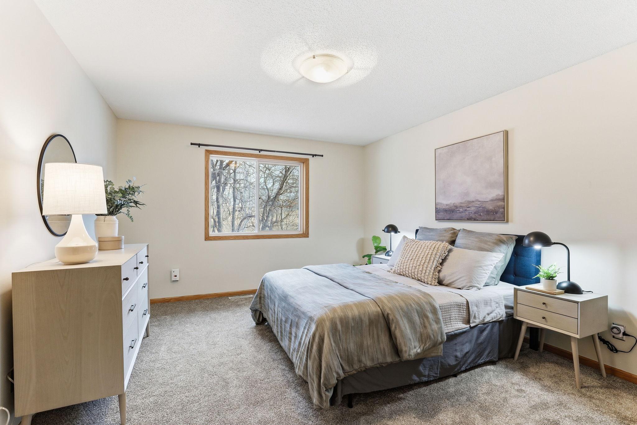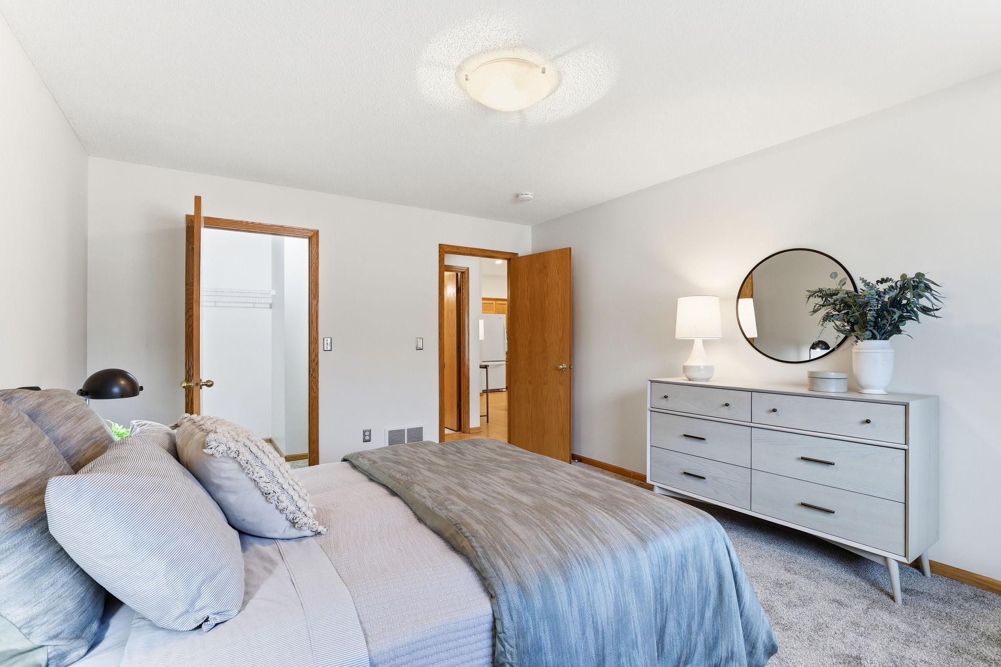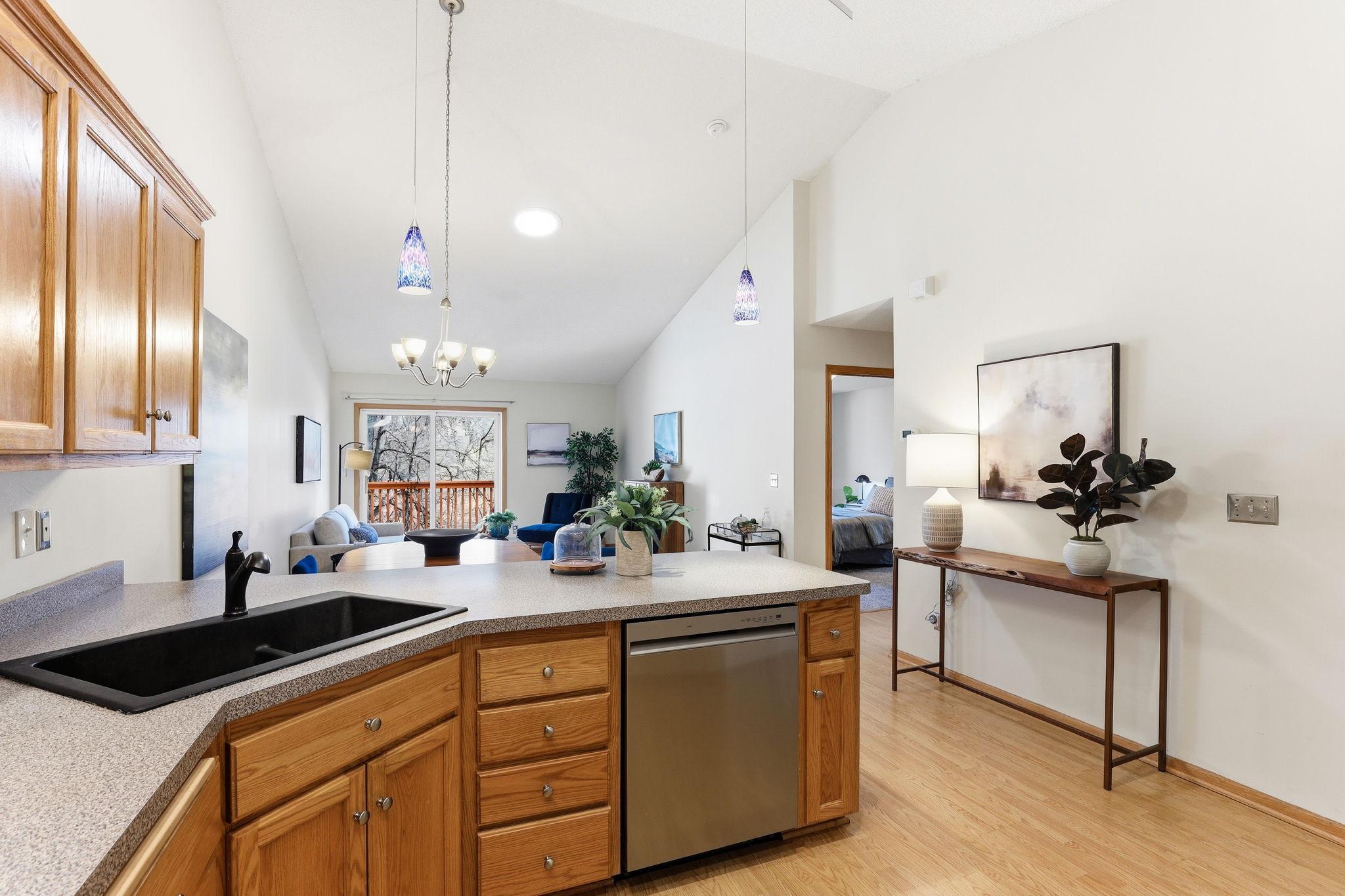 This end unit TH is located on a quite cul-de-sac in convenient Crystal. From your elevated backyard deck you will enjoy overlooking the park wplenty of green space & the charming Memory Pond with frequent visits from a wide variety of wildlife. This one story home offers an open flr plan wvaulted ceilings & solar tubes. 1 bed on main wfull ba & 1 bed on lower wanother ba. Generous lower level FR offers lots of options. Water filtration system & radon mitigation already installed. See attached list of Recent Improvement.