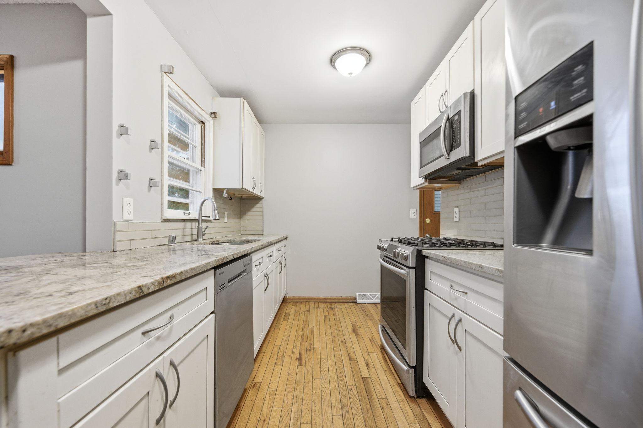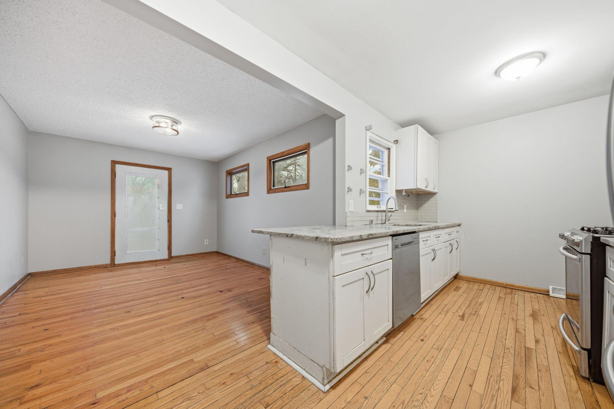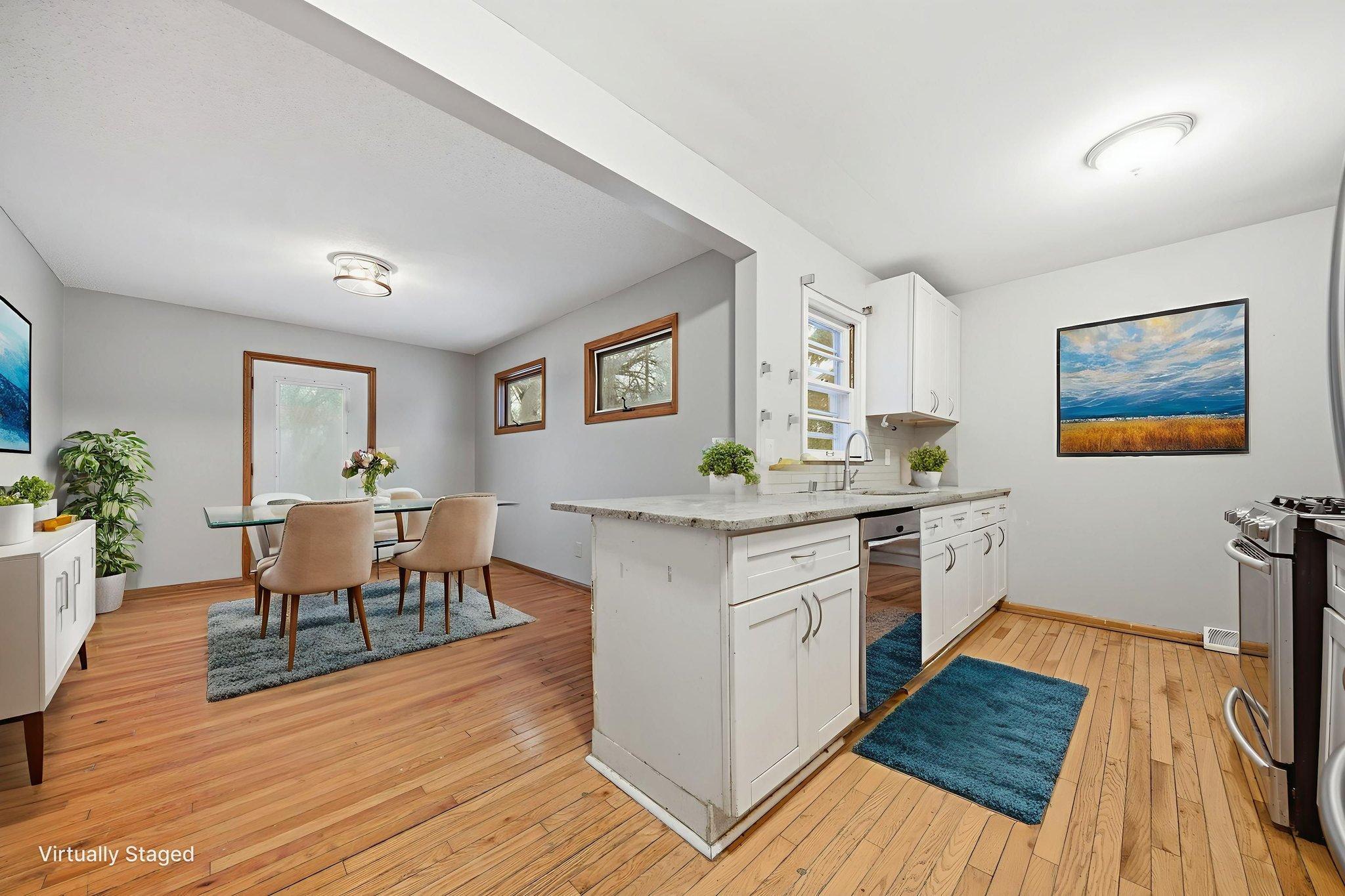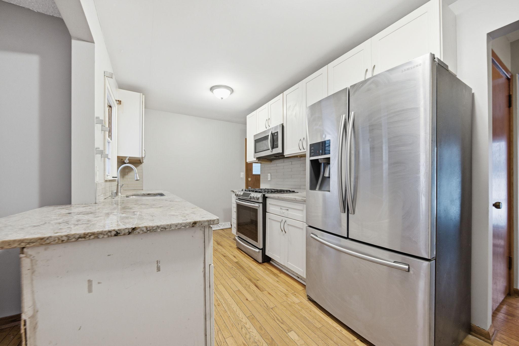 Beautiful bungalow in a pristine Richfield neighborhood! This charming home features a bright white kitchen with granite countertops, a breakfast bar, tiled backsplash, and stainless steel appliances. Gleaming hardwood floors flow throughout the main level. Two spacious main-floor bedrooms share a full bath with tile surround. The finished lower level offers a comfortable family room, fourth bedroom, bath with marble tile surround, and laundry/utility area. Enjoy the oversized one-car garage and a private, fully fenced backyardperfect for relaxing or entertaining. Move-in ready and full of style!