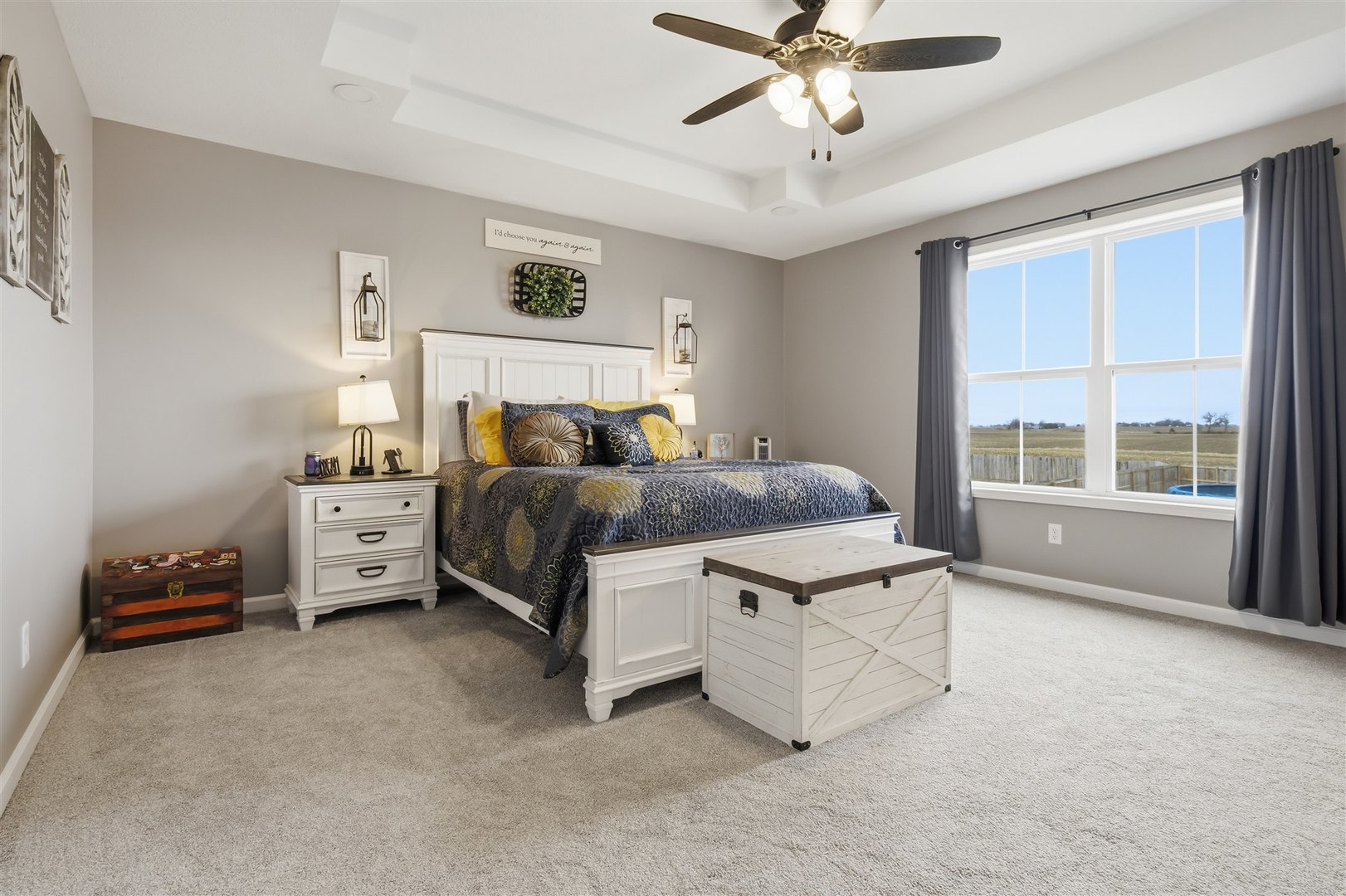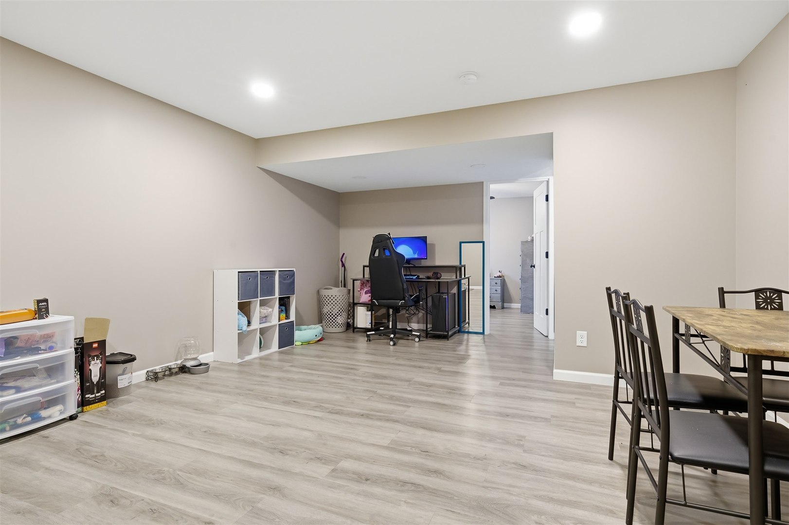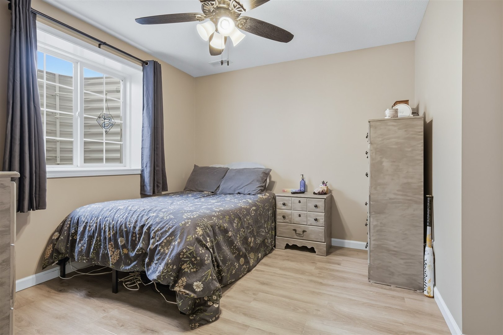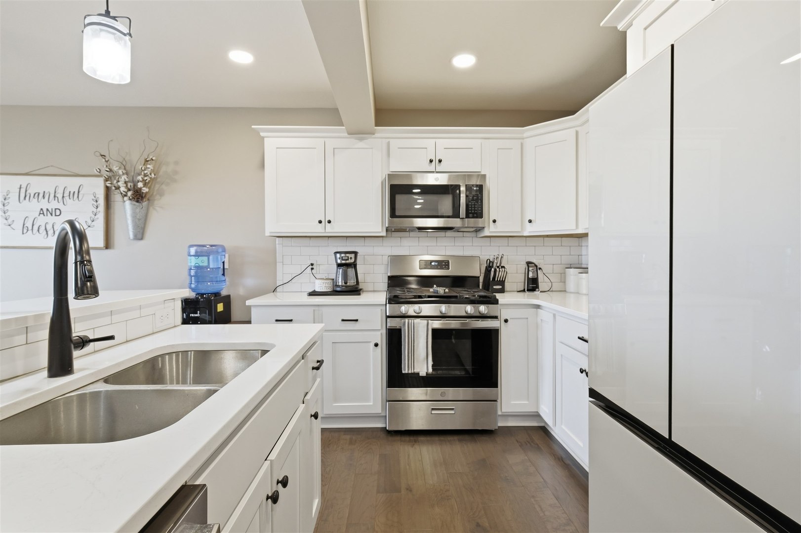 Welcome to Rock Creek in Carlock - a modern farmhouse-style home built in 2022 that looks just as good in person as it does at sunset. From the moment you pull up, the board-and-batten exterior, stone accents, and two-car garage make a strong first impression. Step inside and the quality of the build is immediately evident - rich hardwood-style flooring, crown molding in the main living areas, and an open layout that connects every space naturally. The kitchen is the heart of the main floor, featuring crisp white shaker cabinets, subway tile backsplash, pendant lighting over the island, stainless steel gas range, and clean white quartz-style countertops. It opens directly into the dining area, where a sliding glass door leads straight out to the deck - making indoor-outdoor flow effortless. A dedicated main-floor office with crown molding, hardwood floors, and a large window is a genuine work-from-home space, not an afterthought. First-floor laundry rounds out the main level. Upstairs, four bedrooms including a primary suite with private bath and walk-in closet. The secondary bedrooms are generously sized with hardwood-style flooring and great natural light. The finished basement adds a fifth bedroom, full bathroom, and a large rec area - ideal for guests, a playroom, or a home gym. Outside is where this property truly separates itself. The covered deck is built to last - full wood frame with a metal roof overhead, plenty of room for a dining set and a grill, and open views across the backyard. And that backyard? It's enormous. Fully fenced, flat, and wide open, with an above-ground pool already in place and room left over for a swing set, a garden, a fire pit, or all three. Unit 5 schools. Quick access to I-74, Rivian, and Bloomington-Normal. Barely three years old with nothing to do but move in. This one has the space, the finishes, and the outdoor setup that makes it a perfect place to call home.