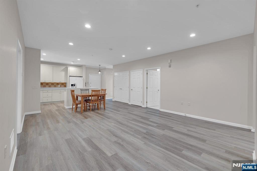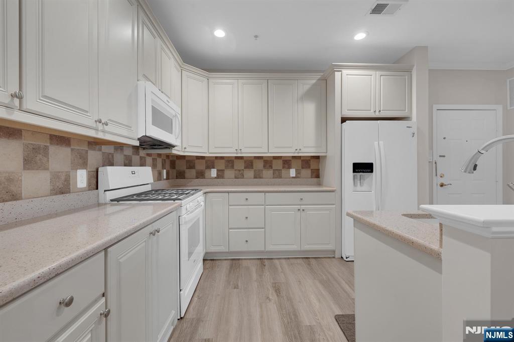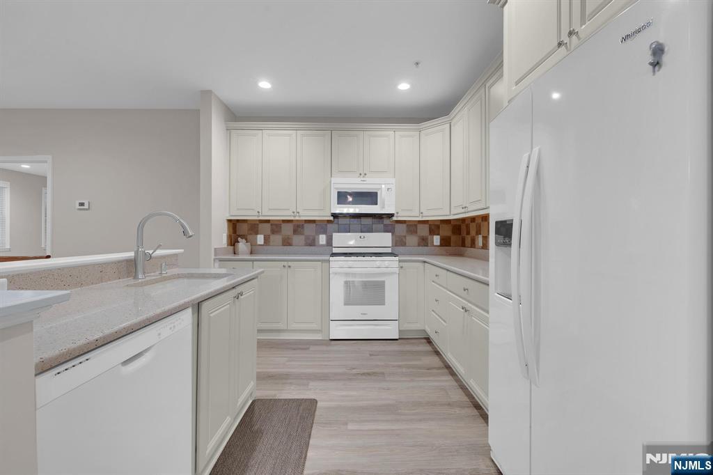 Enjoy the best of community living in this vibrant active adult neighborhood, featuring a clubhouse, pickleball courts, fitness center, pool, walking paths, and more.This spacious first-floor condo offers convenience from the moment you arrive, with immediate access off the main entry. A premier location provides wooded views from the kitchen, living room, bedrooms and balcony, giving you privacy and a peaceful backdrop. Inside, the open kitchen offers abundant cabinetry, updated appliances, and superior counter space.The generous dining and living room combination is filled with natural light and opens to the balcony.Just off the living area, a flexible bonus room is perfect for an office, den, or creative space to suit your lifestyle needs. Additional highlights include the primary suite features a walk-in closet and an updated walk-in shower designed for comfort and ease. The second bedroom also includes a walk-in closet and a private full bath.A dedicated laundry room with full-size washer and dryer (all appliances included) provides exceptional storage options. Additional features include an assigned garage space, plentiful guest parking and private storage unit for seasonal items and building elevator. With its spacious layout, thoughtful floor plan, and access to resort-style amenities, this condo offers both comfort and convenience in a premier setting.Need easy access to major highways, shops and trains? Your wish is our command! Next Chapter begins here!