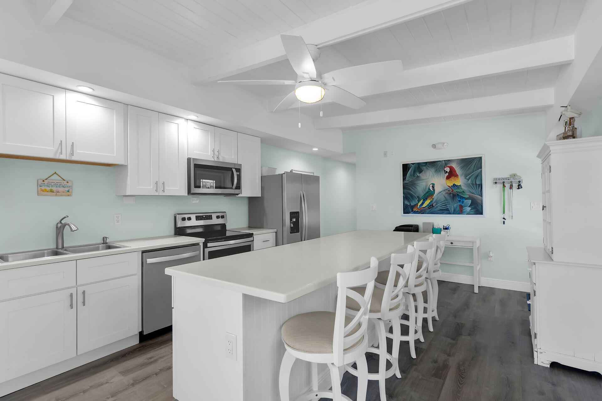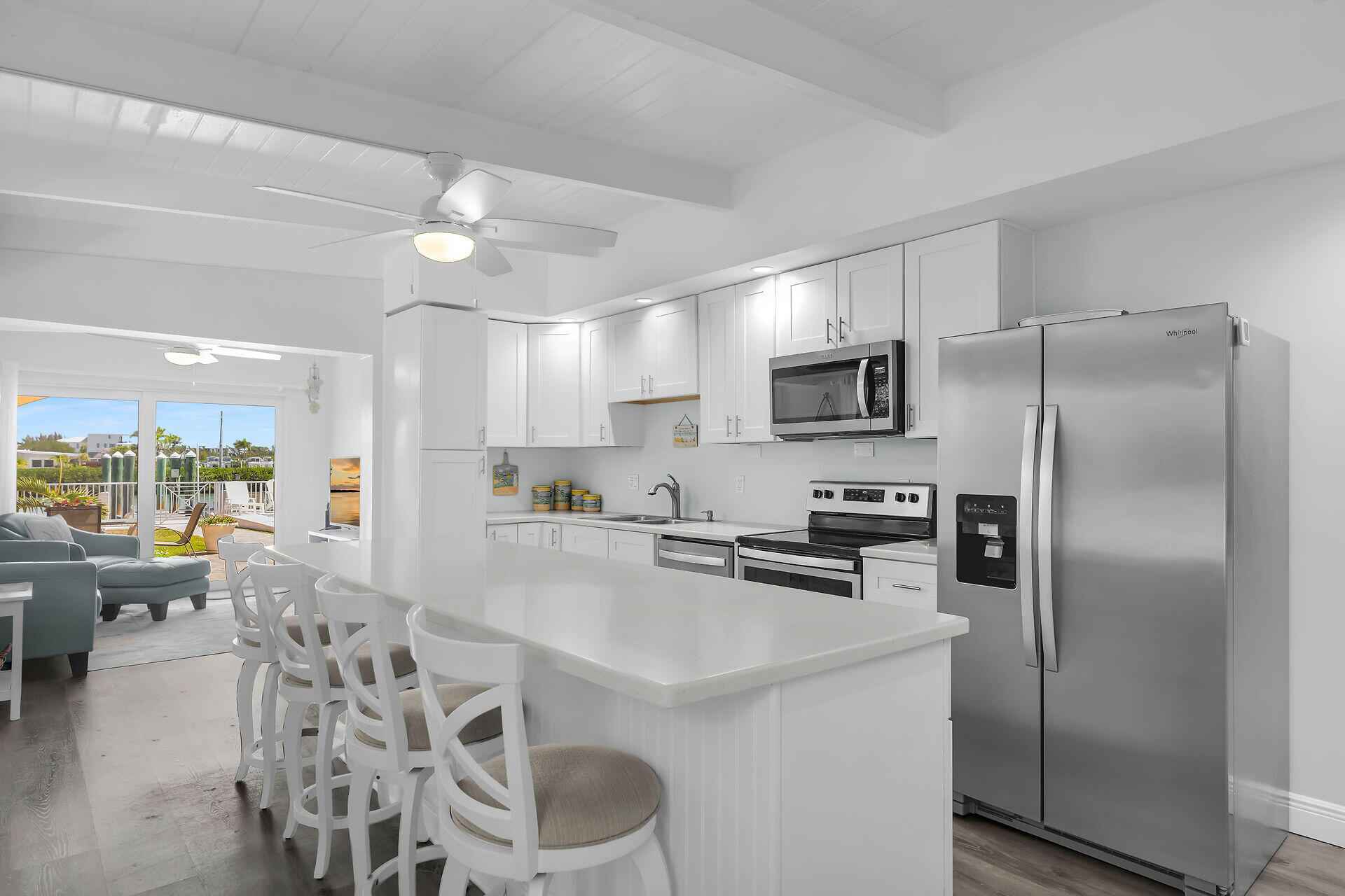 Island living meets boating paradise in this updated 2-bedroom, 2-bath half-duplex in Key Colony Beach. Positioned on one of the island's widest canals, the home offers stunning open water views and exceptional maneuvering space with no homes directly across the canal. Inside, the home features Corian countertops, Whirlpool stainless steel appliances, a Rheem tankless hot water heater, and an energy-efficient multi-split Daikin A/C system. A brand-new 2025 Whirlpool washer and dryer add modern convenience. Boaters will love the ability to dock a vessel up to 50 feet, with conduit already installed for future dockside water and electric. With quick access to both the Atlantic Ocean and Gulf through Vaca Cut, your next fishing or sunset cruise is always minutes away. Ideally located directly across from the Key Colony Beach Golf Course and nearby tennis, pickleball, bocce courts, and playground, this property offers the perfect blend of waterfront relaxation and active island living.