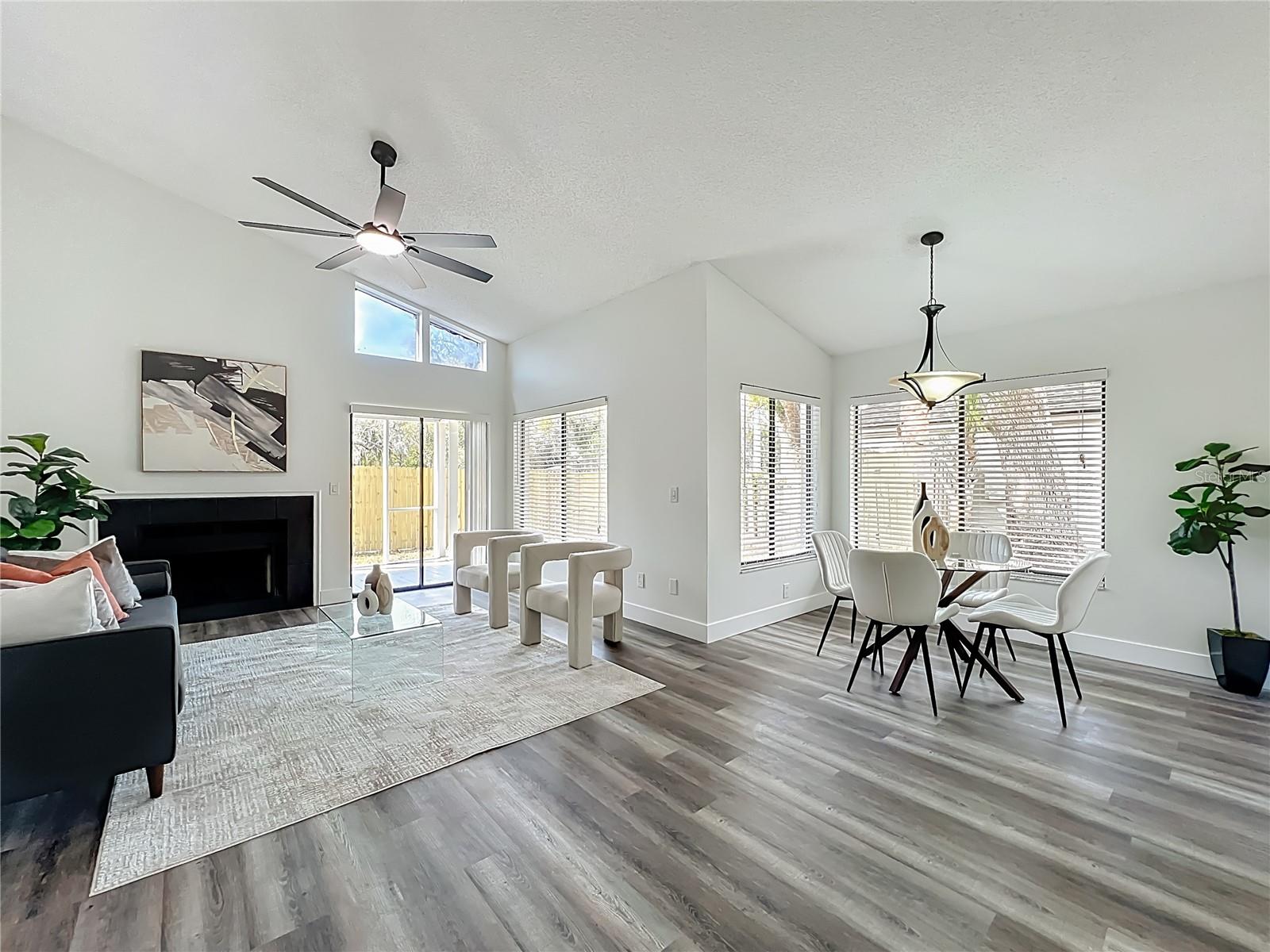 Beautifully renovated home in the heart of Longwood, just steps to Reiter Park. This move-in ready property features soaring ceilings, abundant natural light, and wood-look flooring throughout. The updated kitchen offers bright cabinetry, quartz countertops, stainless steel appliances, and modern finishes. The spacious living area includes vaulted ceilings and a fireplace, creating a welcoming focal point. Sliding glass doors provide great natural light and access to the backyard. Have peace of mind with a gated community, new roof, and new AC. Updated bathrooms and well-sized bedrooms complete the interior. Community amenities include pool, tennis courts, walking trails.Conveniently located near Historic Downtown Longwood, shopping, dining, SunRail, and major roadways.