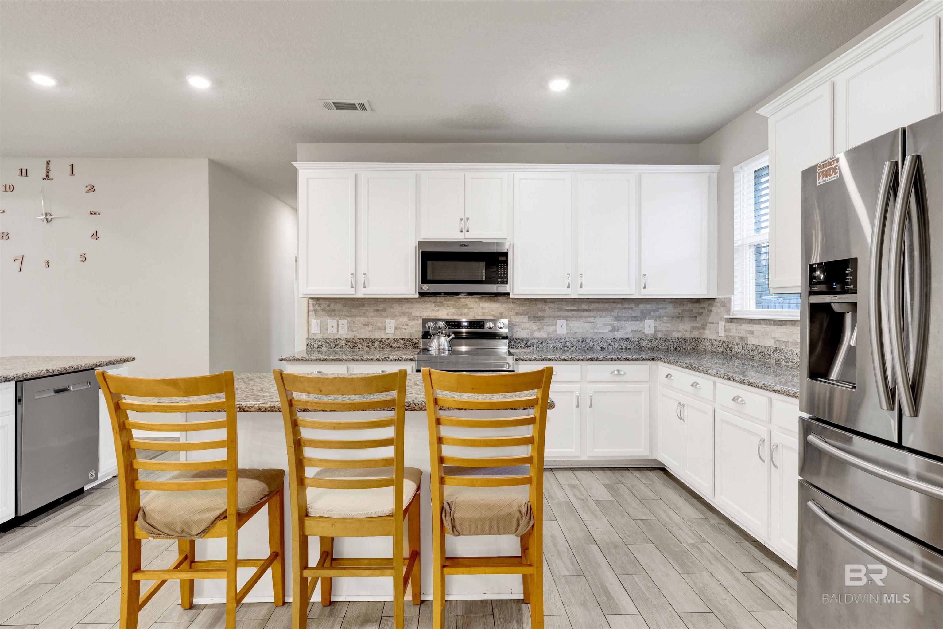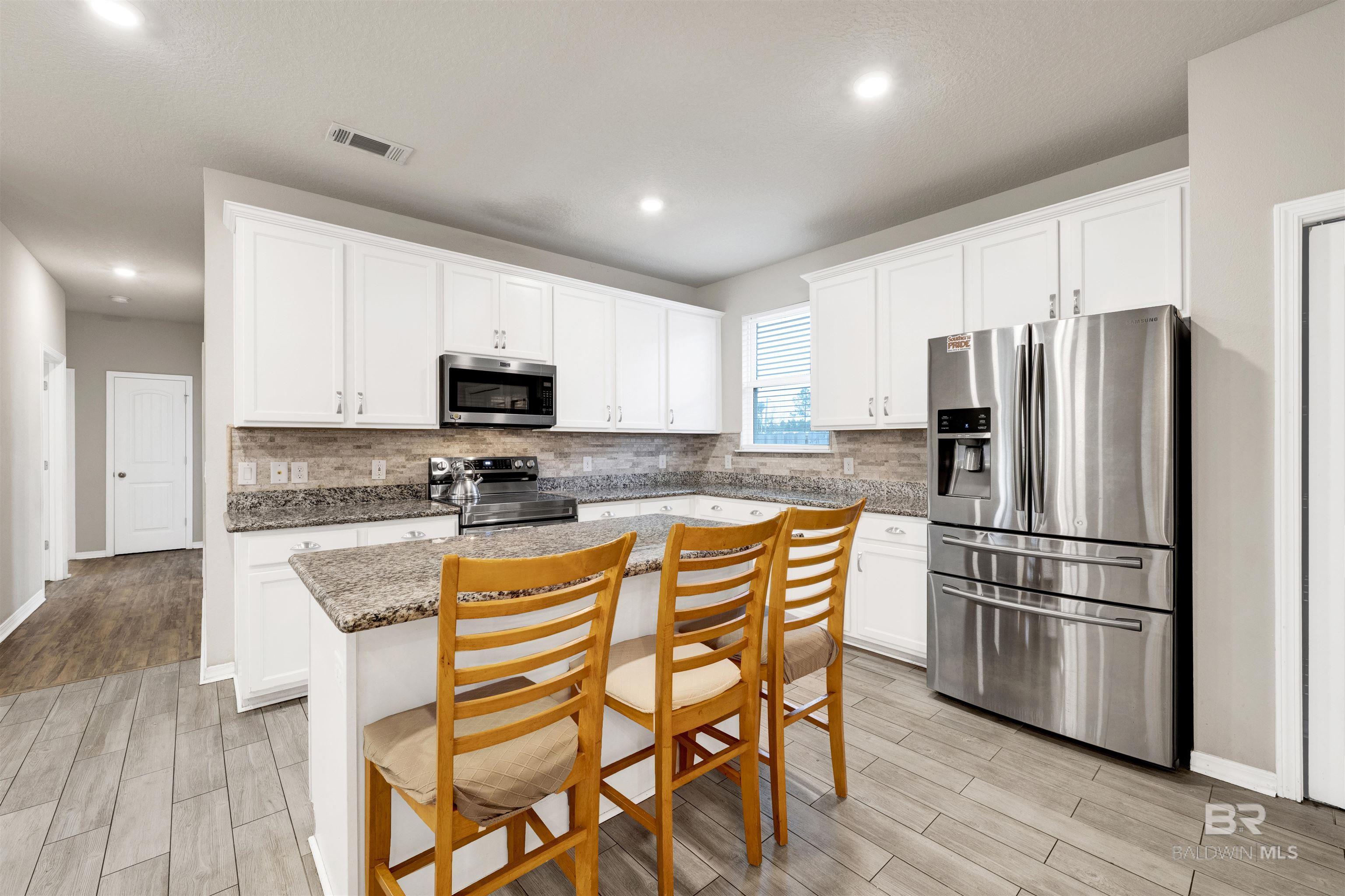 Searching for the perfect place to call home in Gulf Shores? This beautifully maintained 4-bedroom, 2-bathroom home in the desirable Wind Creek subdivision is ready for move-in and offers the ideal blend of comfort, convenience, and charm. Nestled on a quiet cul-de-sac with a fully fenced backyard, it provides a peaceful sense of privacy while still being just minutes from Highway 59, the Beach Express, and the new Gulf Shores High Schoolmaking daily commutes effortless. Inside, you'll love the spacious open-concept layout with easy-to-maintain vinyl plank flooring throughout most of the home. The gourmet kitchen stands out with painted cabinets, sleek granite countertops, a large island, and bar seating perfect for everyday meals or entertaining guests. The generously sized primary bedroom offers a relaxing retreat complete with an en suite bathroom featuring a double vanity, garden tub, and walk-in shower. The guest bathroom is equally impressive, offering a double vanity and a convenient tub/shower combo, providing plenty of space for family or visitors. Outside, the large fenced lot gives you room to unwind, grill, play, or enjoy peaceful Gulf Shores evenings in your own private backyard oasis. This pet-friendly home also includes washer and dryer hookups for added convenience. Ready to welcome its next long-term resident, this property truly has everything you need to feel right at home. Tenant responsible for all utilities. Property will be held off market up to 14 days with Property Holding Fee with approved app. Lease Prep Fee of $75 is due prior to move in. Approved pets require $400 pet fee per pet. Renters insurance is required.
