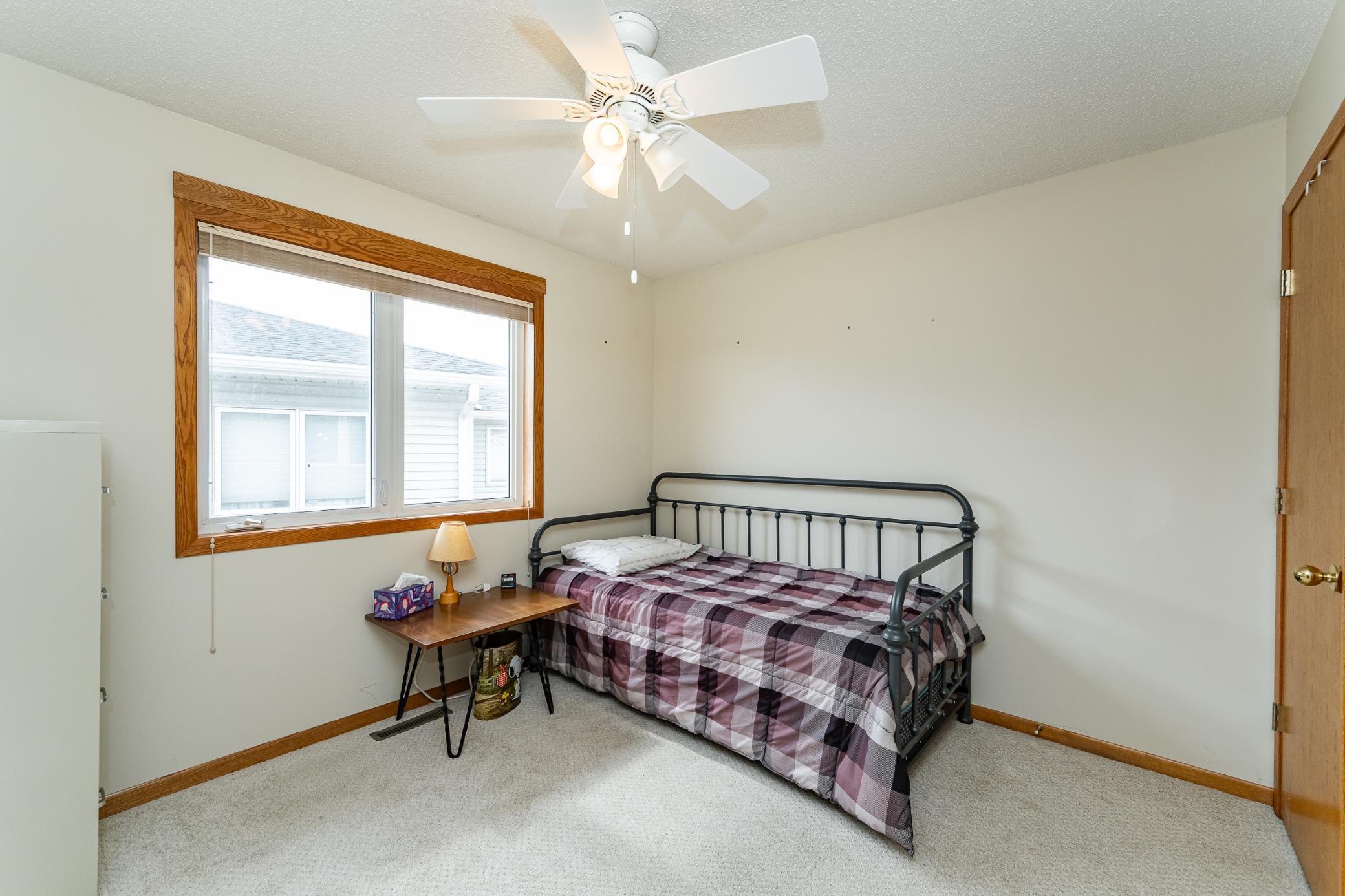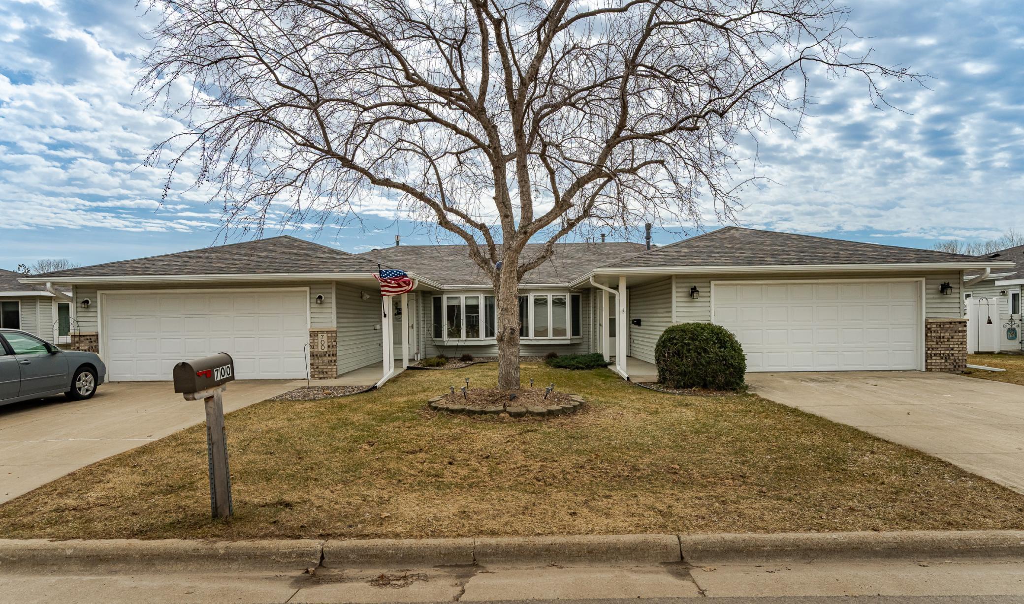 Charming, 2 bedroom, 1 bath townhome featuring a beautiful three-sided fireplace that creates a warm and welcoming living space. The cozy sunroom is perfect for relaxing and provides easy access to a private patio. An updated bathroom and heated 2-car garage add comfort and convenience. Well-maintained and move-in ready, this home offers easy, low-maintenance living!