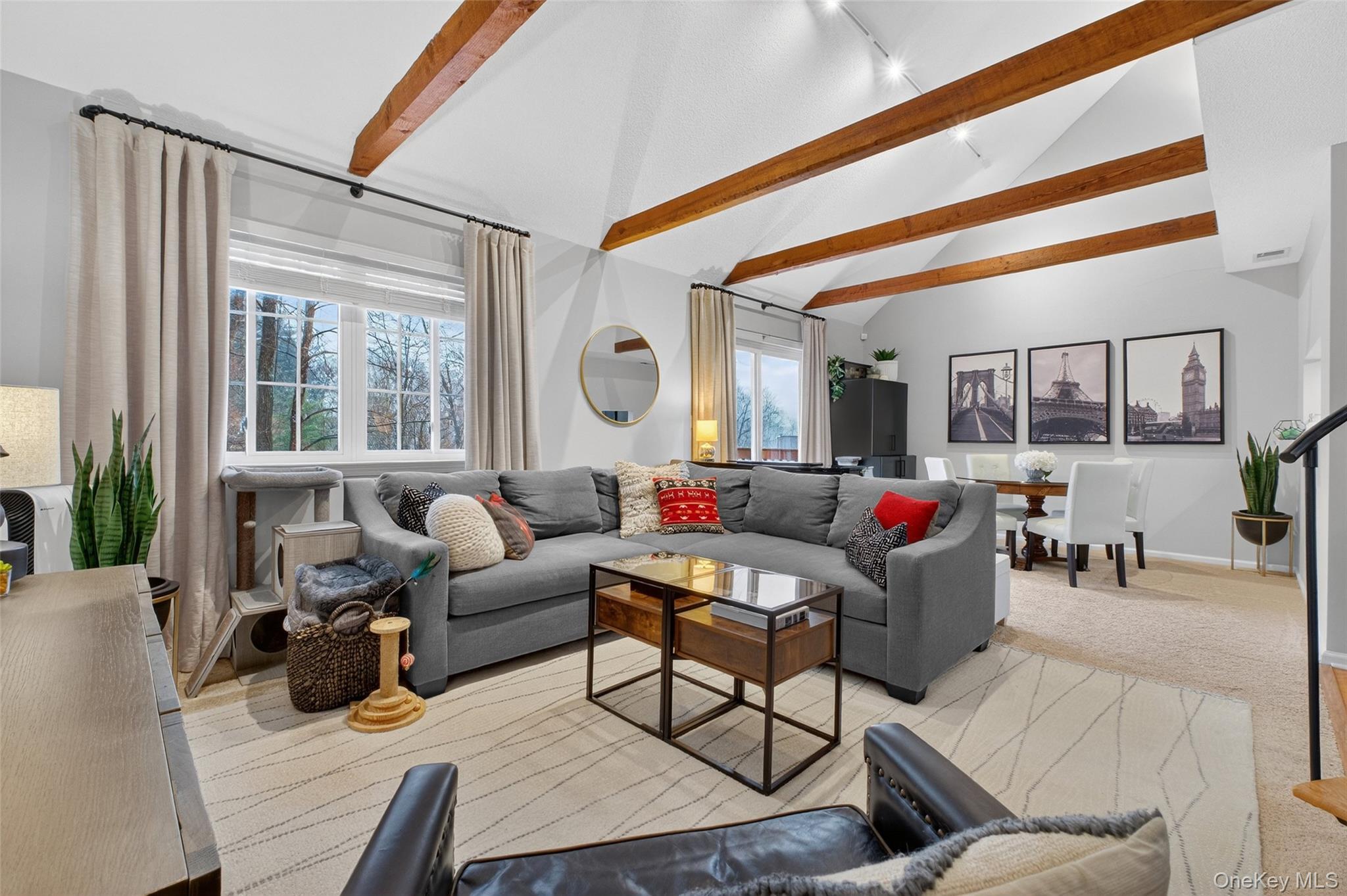 Welcome to this beautifully updated, move in ready home in Reed Farm. The open concept presents high ceilings and wood beams with light filled rooms. A large loft offers a possible 2nd bedroom, office or playroom. Pride of ownership shines in the endless list of updates, including the kitchen with stainless steel appliances, bathroom, lighting, skylights, large hot water heater, spray foam insulation, painting and whole house water filter. Customs blinds and extra refrigerator are included. The huge unfinished basement allows for endless storage. Relax on the nice sized deck with a view of the woods. Privately nestled in the woods, yet conveniently located, just minutes from shopping, major highways and restaurants. Enjoy all the amenities of Reed Farm, including the pool, tennis courts, basketball courts, and clubhouse.